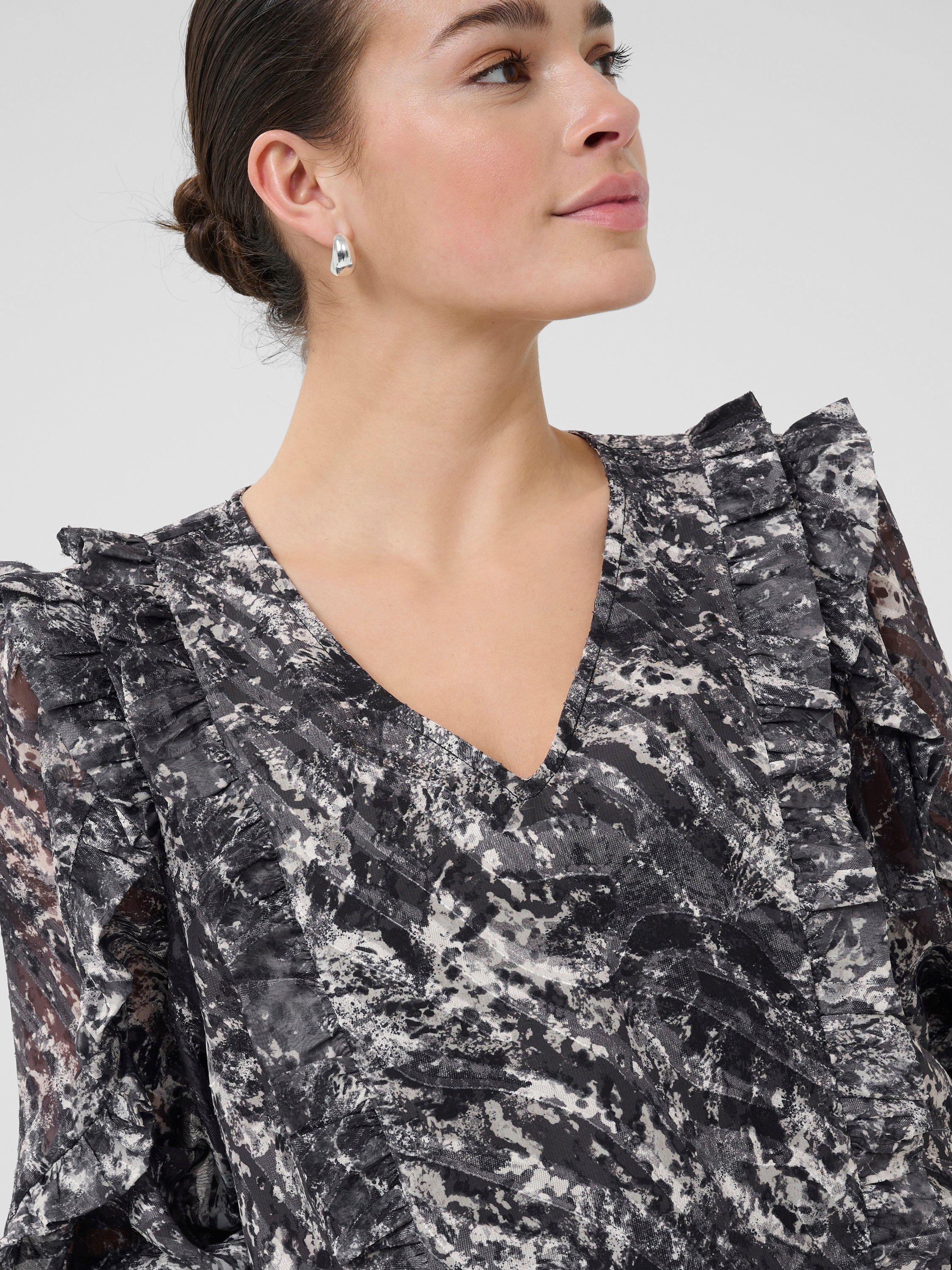 KAFFE’s abstract print blouse sparks new ideas for everyday dressing. With a flattering V-neck and long sleeves, it's perfect for adding intrigue and ease to your daytime look.