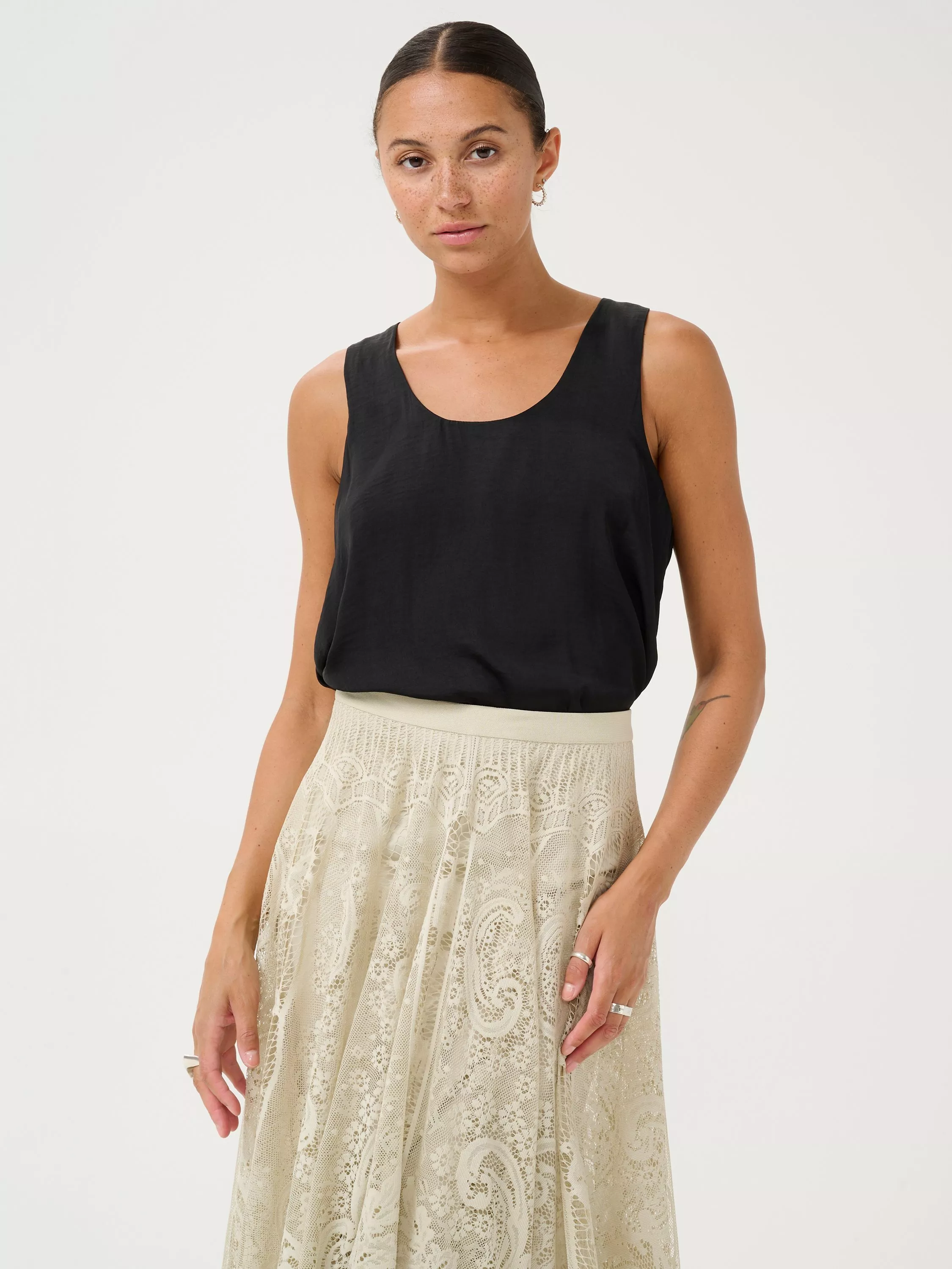 Simple and versatile in nature, this vest by KAFFE is plain for easy mixing and matching. Simply cut with a round neck and a sleeveless design, it'll soon become the forefront of your summertime looks.
