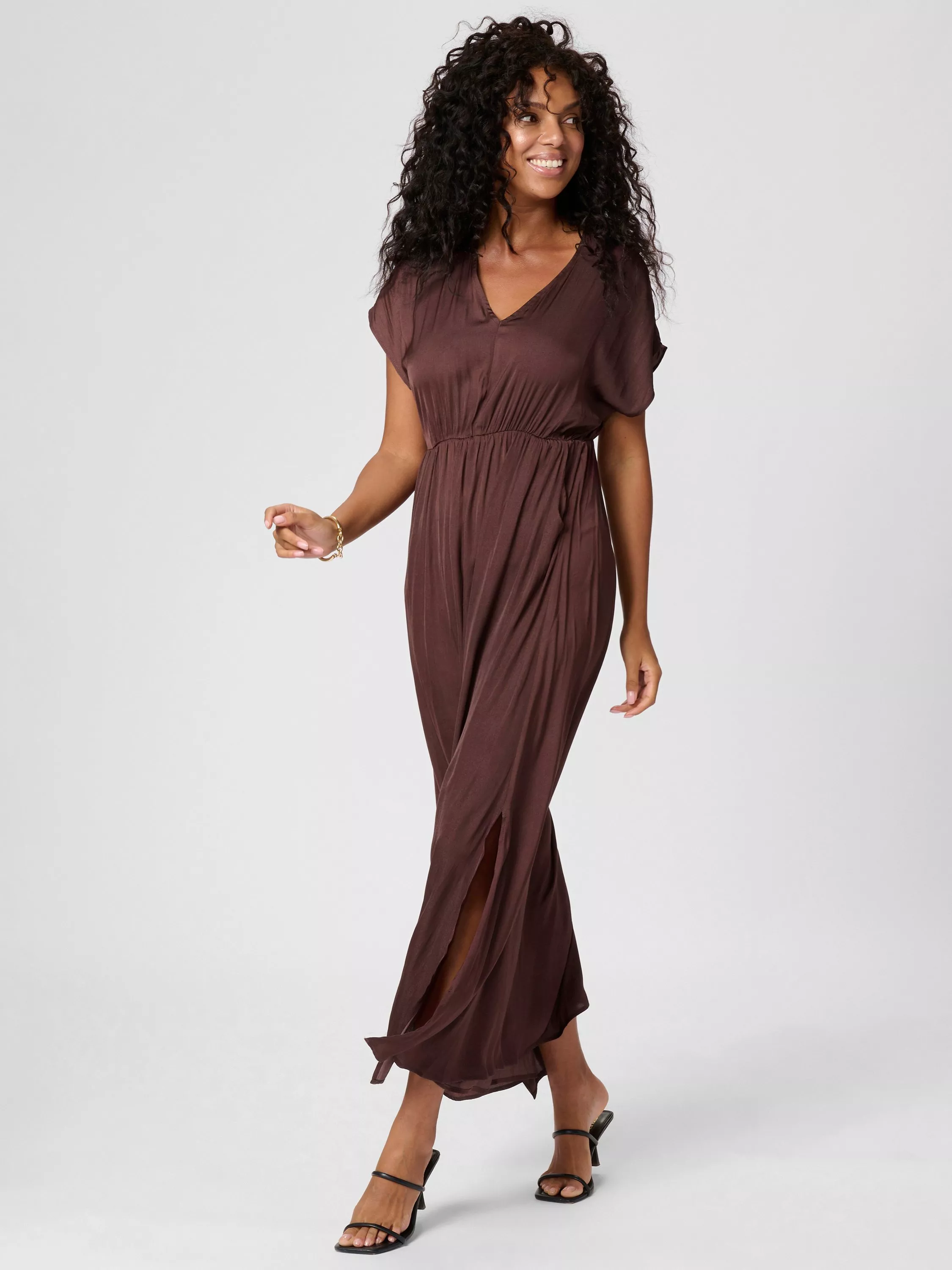 Flattering in all the right places, this floor-length dress from KAFFE is made with longevity thanks to its fabrication. With a flattering v-neckline, a stretchy waist and short sleeves, this style allows you to showcase its versatility.