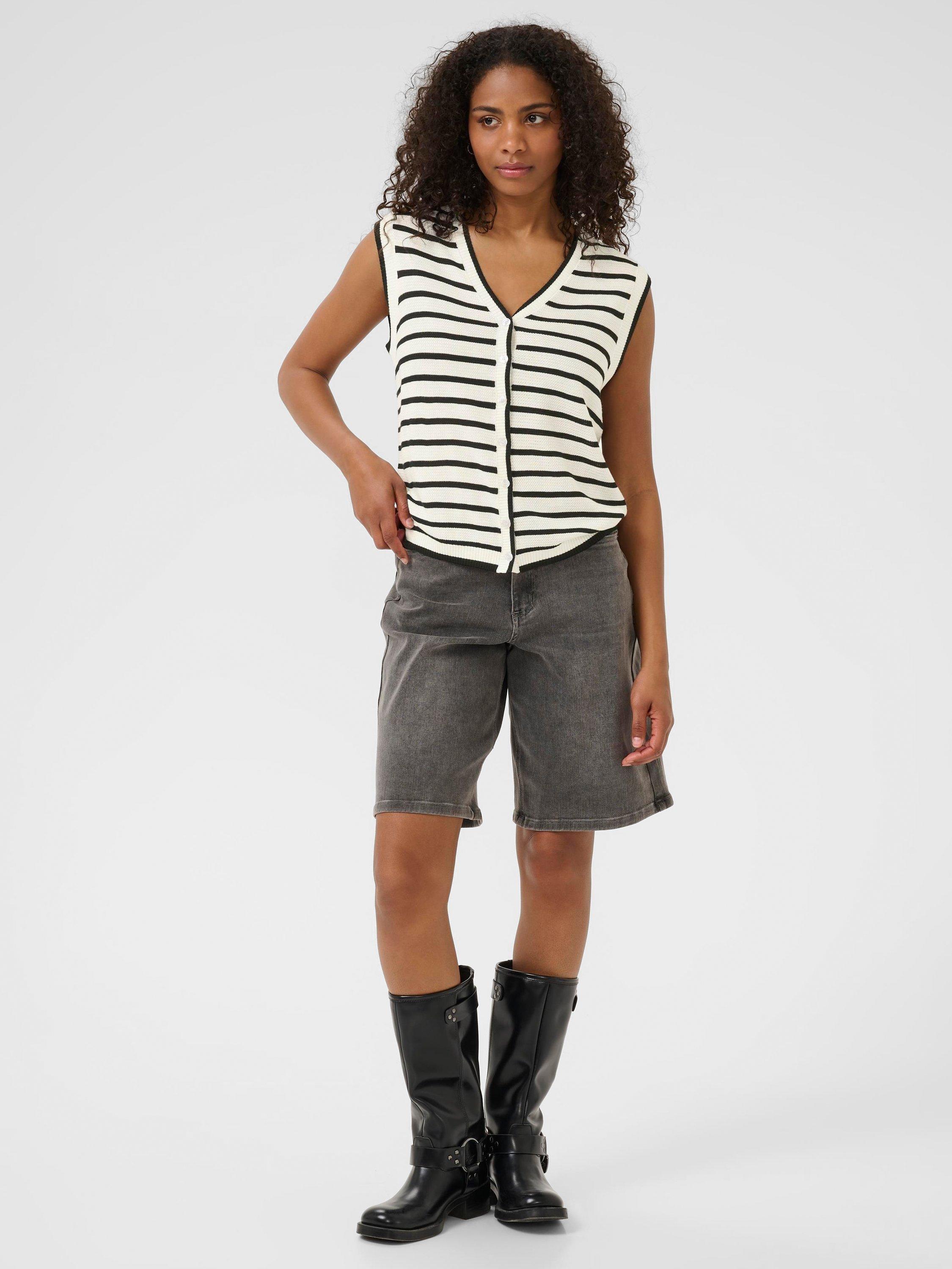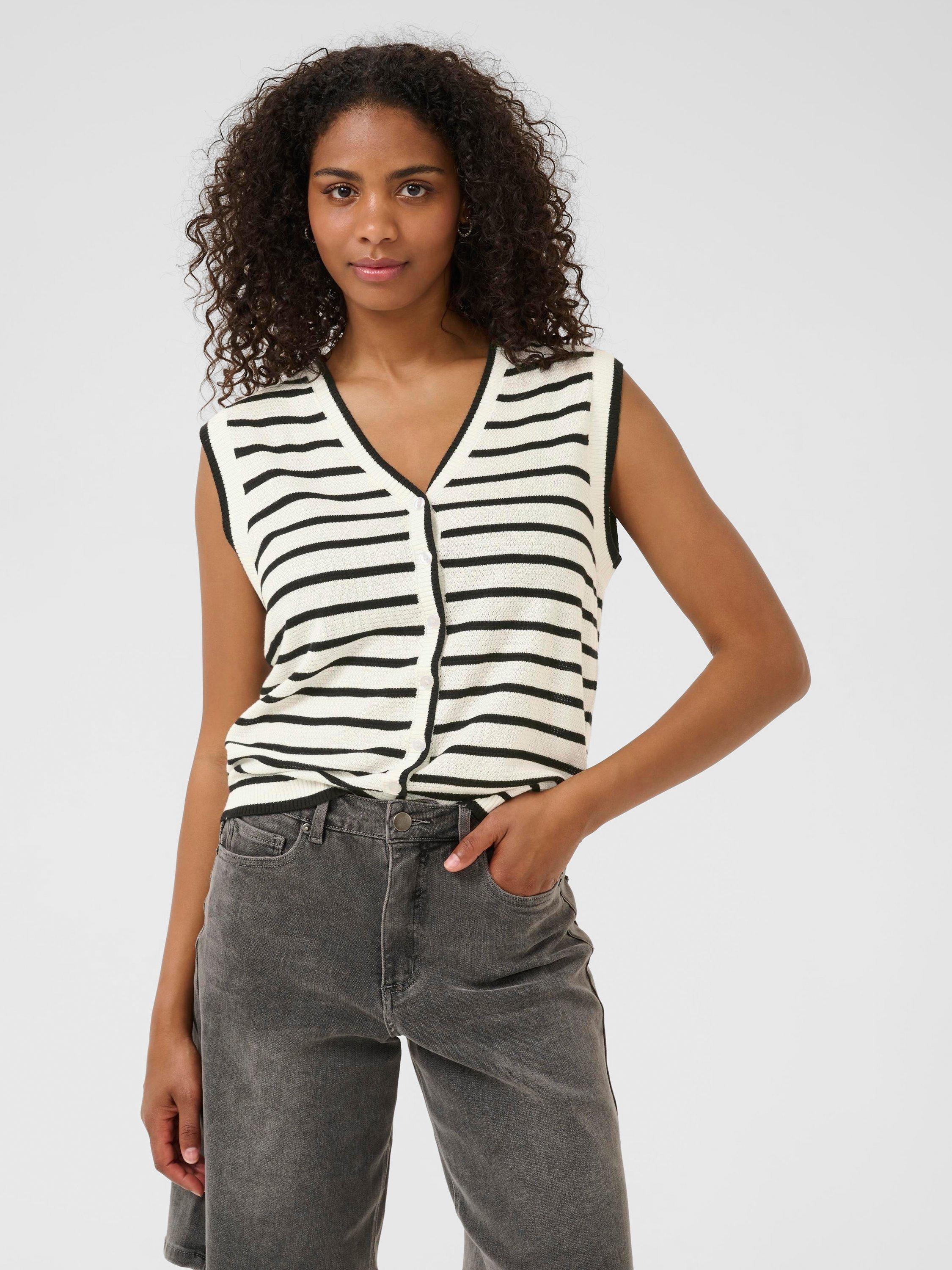With a neat v-neckline, this fine stripe sleeveless knit top from KAFFE is set to go out, whatever the weather.