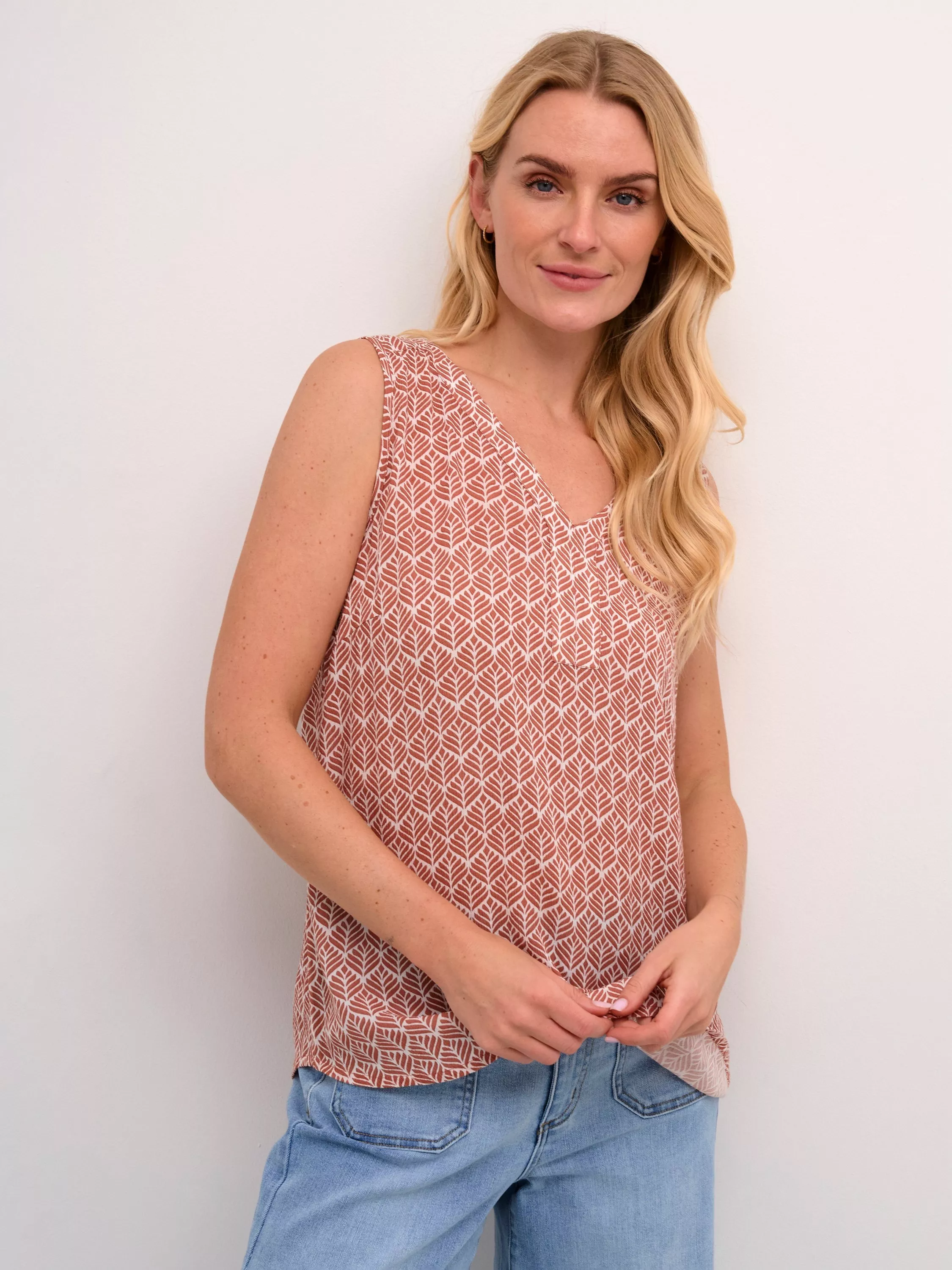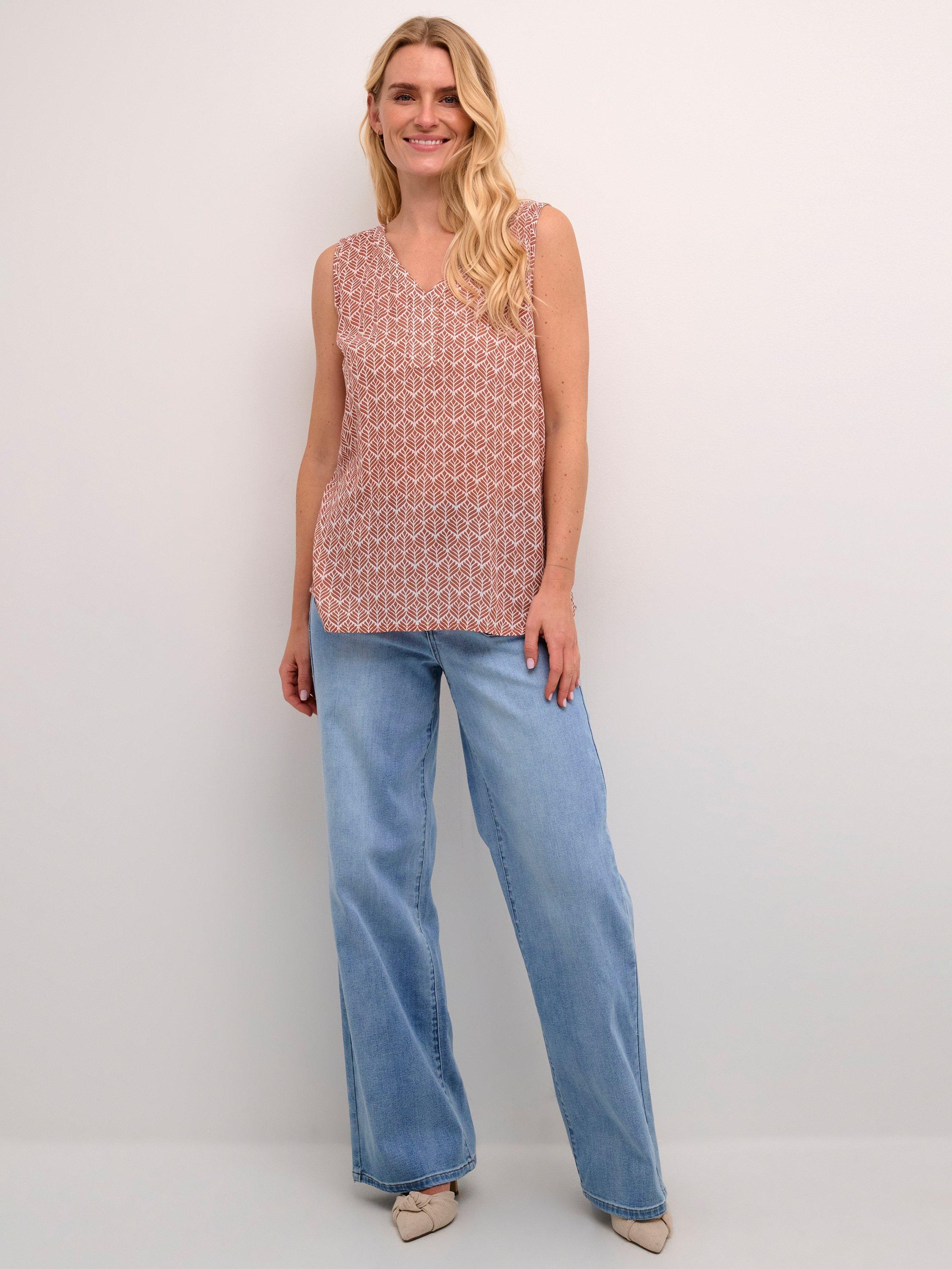 An essential addition to your wardrobe, this blouse from KAFFE is awash with an abstract pattern. Framed with a v-neckline and a sleeveless design, it is made from soft viscose and slips on well with tonal denim ready for the summer.
