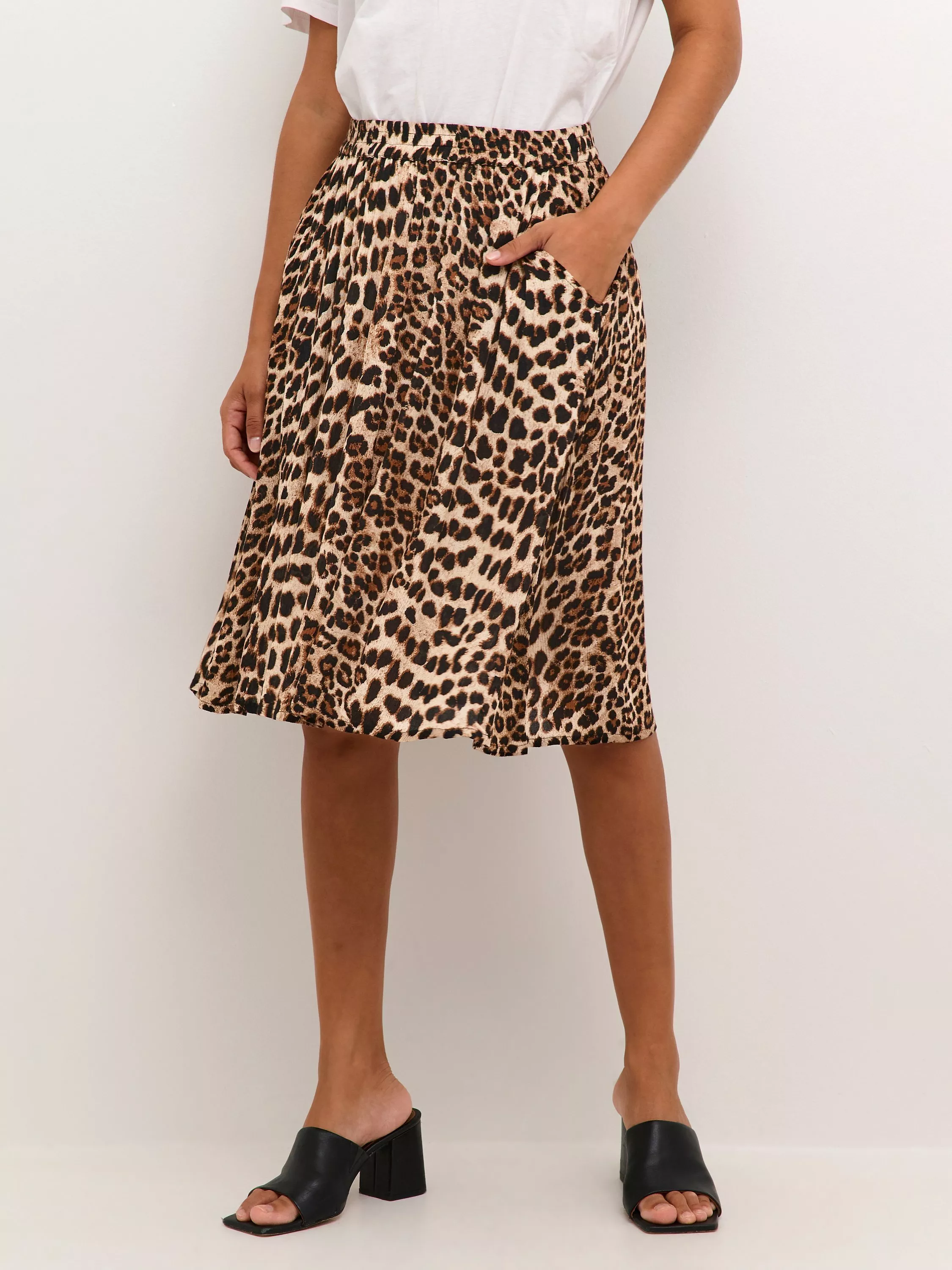 Cut to a classic A-line silhouette, this knee-length skirt by KAFFE spotlights a bespoke leopard print.