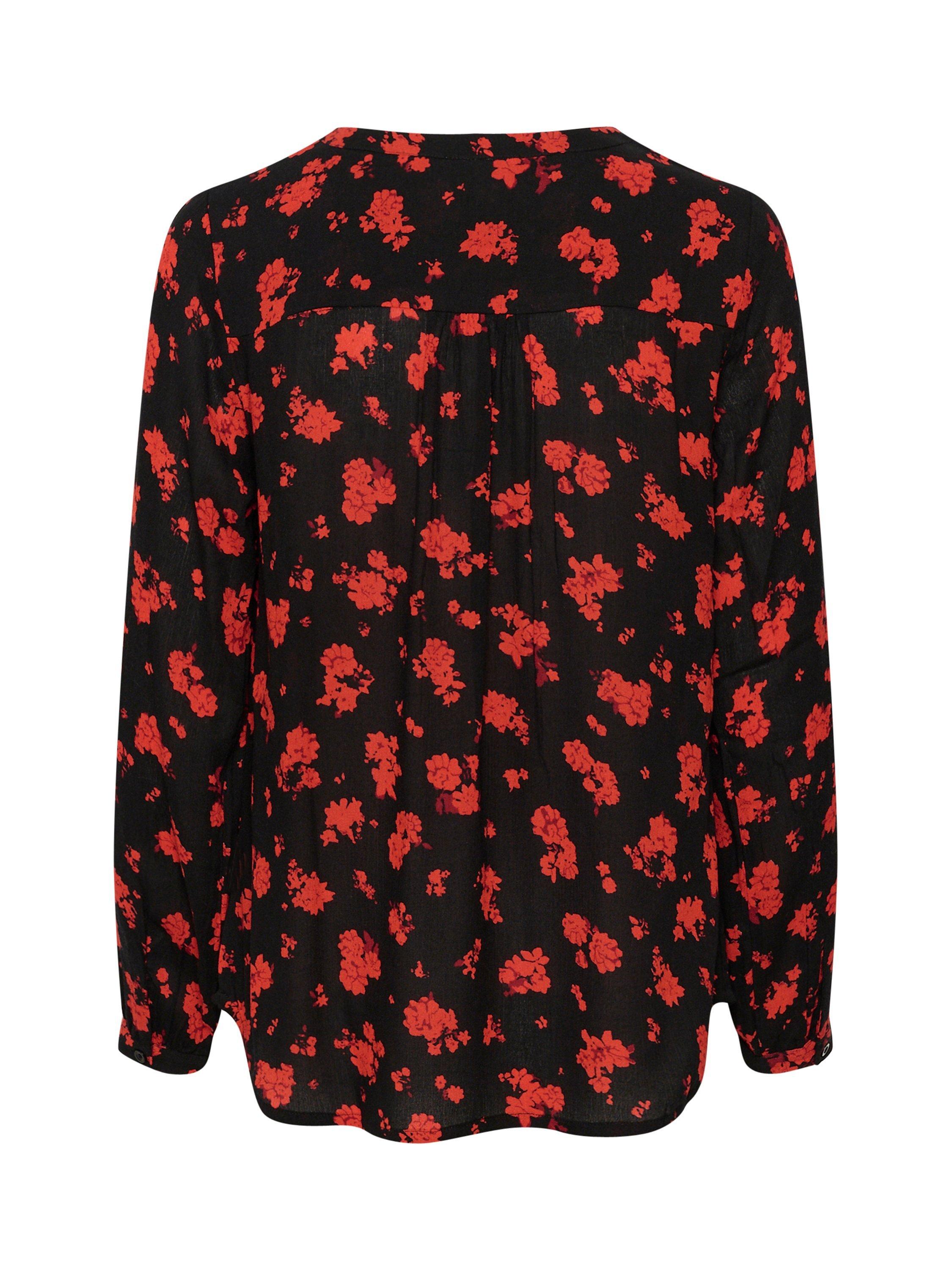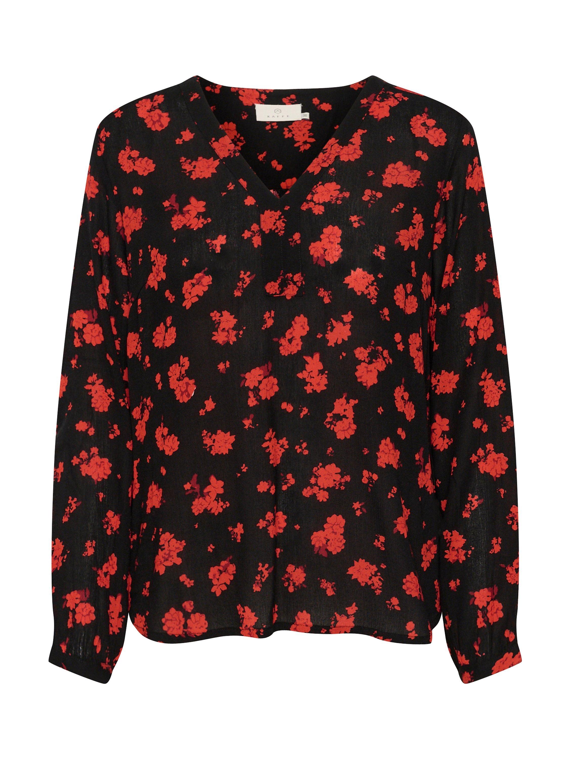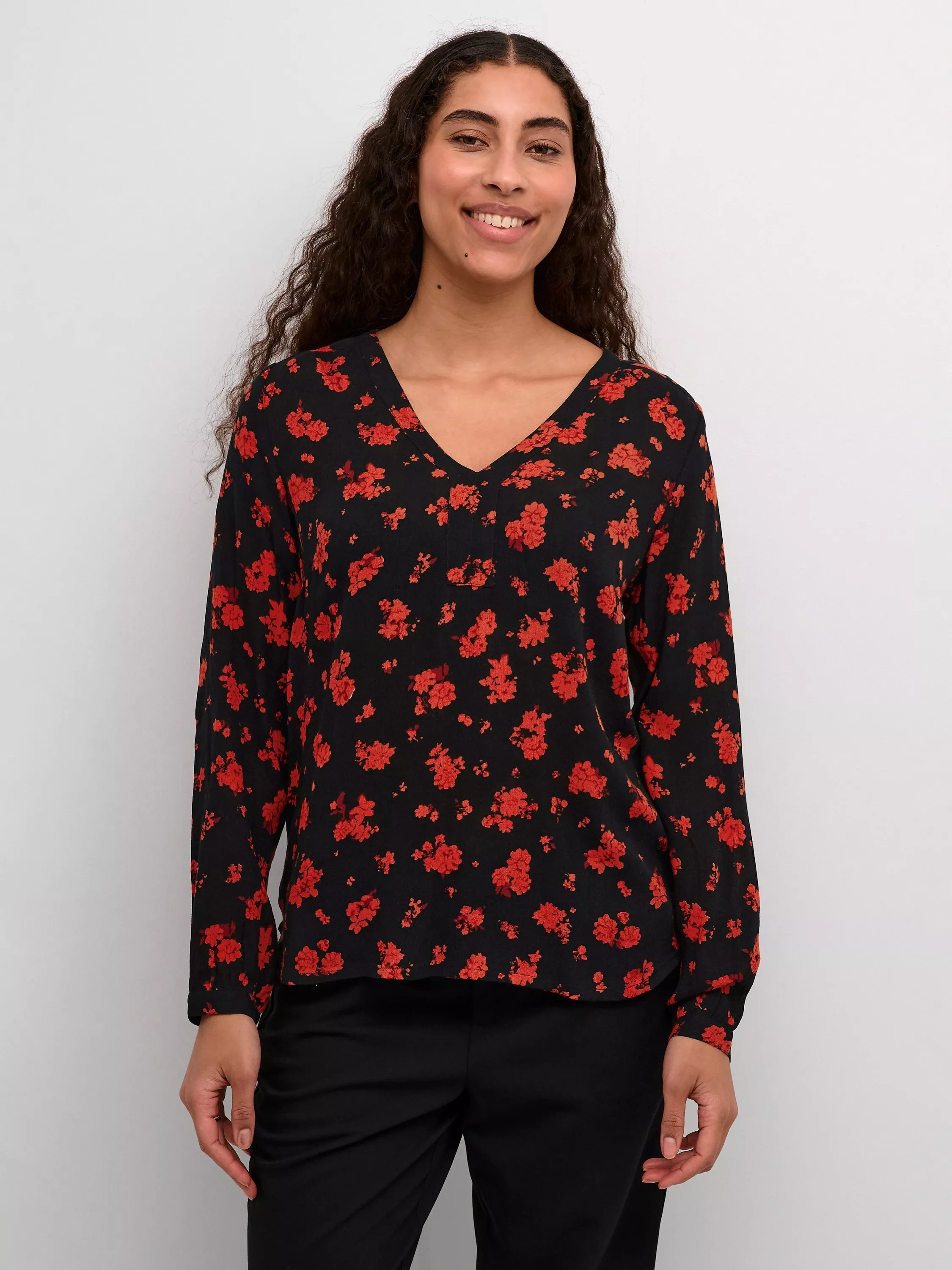The amber blouse is a versatile style in a great print. It has a V-neck with a kaftan placket and it has a casual fit with wide shoulders. The sleeves are long and has a buttoned cuff. The blouse has a yoke on the back and it is cut at the hips.