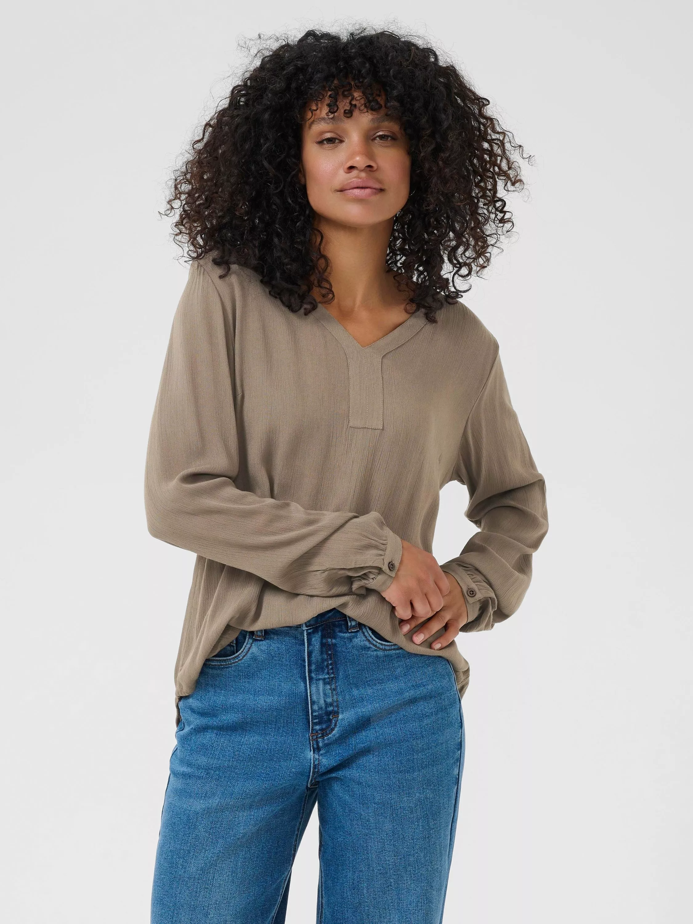 An essential addition to your wardrobe, this blouse from KAFFE is plain for easy mixing and matching. Framed with a V-neckline and long sleeves, it is made from soft viscose and is an everyday wardrobe essential.
