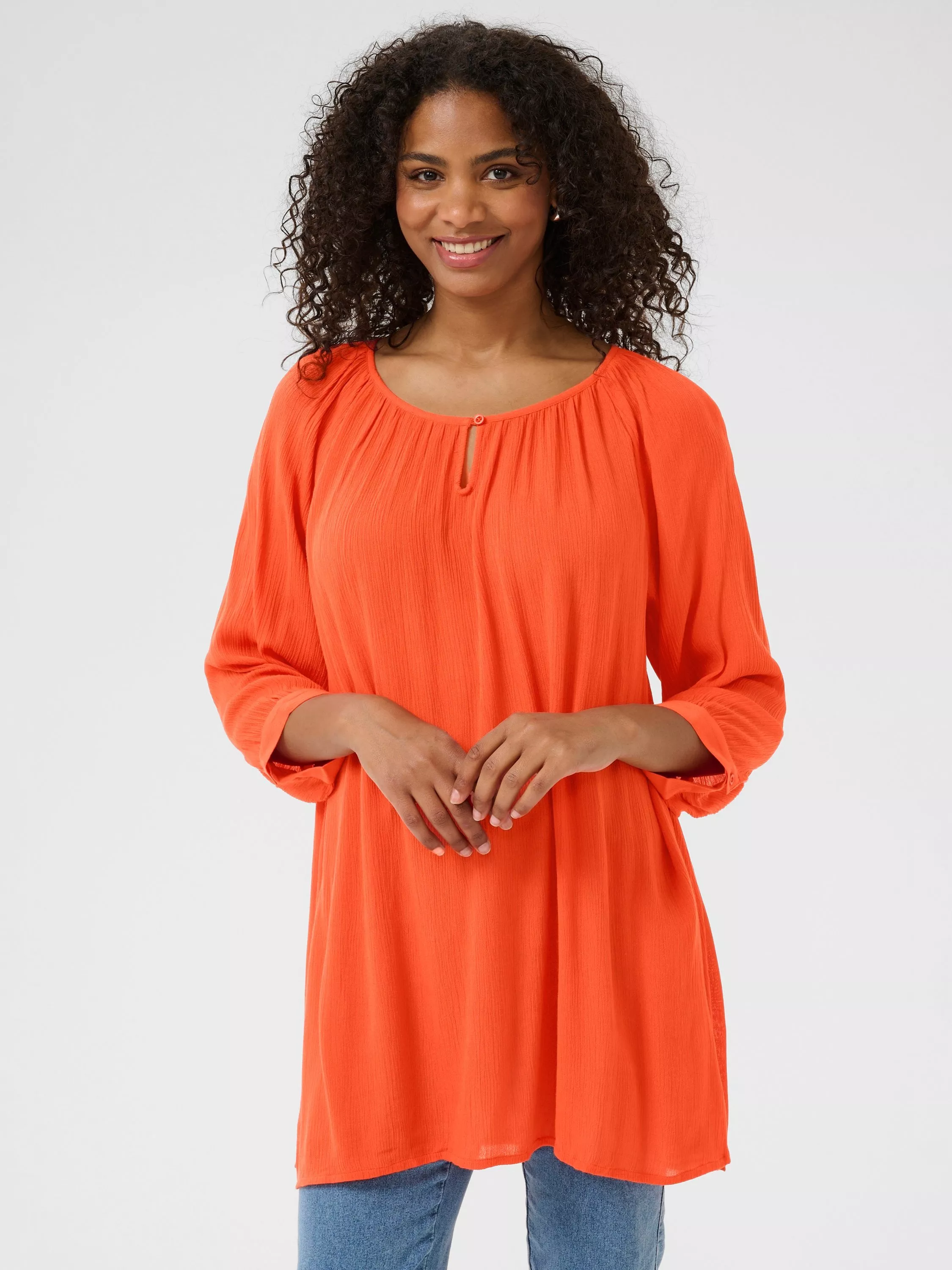 Longer in length for relaxed days ahead, this tunic top by KAFFE is plain for easy mixing and matching.