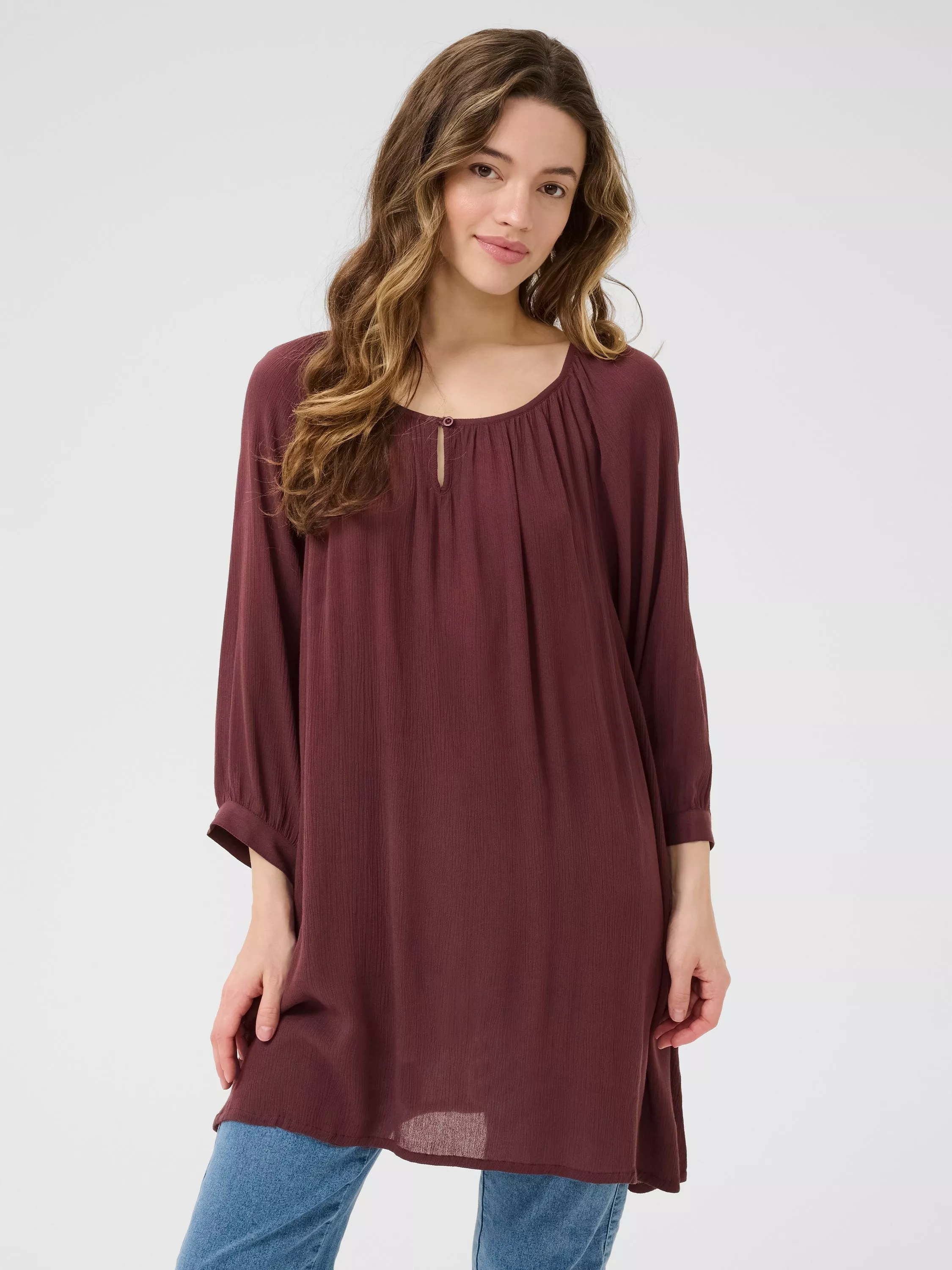 A round neck tunic top from KAFFE, with a lightweight fabric blend and full-length sleeves.