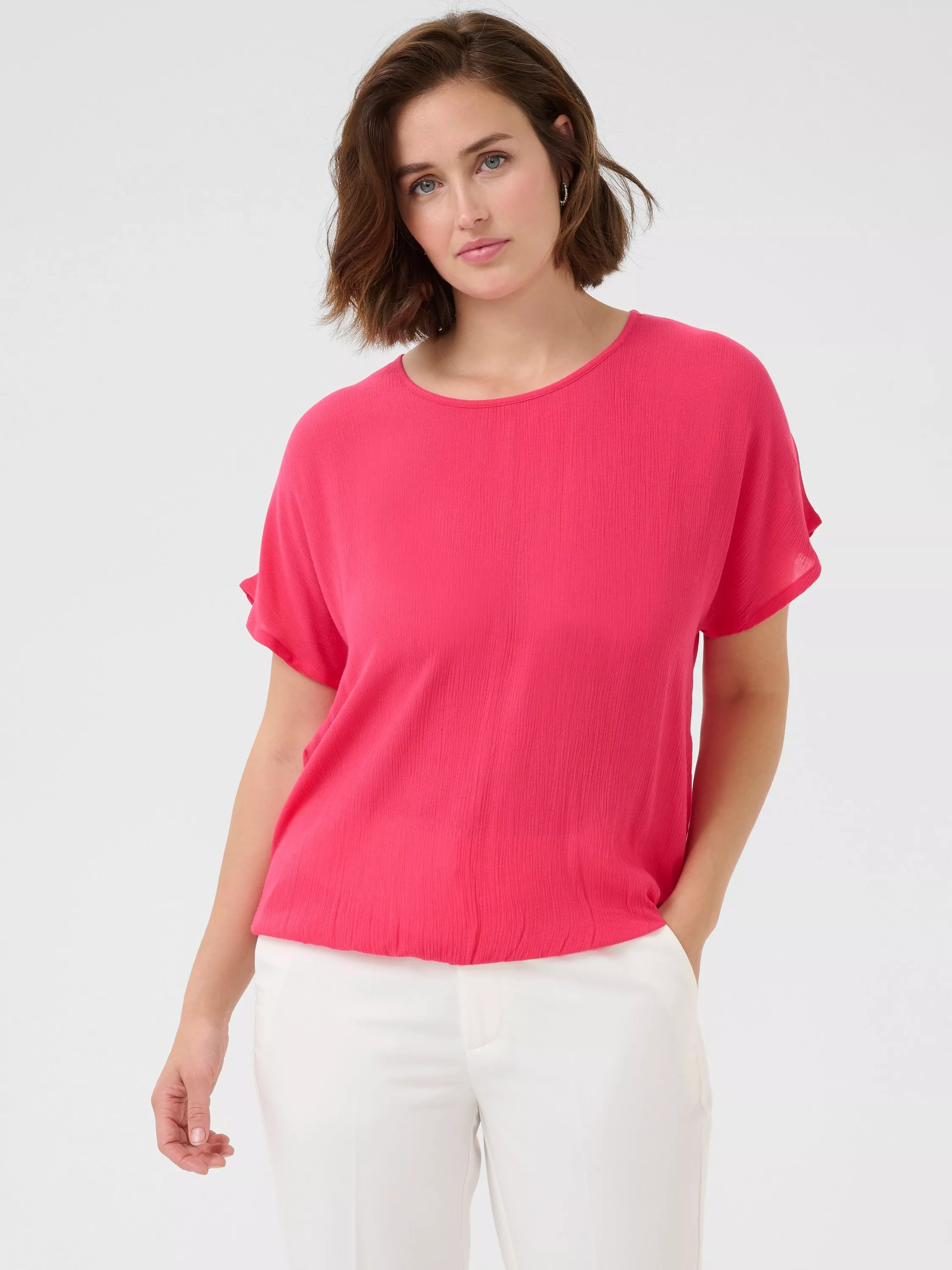 An effortless choice, this blouse from KAFFE makes for the perfect companion to patterned layers. Cut with a fuss-free round neck and short sleeves, style it up with the regular fit and enjoy the summer season in comfort and style.