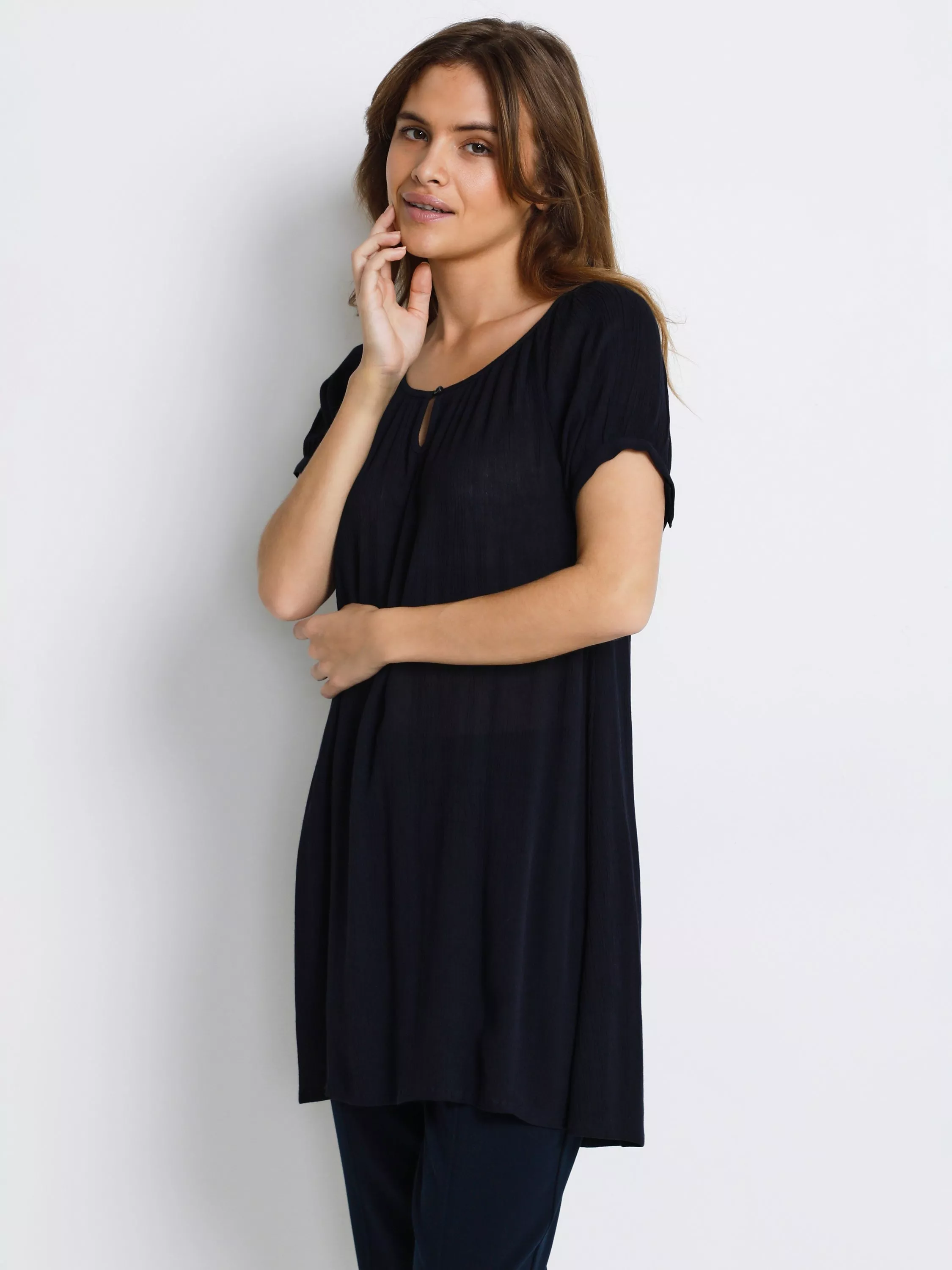 KAFFEAmber Short Sleeve Scoop Neck Tunic, Black Deep