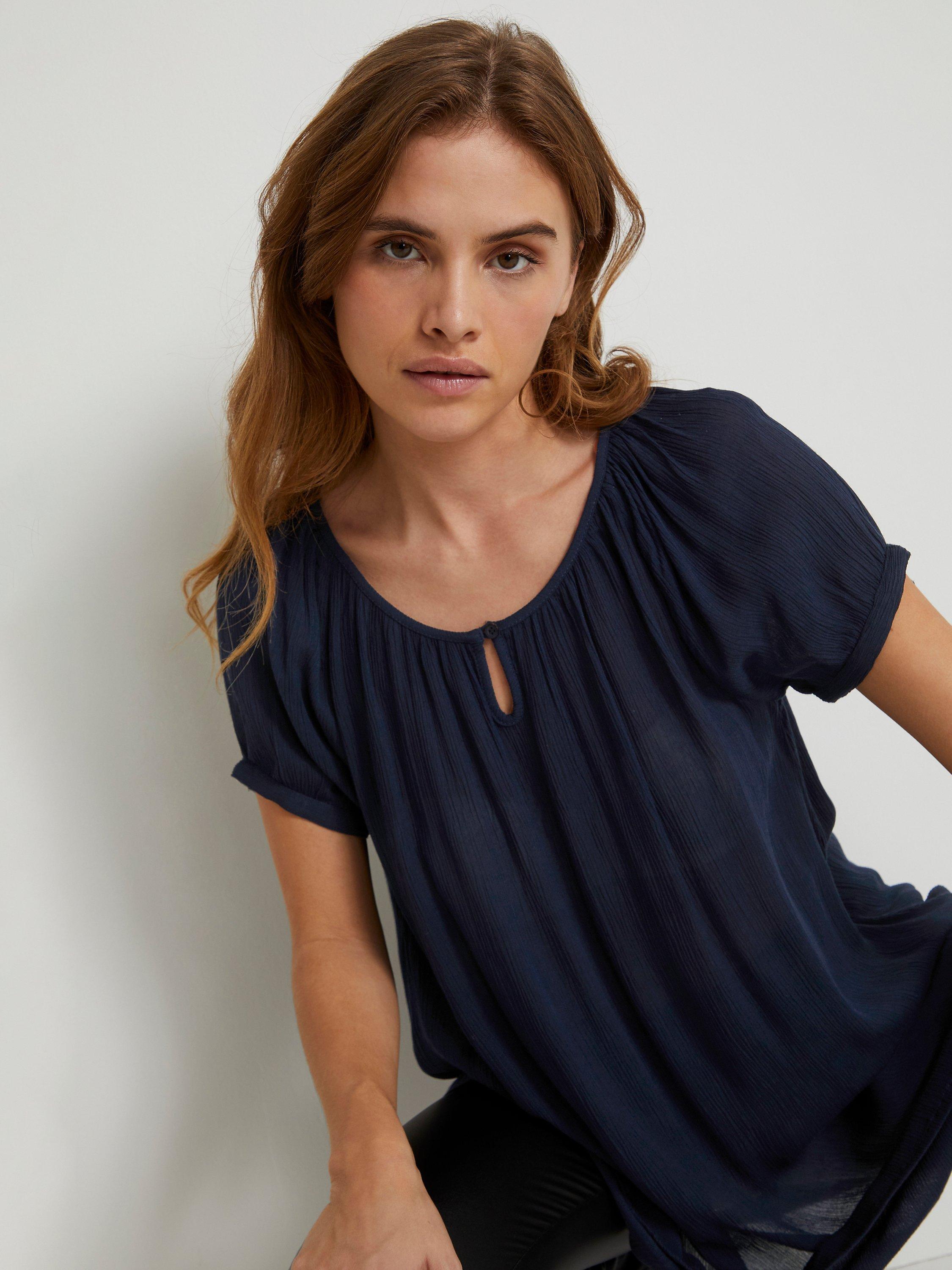 Cut with a simple round neck and short sleeves, it is made from a light yet durable fabric and is ideal when partnered with floaty midi skirts for summer days spent strolling around the city.