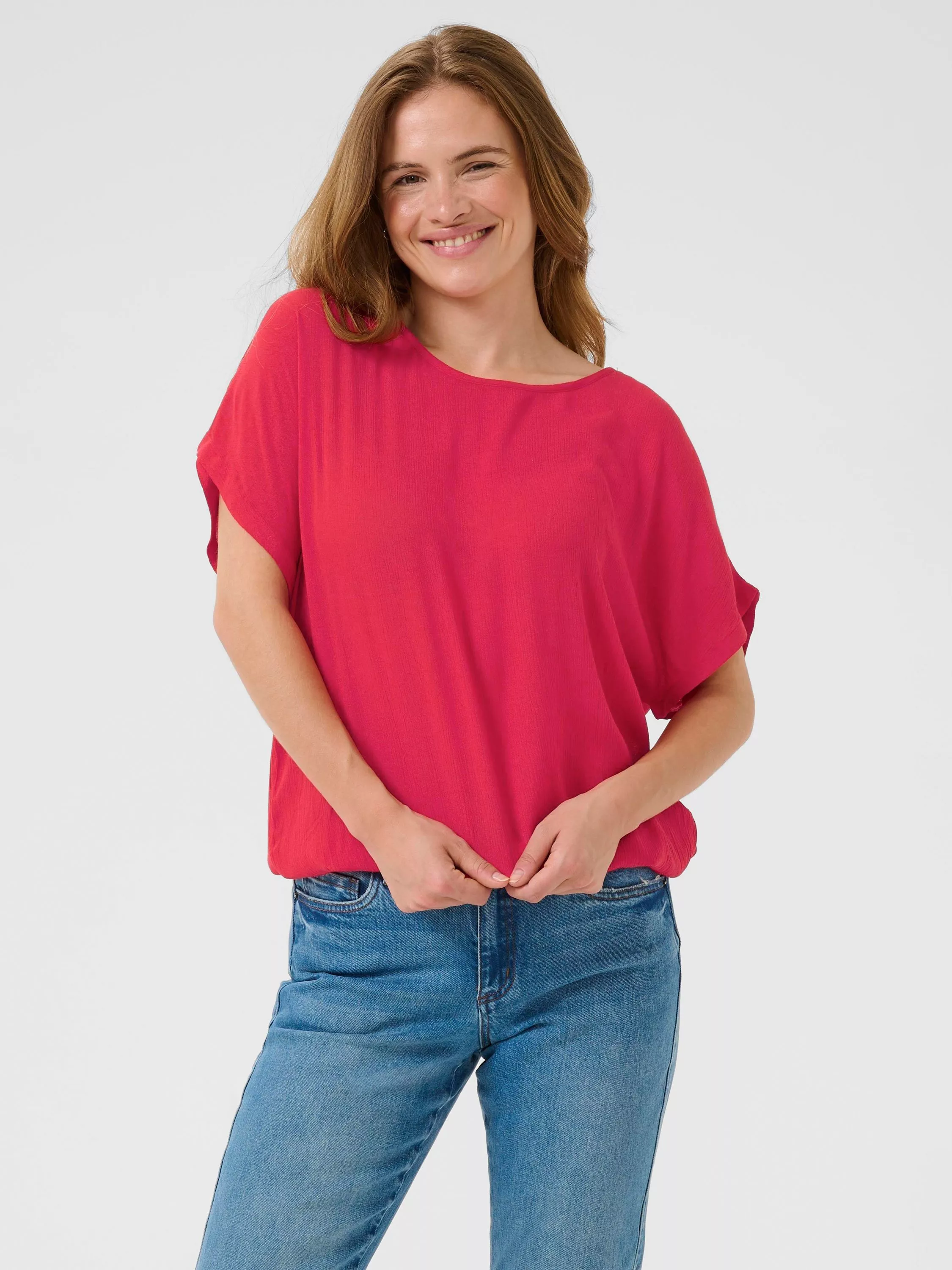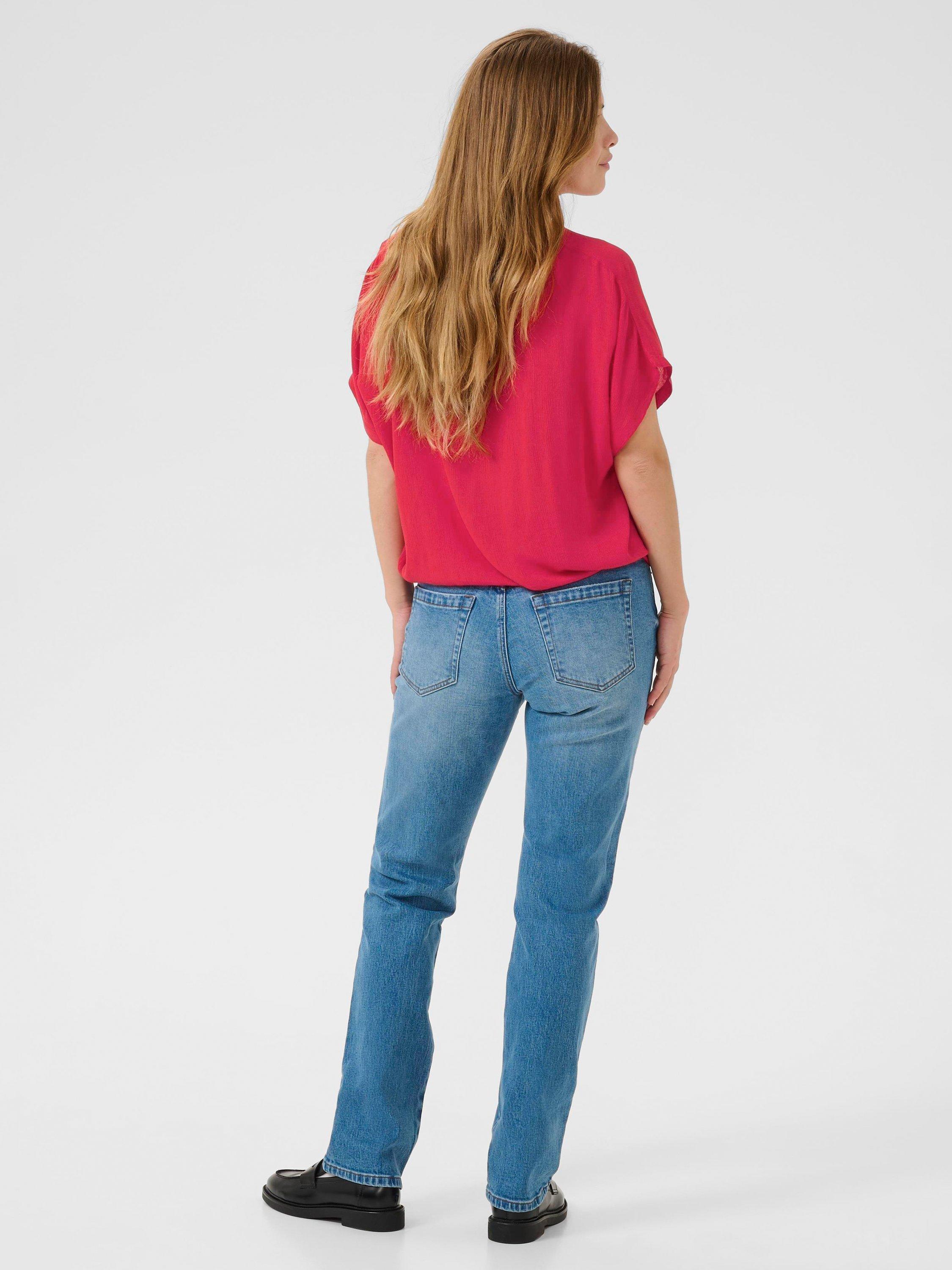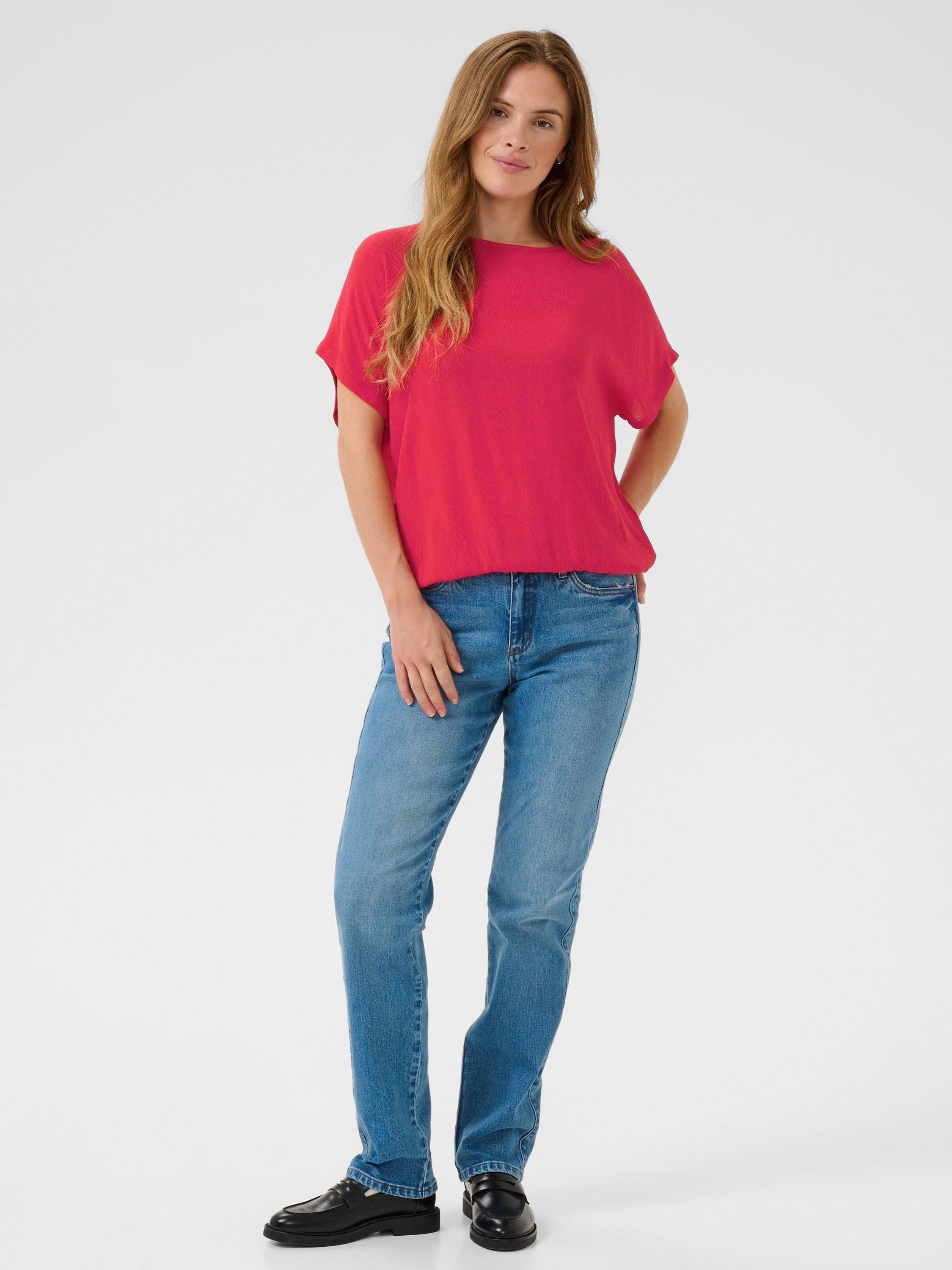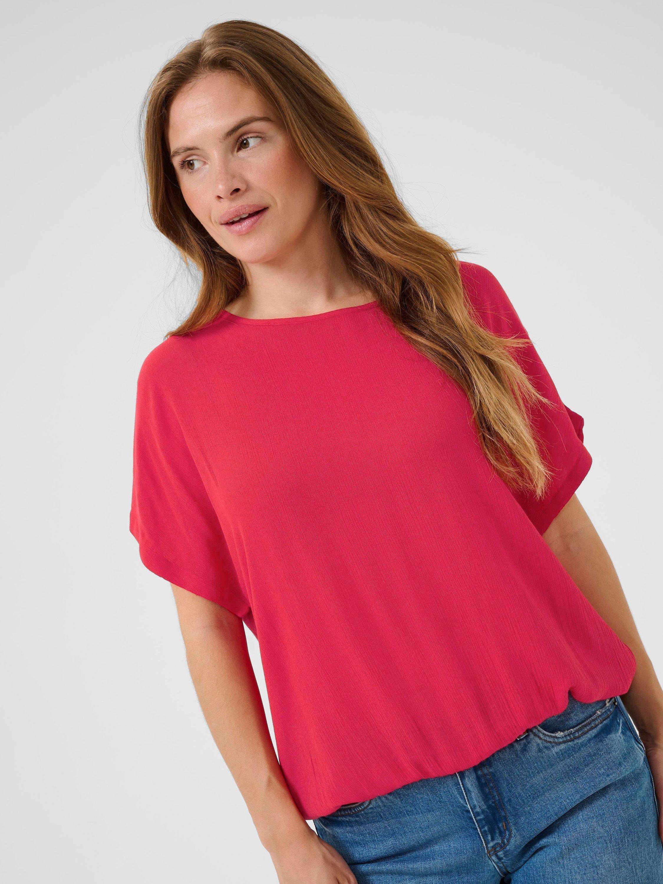 Feel confident and comfortable all day with this KAFFE blouse. Its smooth viscose drapes beautifully, while the round neck and short sleeves keep your look smart and easy for any occasion.
