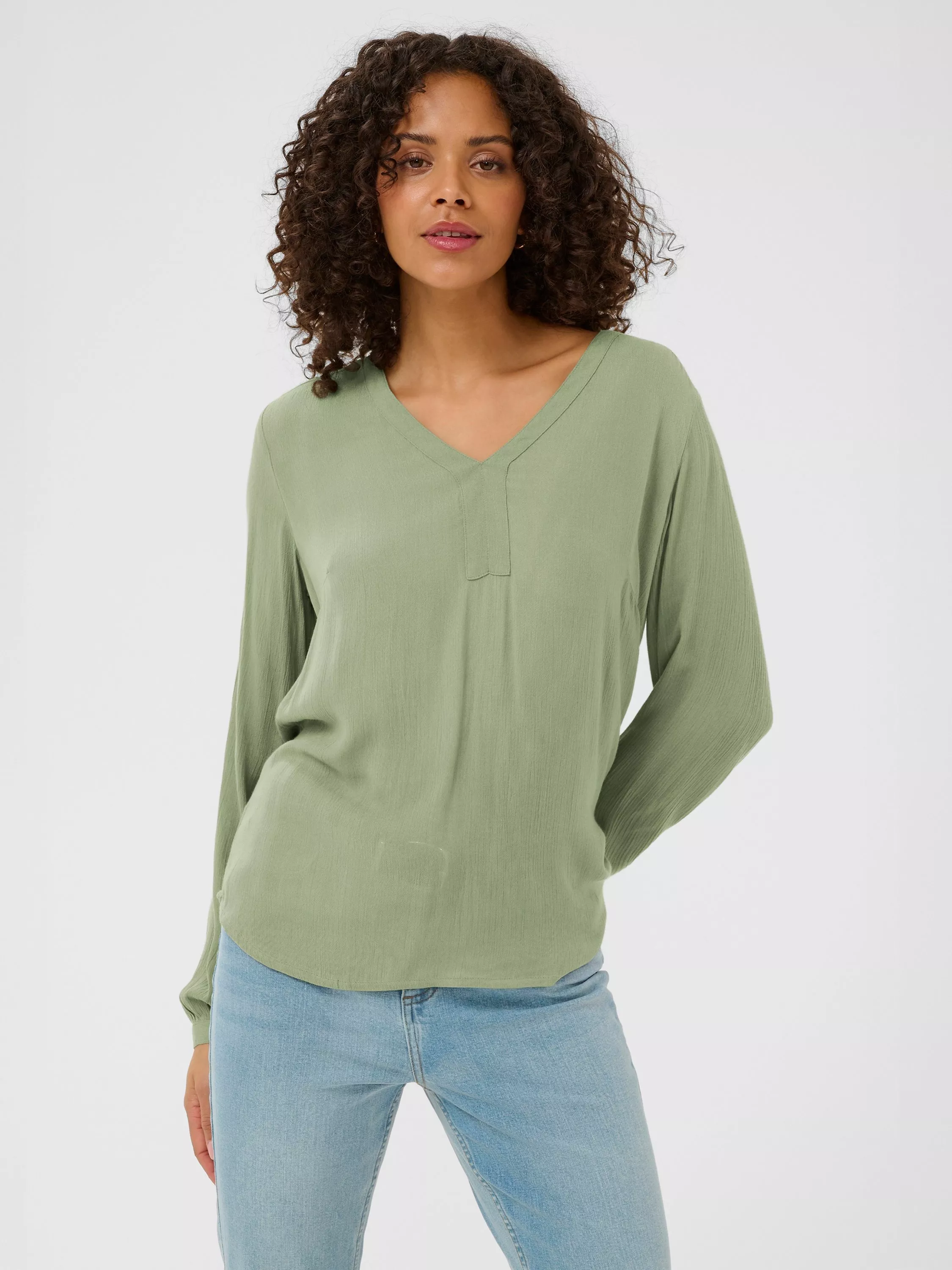 KAFFEAmber V-Neck Blouse, Sea Spray