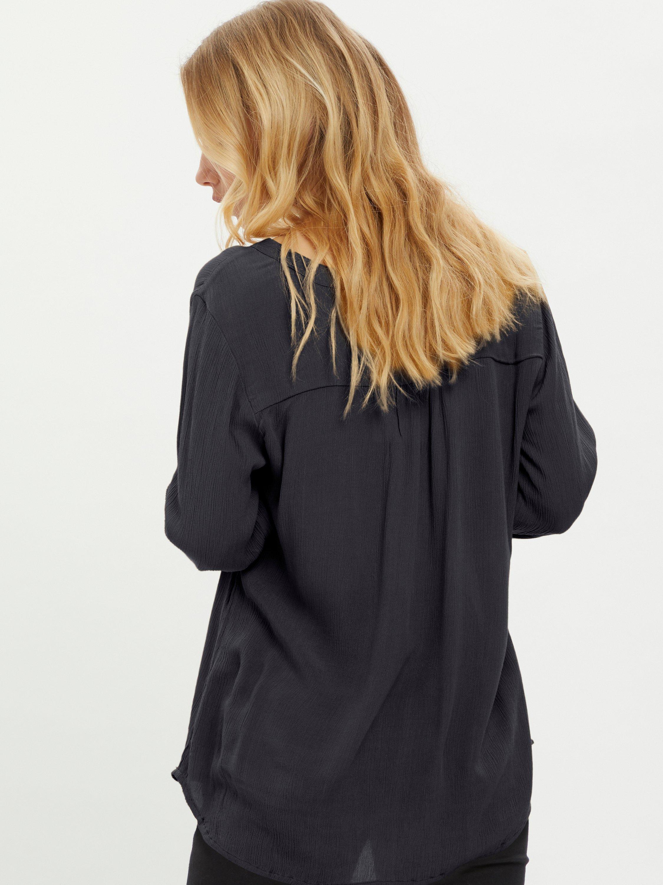 For everyday comfort, this blouse by KAFFE makes for the perfect companion to patterned accessories and layers.