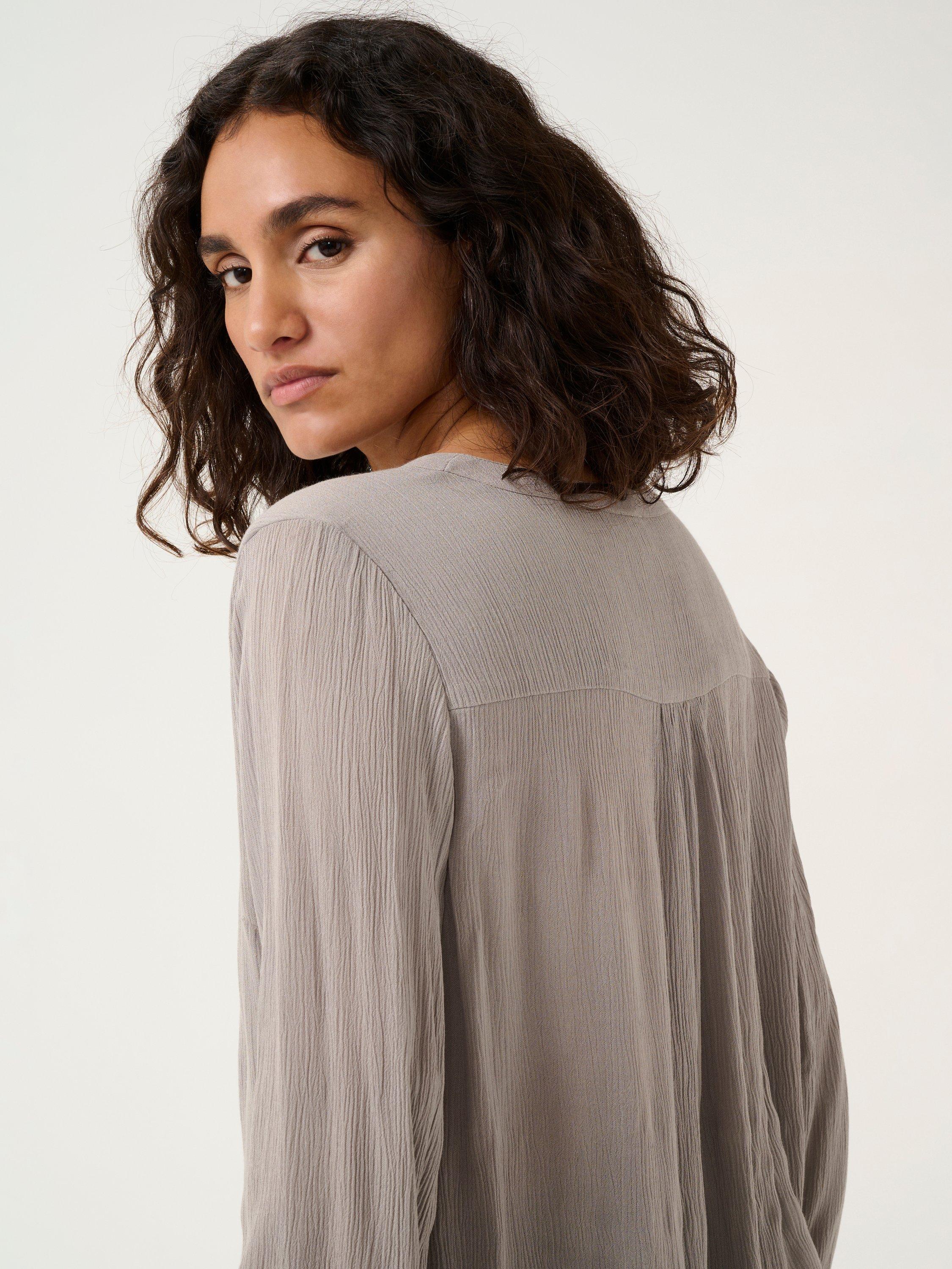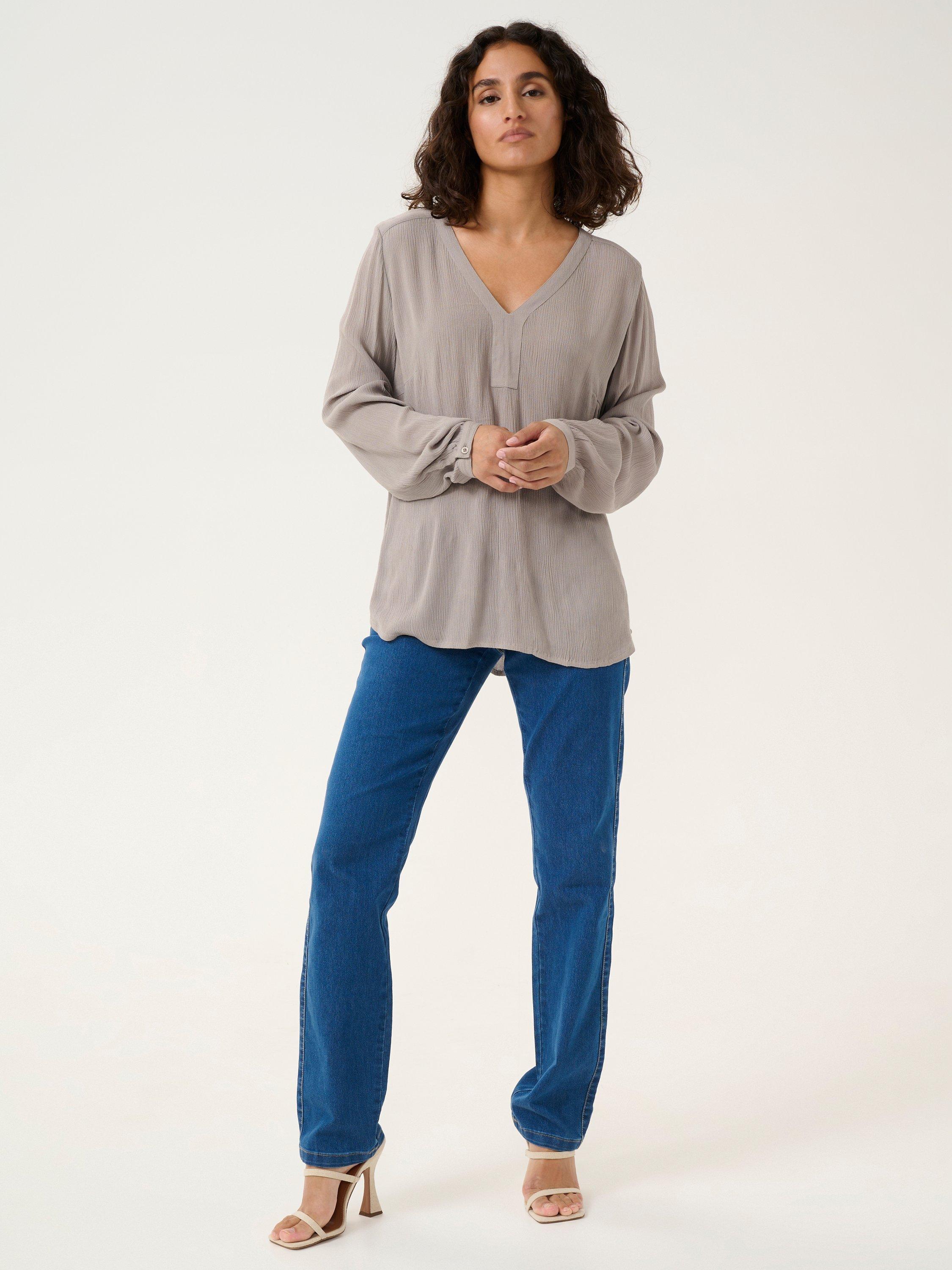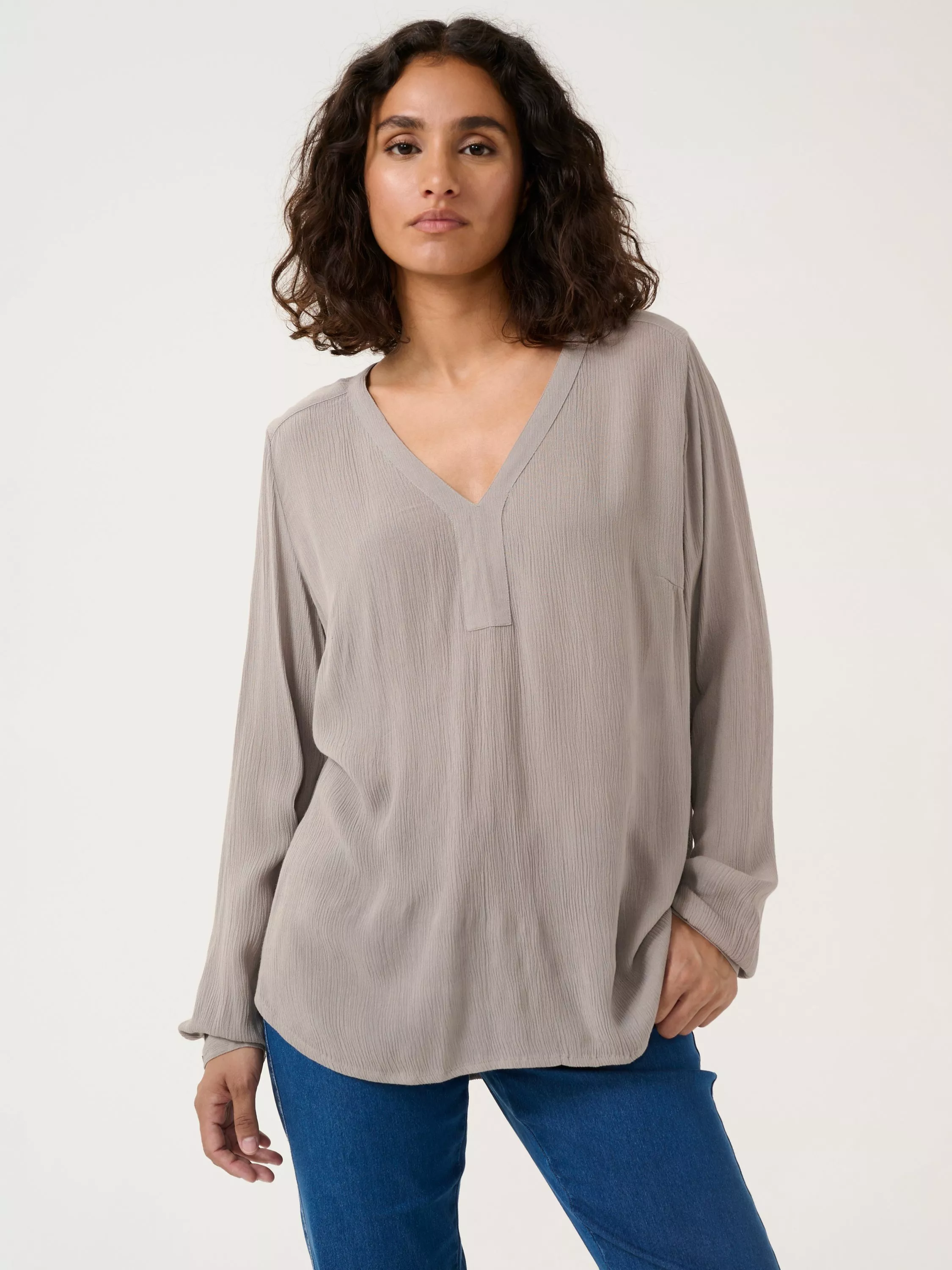 KAFFEAmber V-Neck Long Sleeve Top, Grey