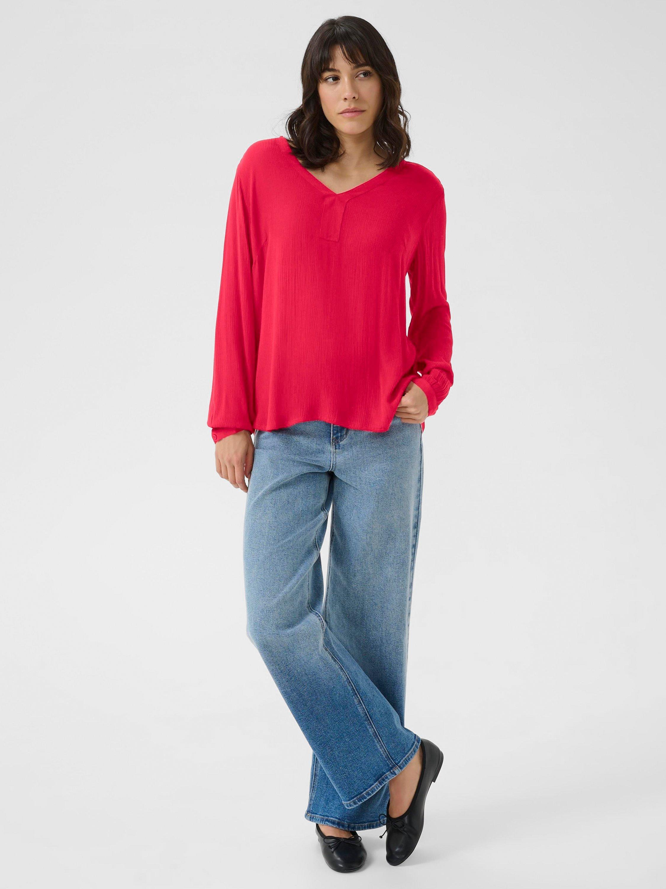 A v-neck blouse from KAFFE made from a lightweight fabric with long sleeves.