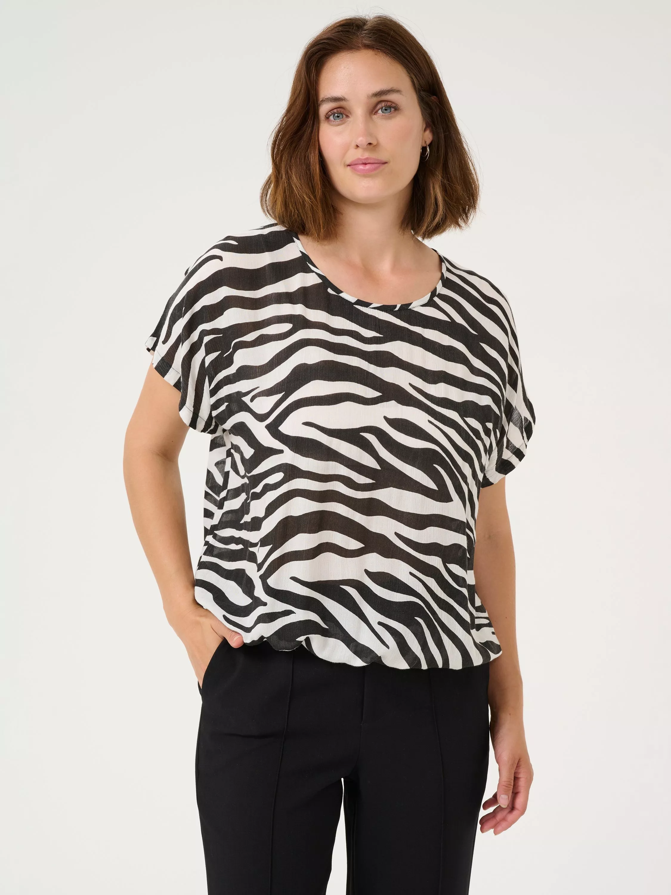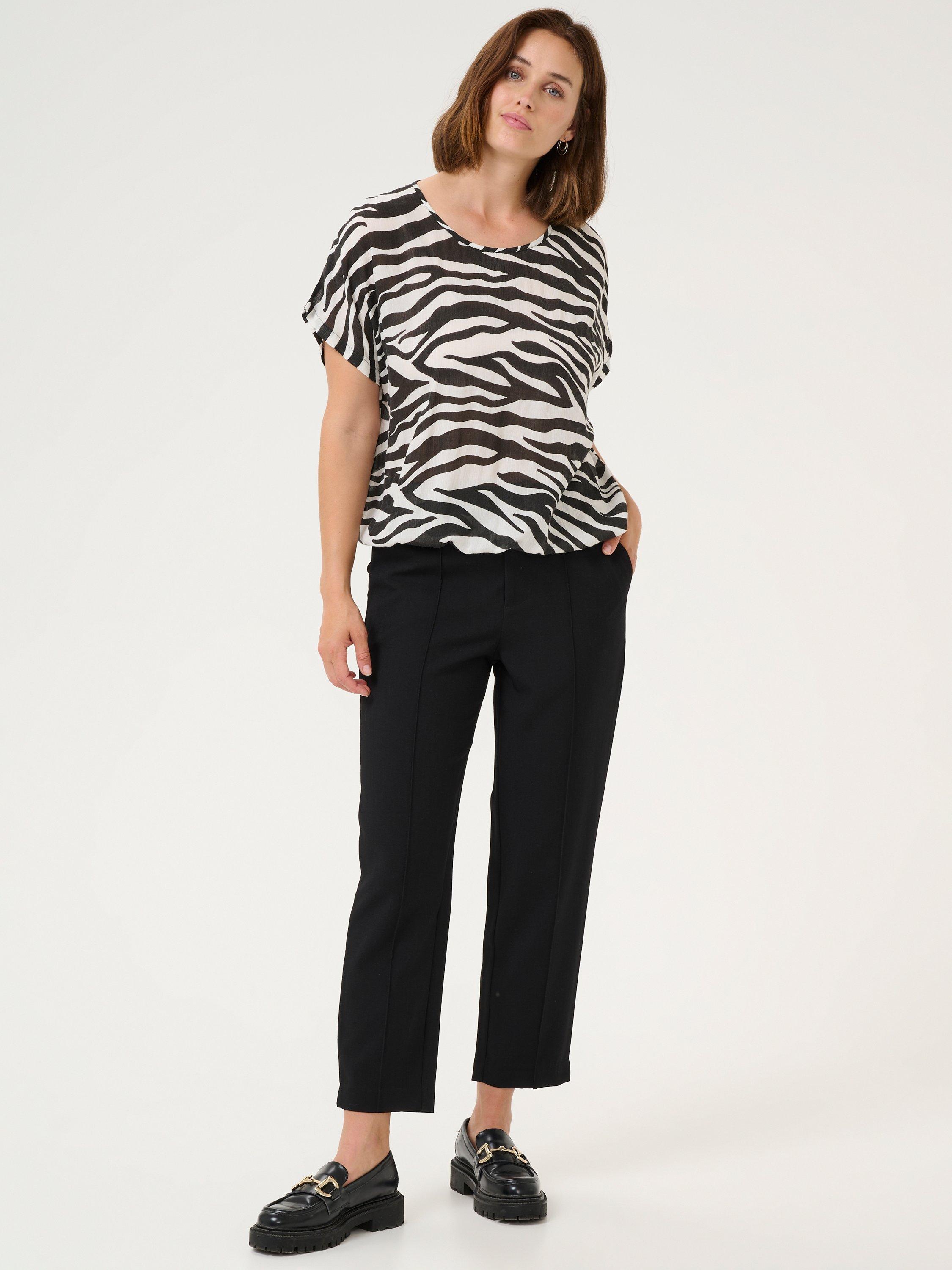 Bringing a neat addition to your wardrobe, this loose-fit blouse from KAFFE adds impact with its eye-catching zebra print. Cut with a round neckline and short sleeves, it is made from a light yet durable fabric that's perfect for a breezy summer look.