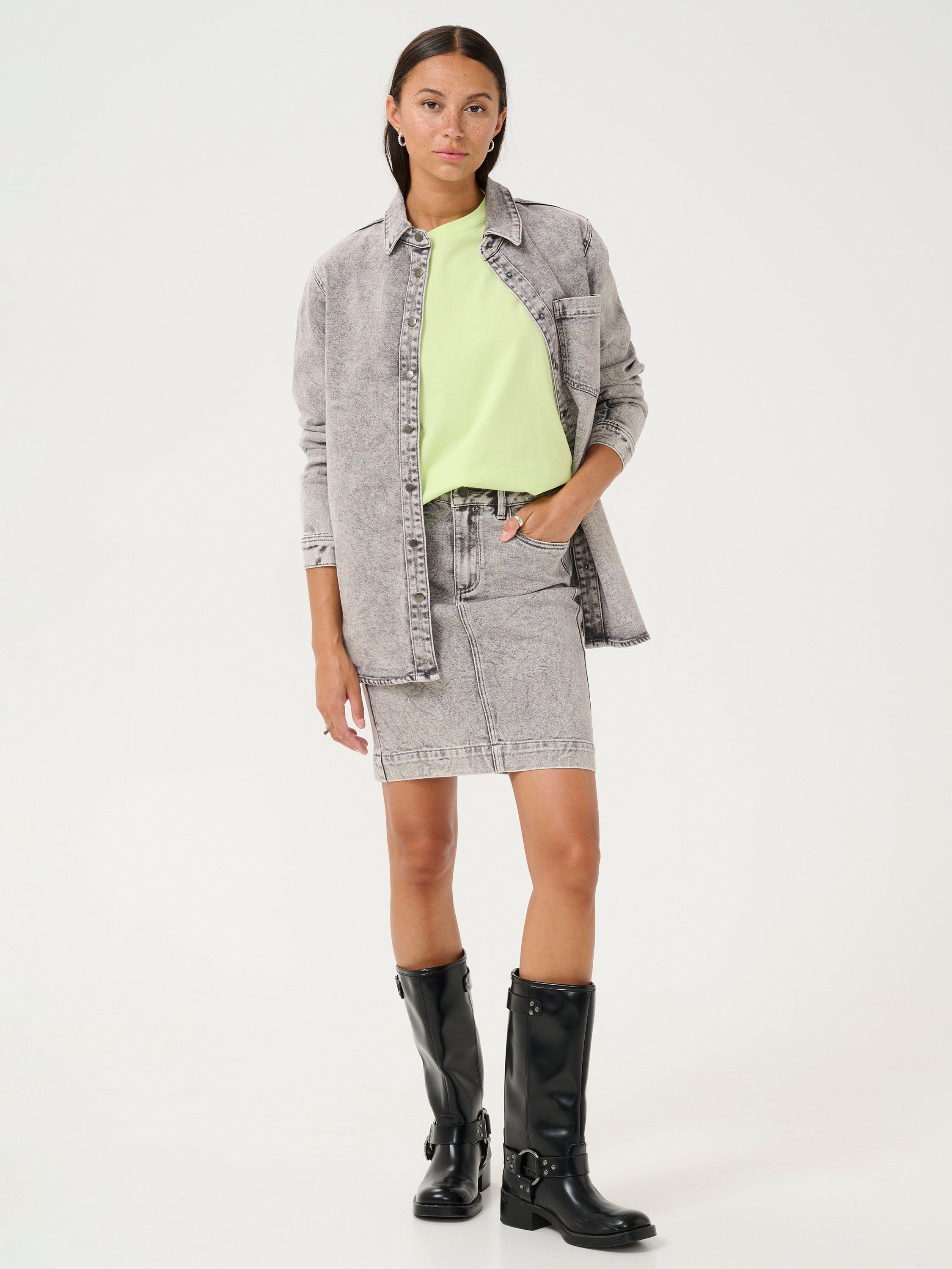 Cut to a classic straight silhouette for day-to-night wear, this denim mini skirt from KAFFE comes without pattern or print so you can set your imagination and creativity free when it comes to accessorising. Spun from washed denim, it's a great addition for your casual wardrobe.