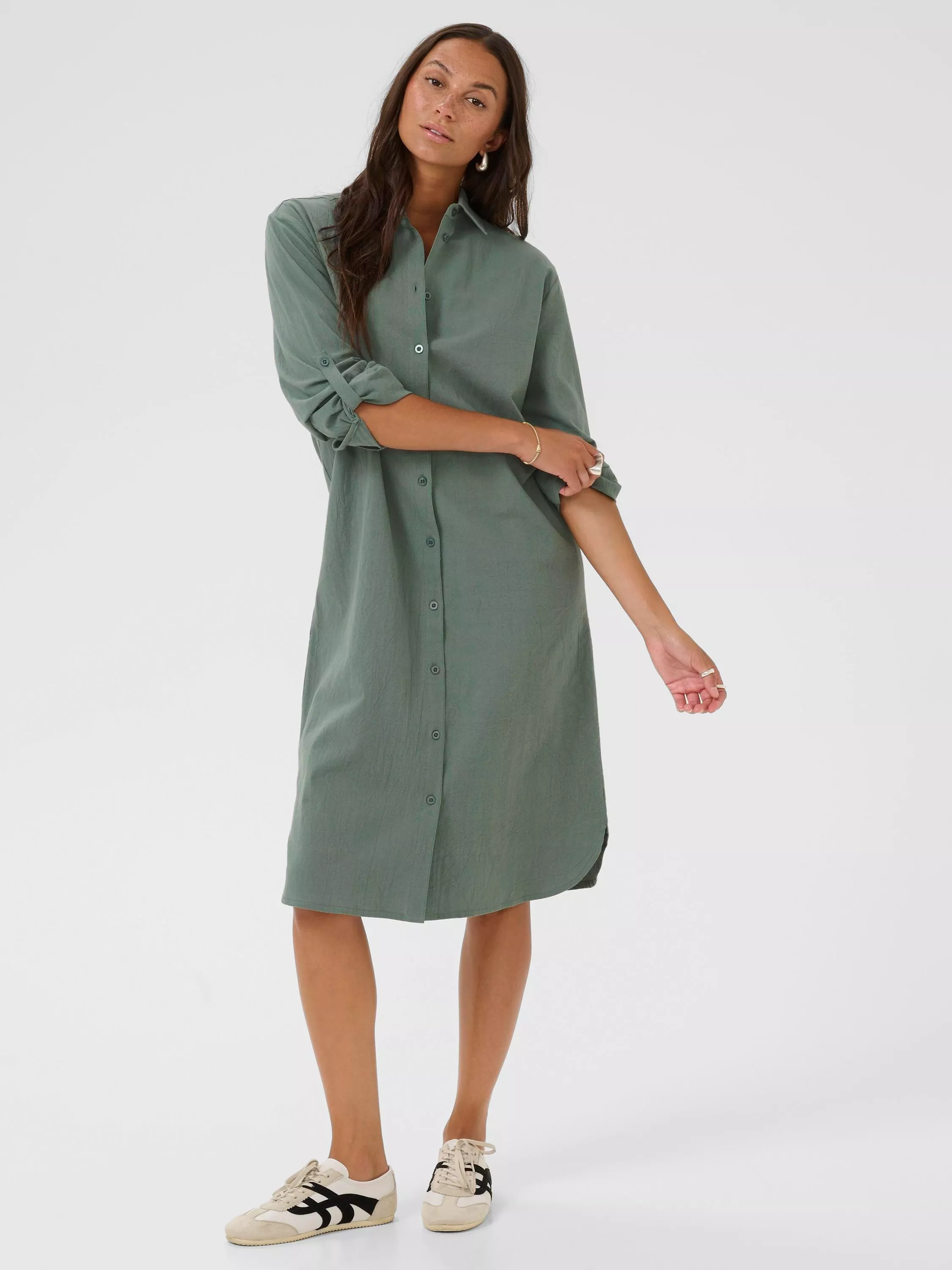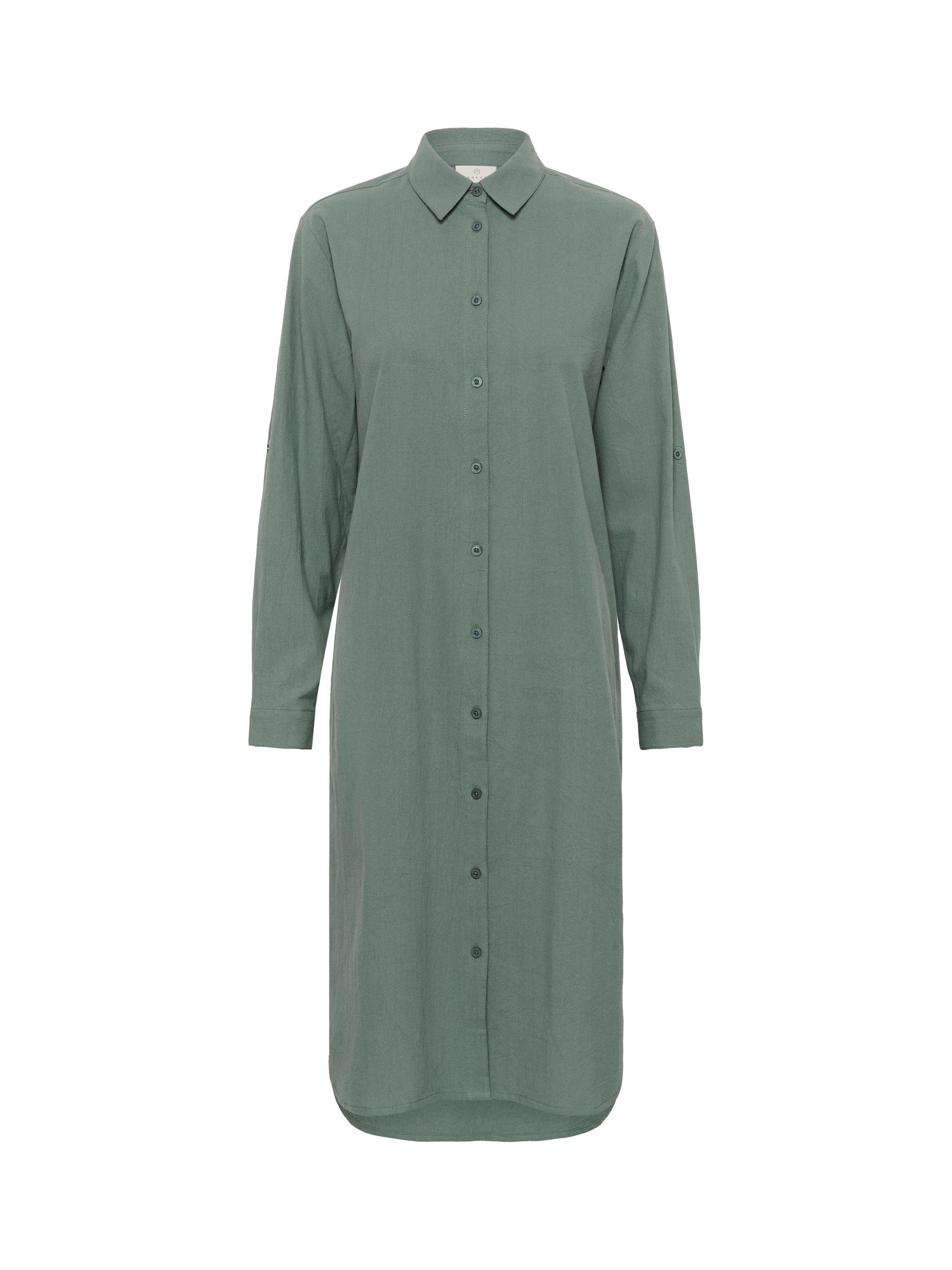 A buttoned up breeze. This long sleeved pure cotton midi dress from KAFFE is framed with a collar neckline whilst the plain colour means it goes with everything.