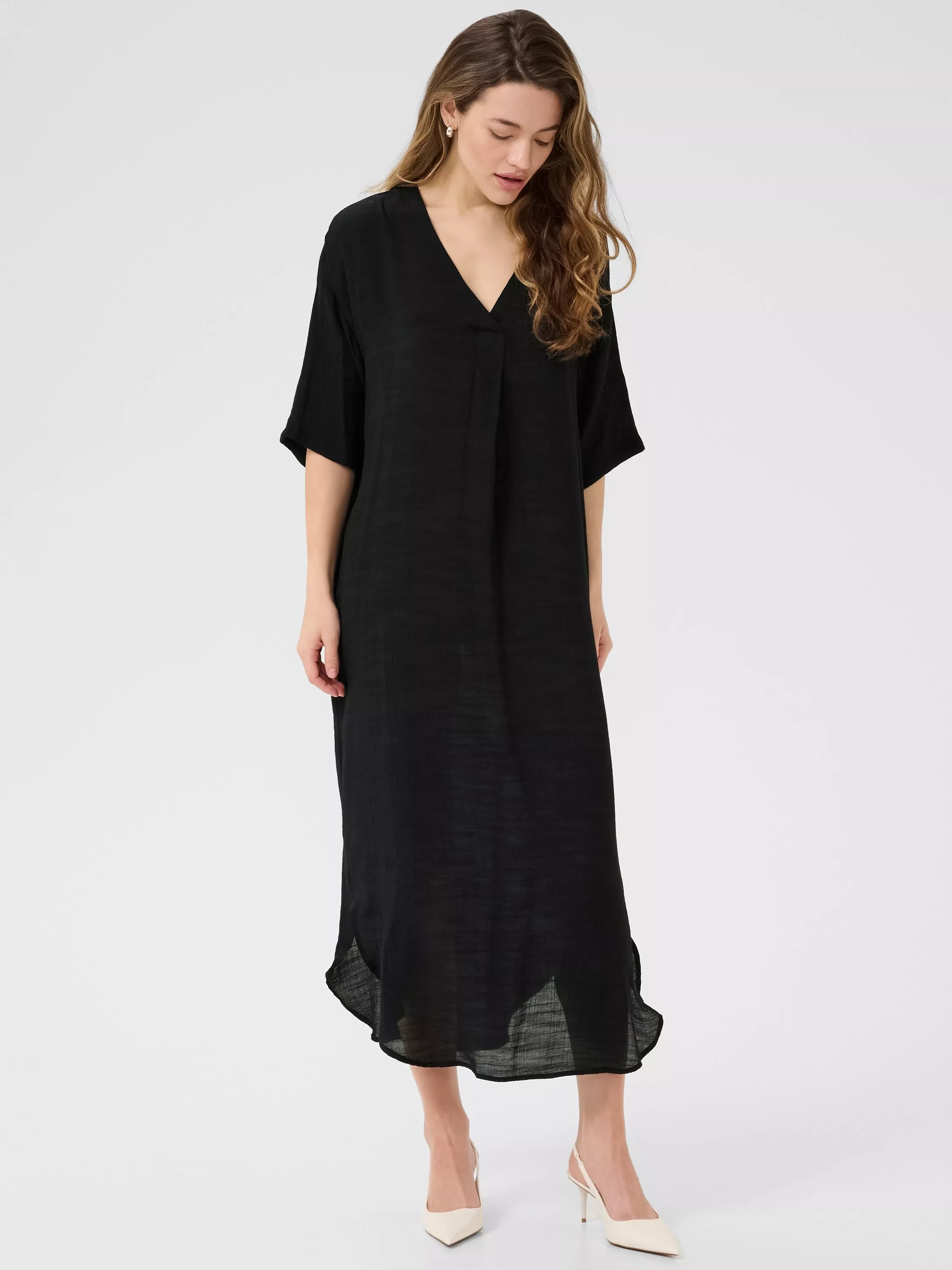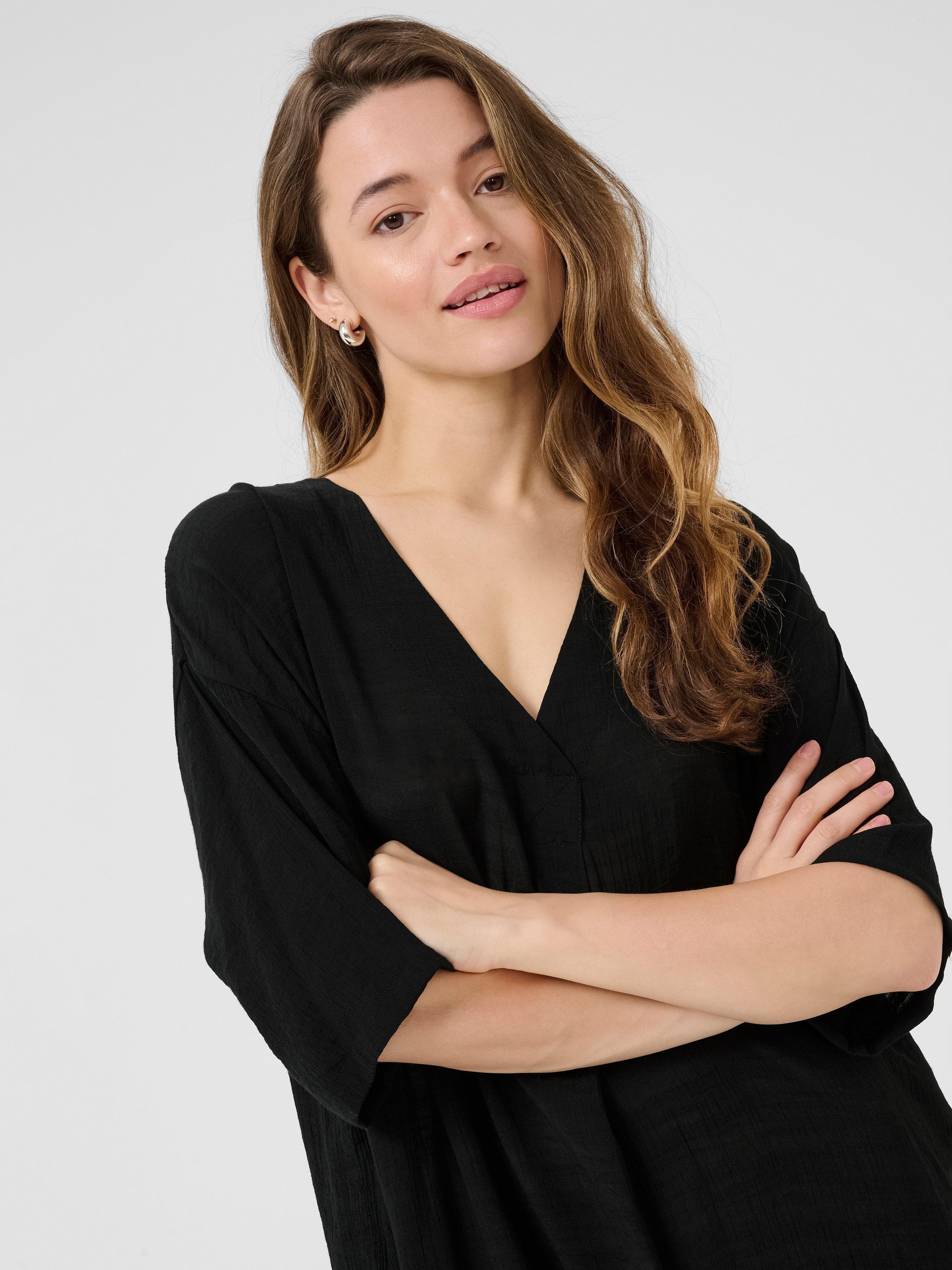Expect both comfort and compliments. This short sleeve midi dress from KAFFE is framed with a V-neckline and a mix-and-match ready plain colour.