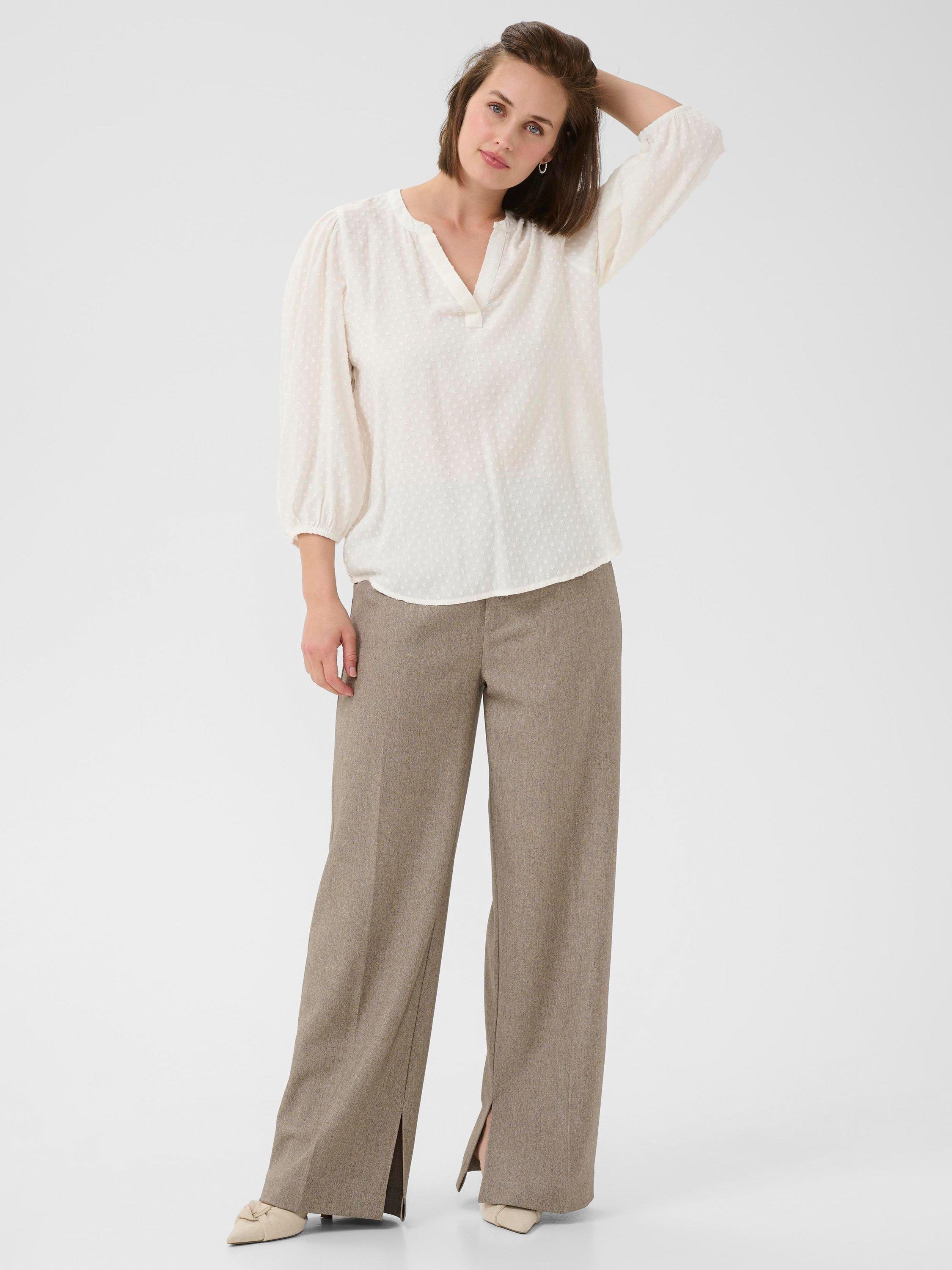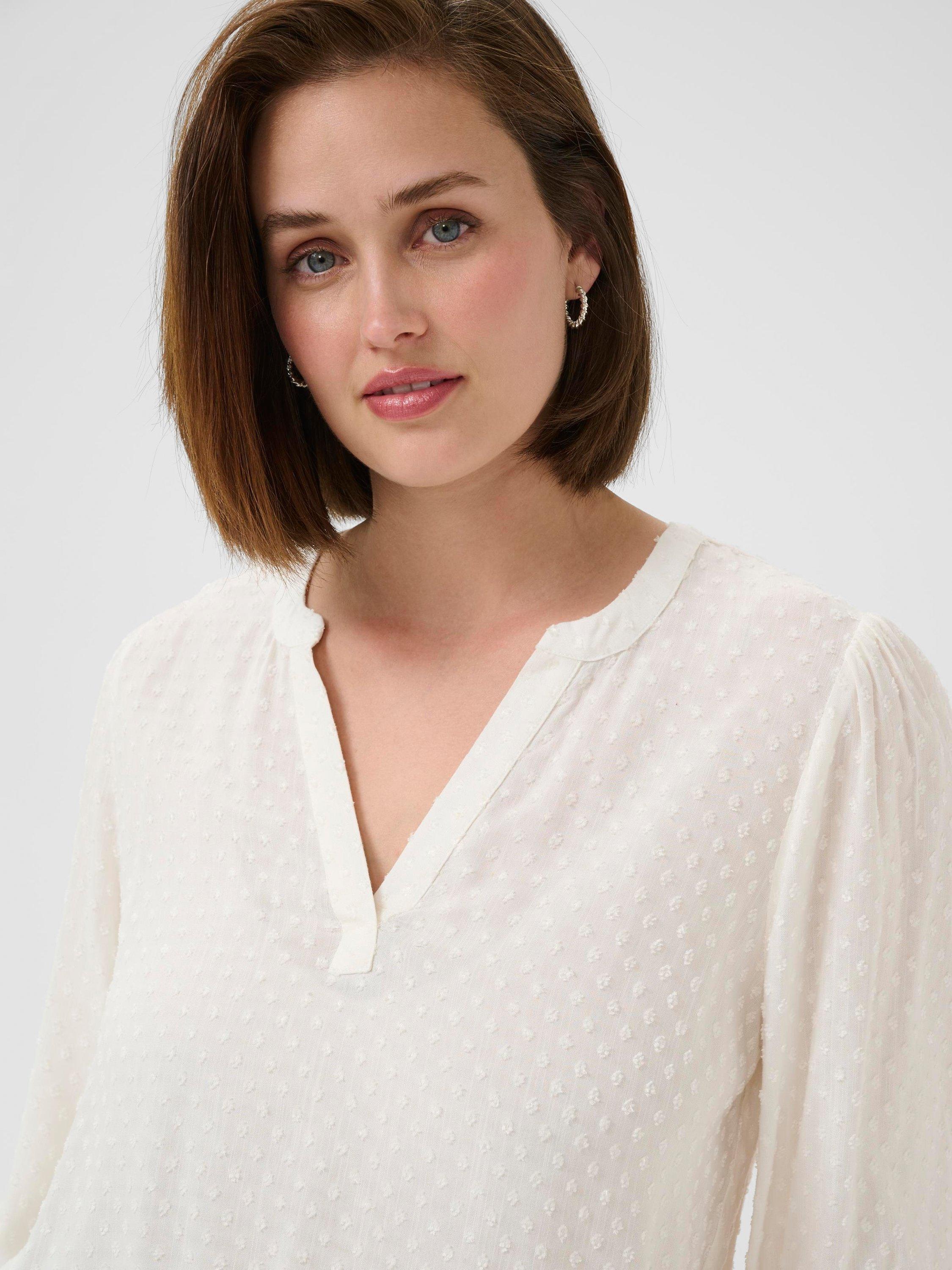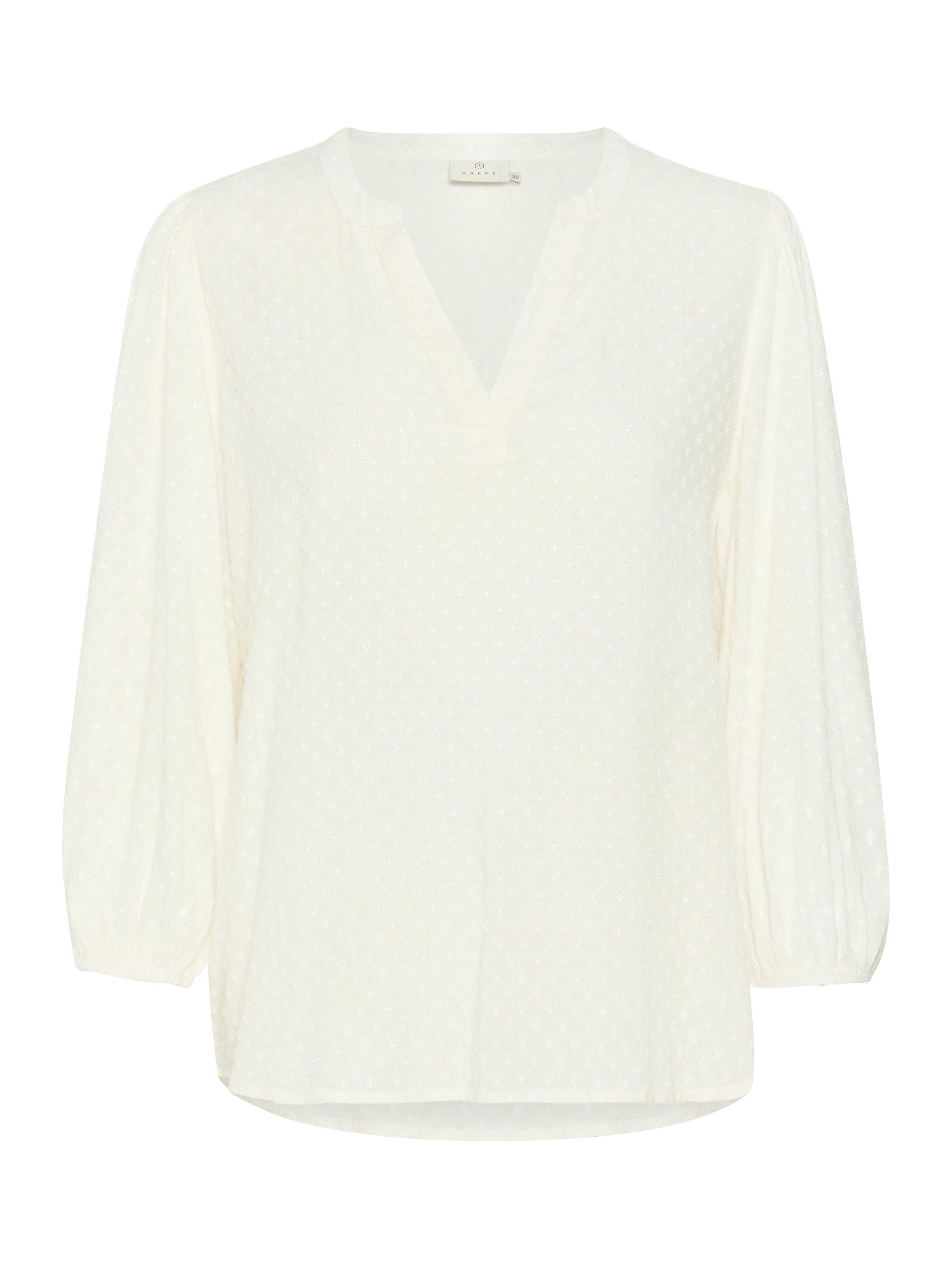 This three quarter sleeve blouse by KAFFE offers a soft, textured finish and a relaxed V-neck. Designed for comfort and flair, it pairs effortlessly with your favourite jeans or trousers.