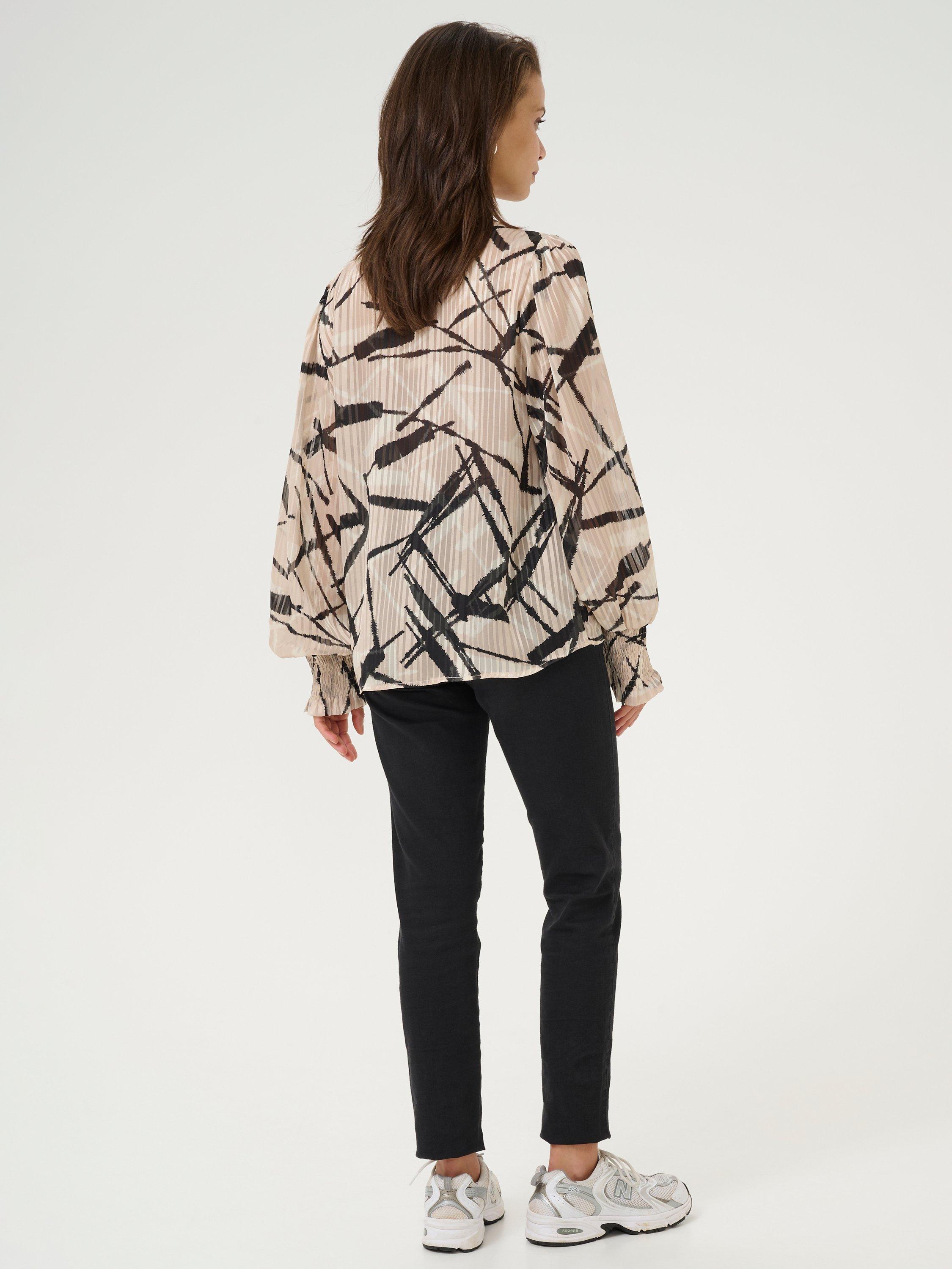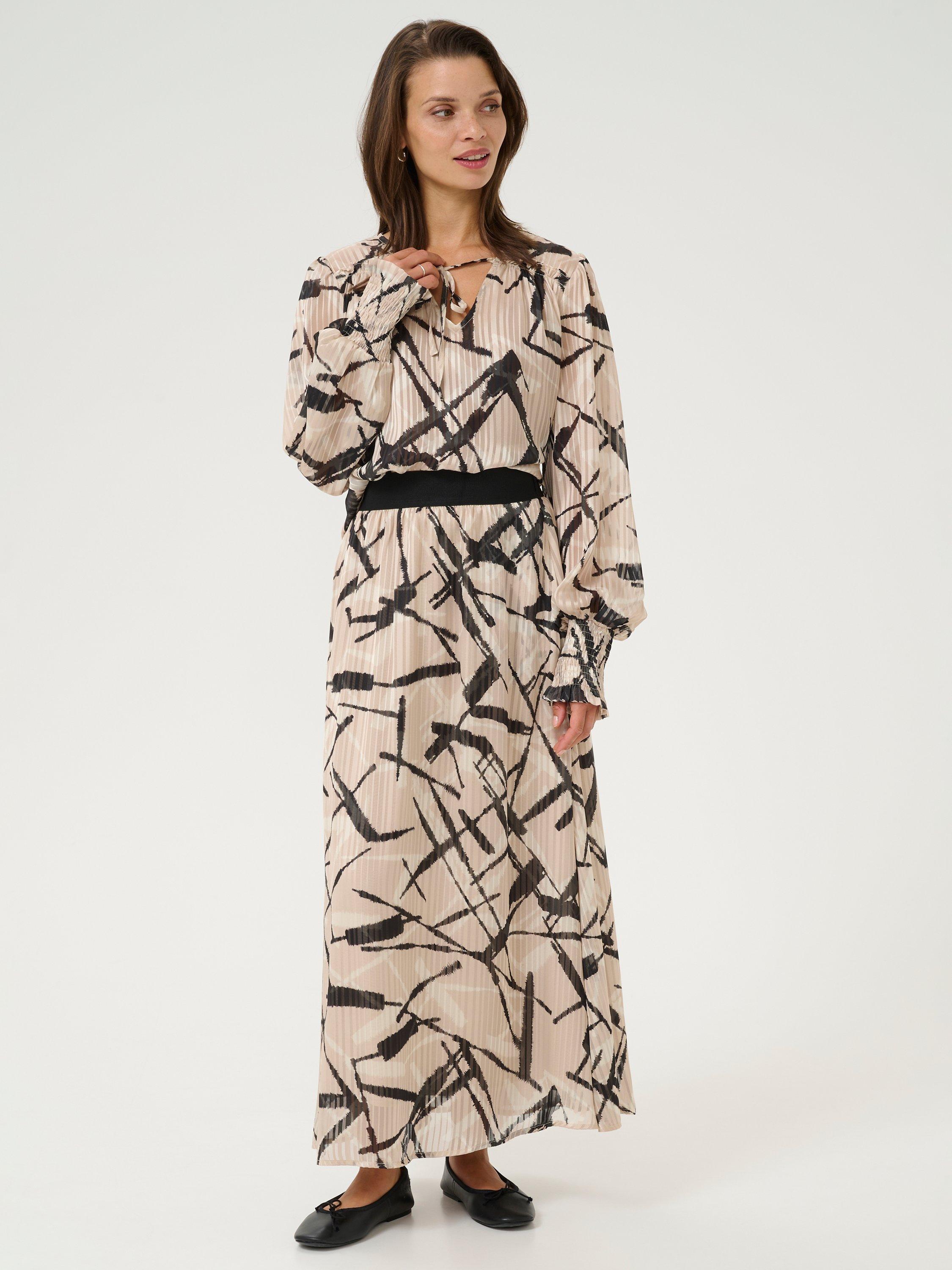 Elevating your wardrobe, this pleated blouse from KAFFE is designed with an abstract print, a flattering v tie neckline and long sleeves.