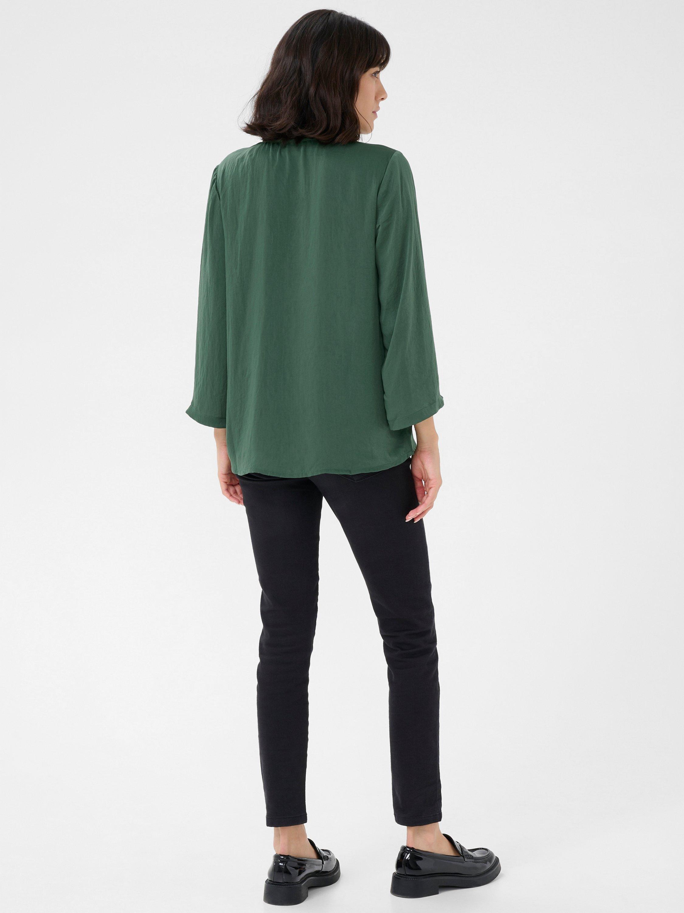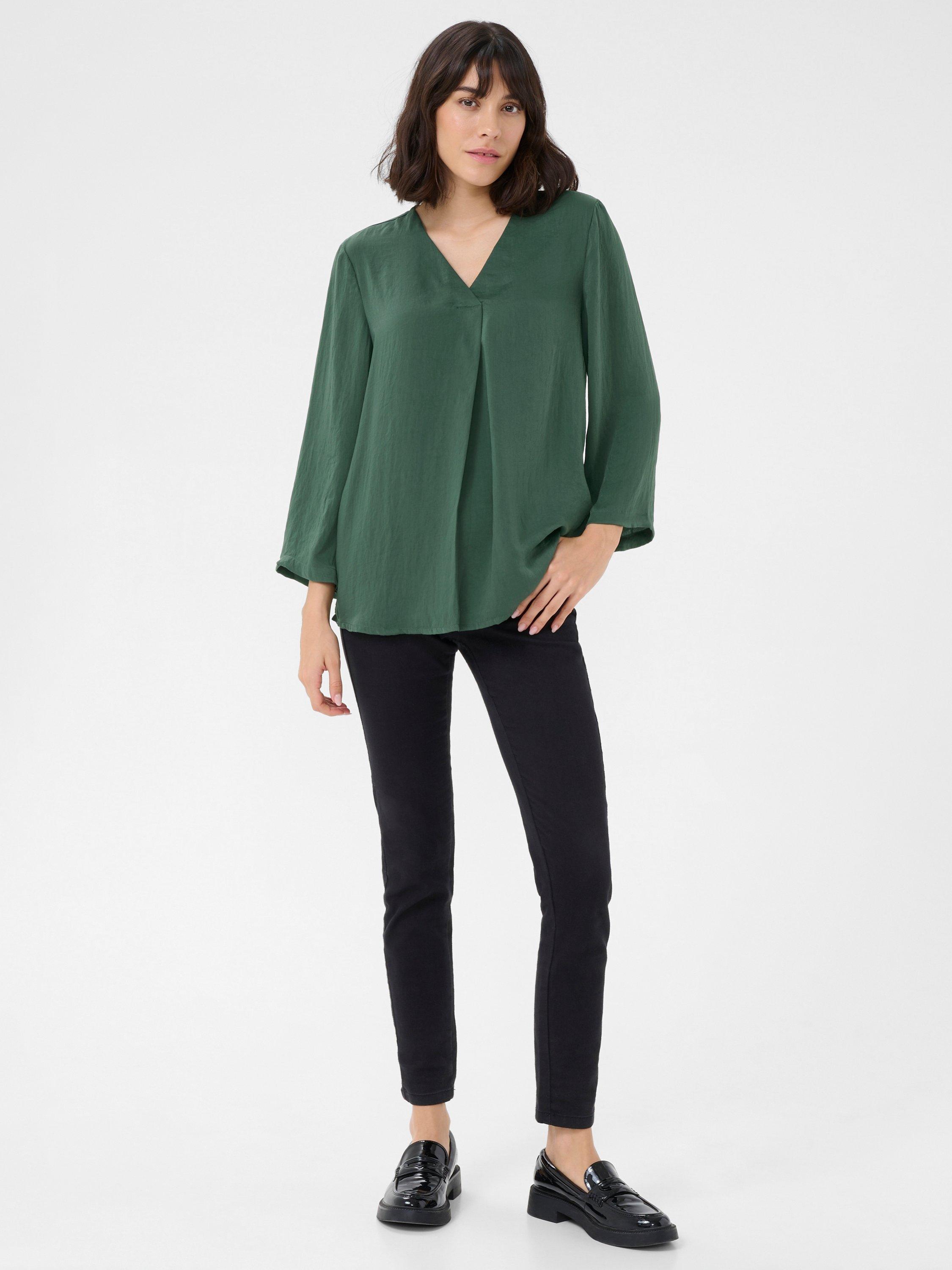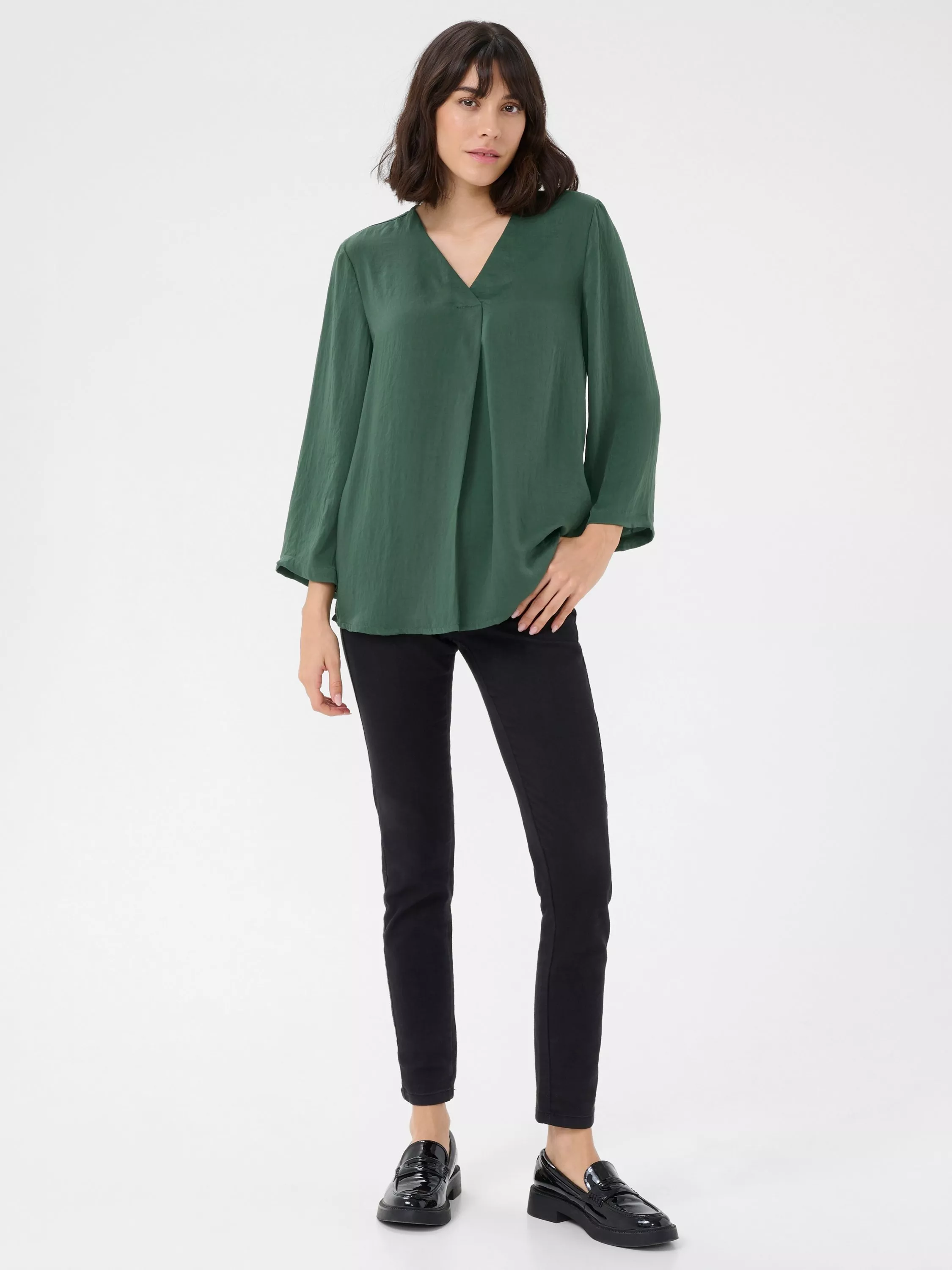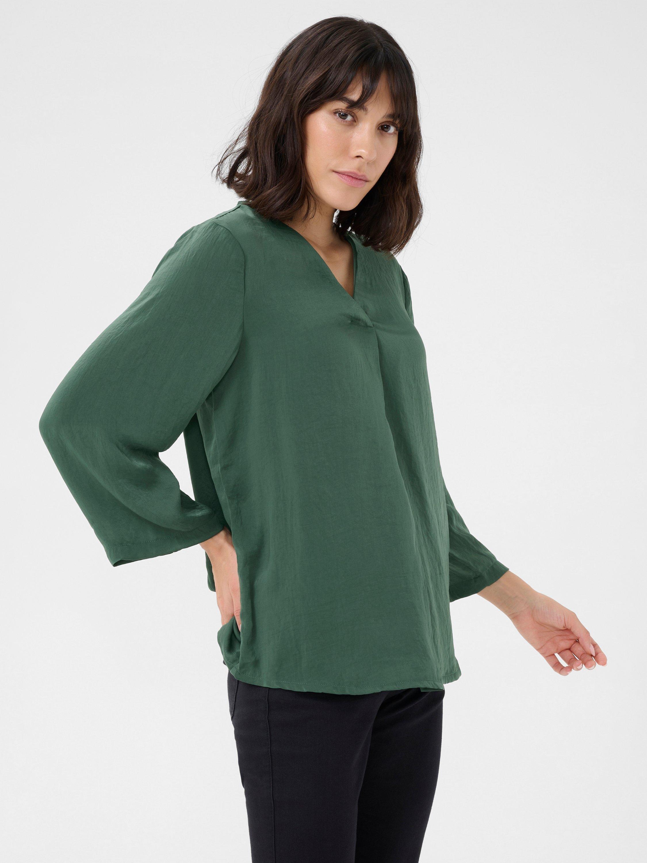 The ariel blouse can be styled to any occasion, and will look great with both jeans, and a skirt. It has a V-neck with a pleat at the bottom, and it has a regular fit. The sleeves are 3/4 length with a wide fit, and the blouse is made in a soft sateen fabric.
