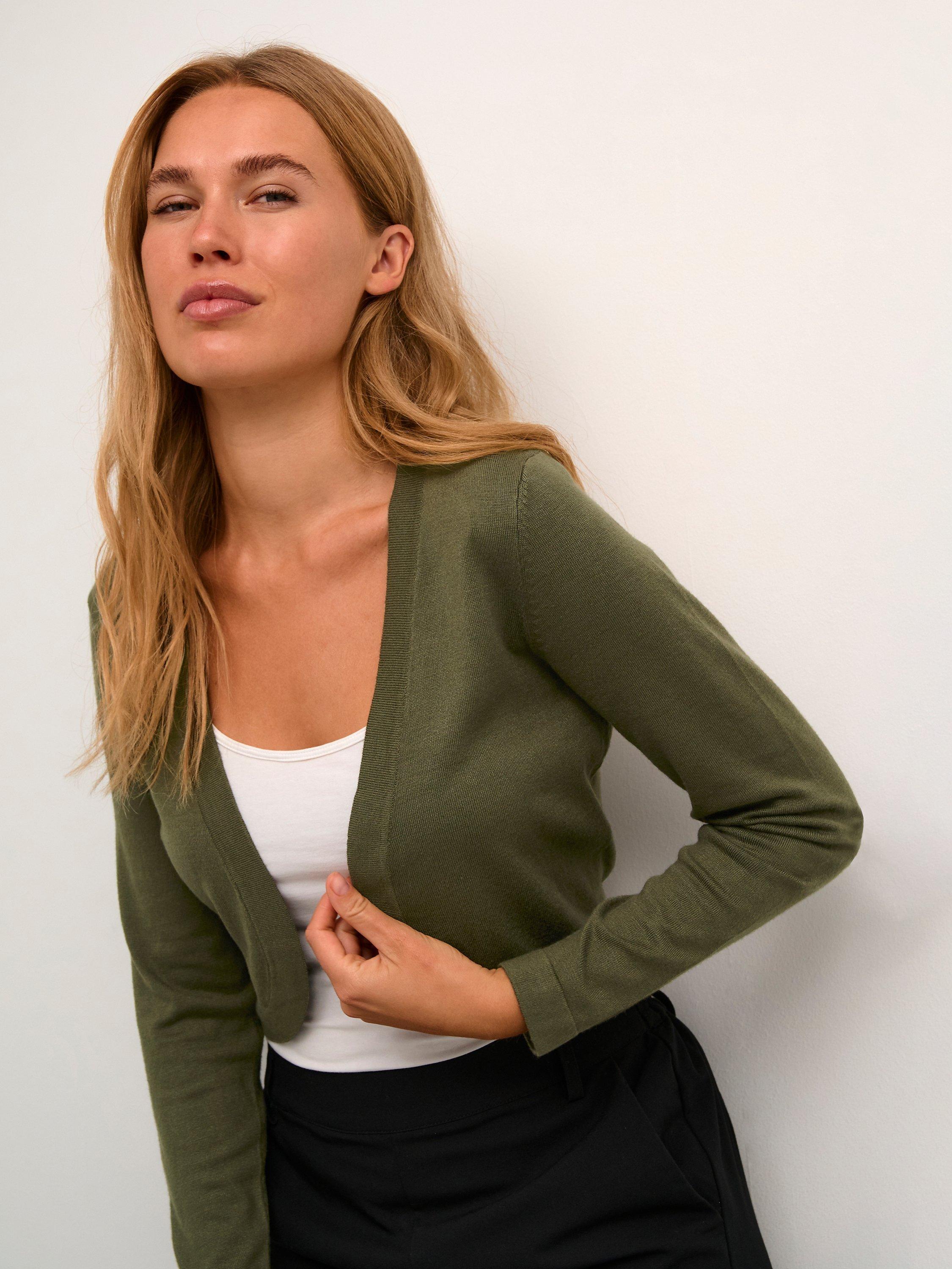 A handy layering piece for when the temperature cools, this lightweight cardigan from KAFFE is made with smooth, blended fabric for light and comfortable wear.