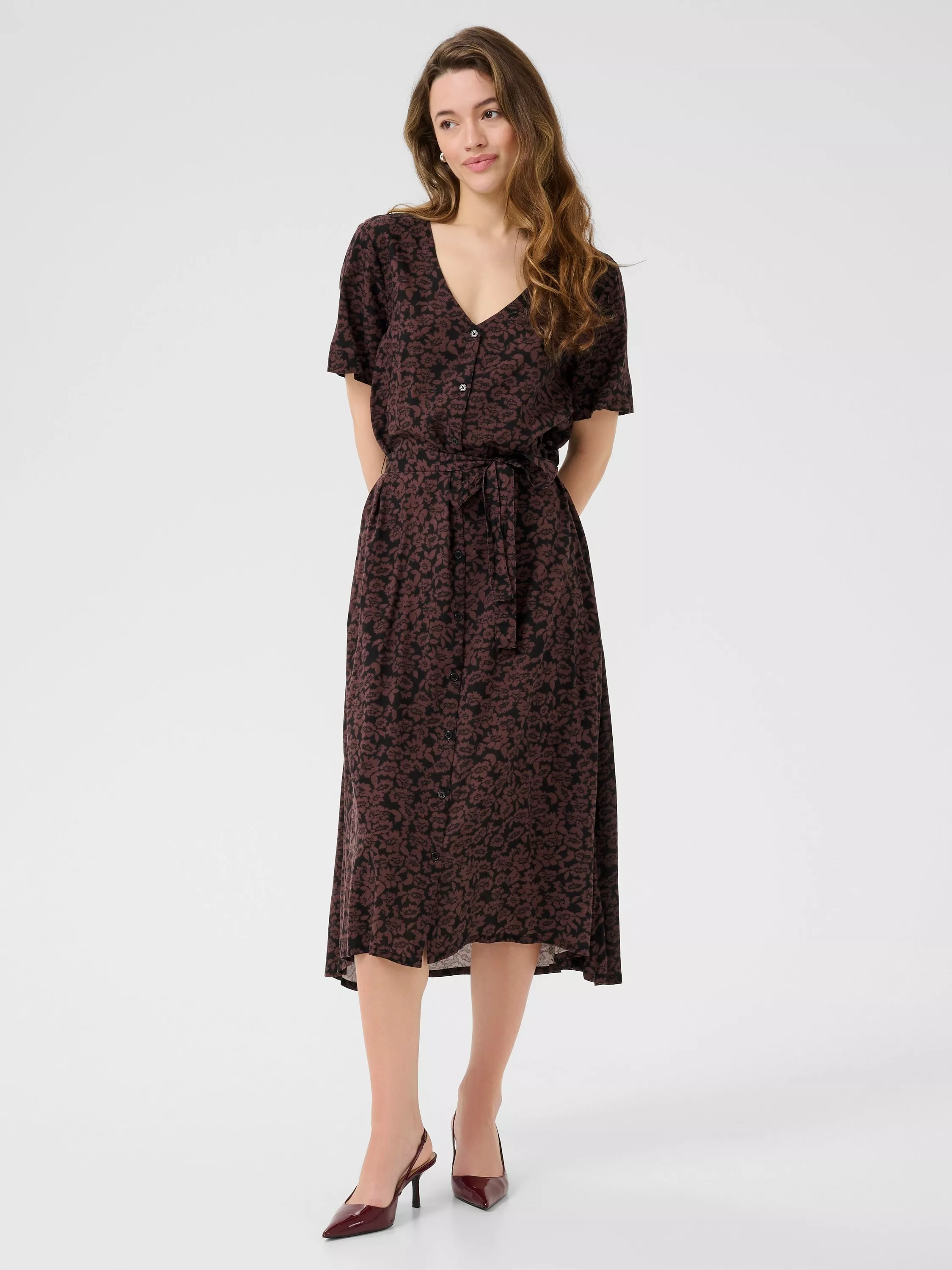 KAFFE reimagines the midi fit-and-flare with expressive florals and a thoughtfully crafted silhouette. Effortless to wear, it brings intrigue to everyday dressing.