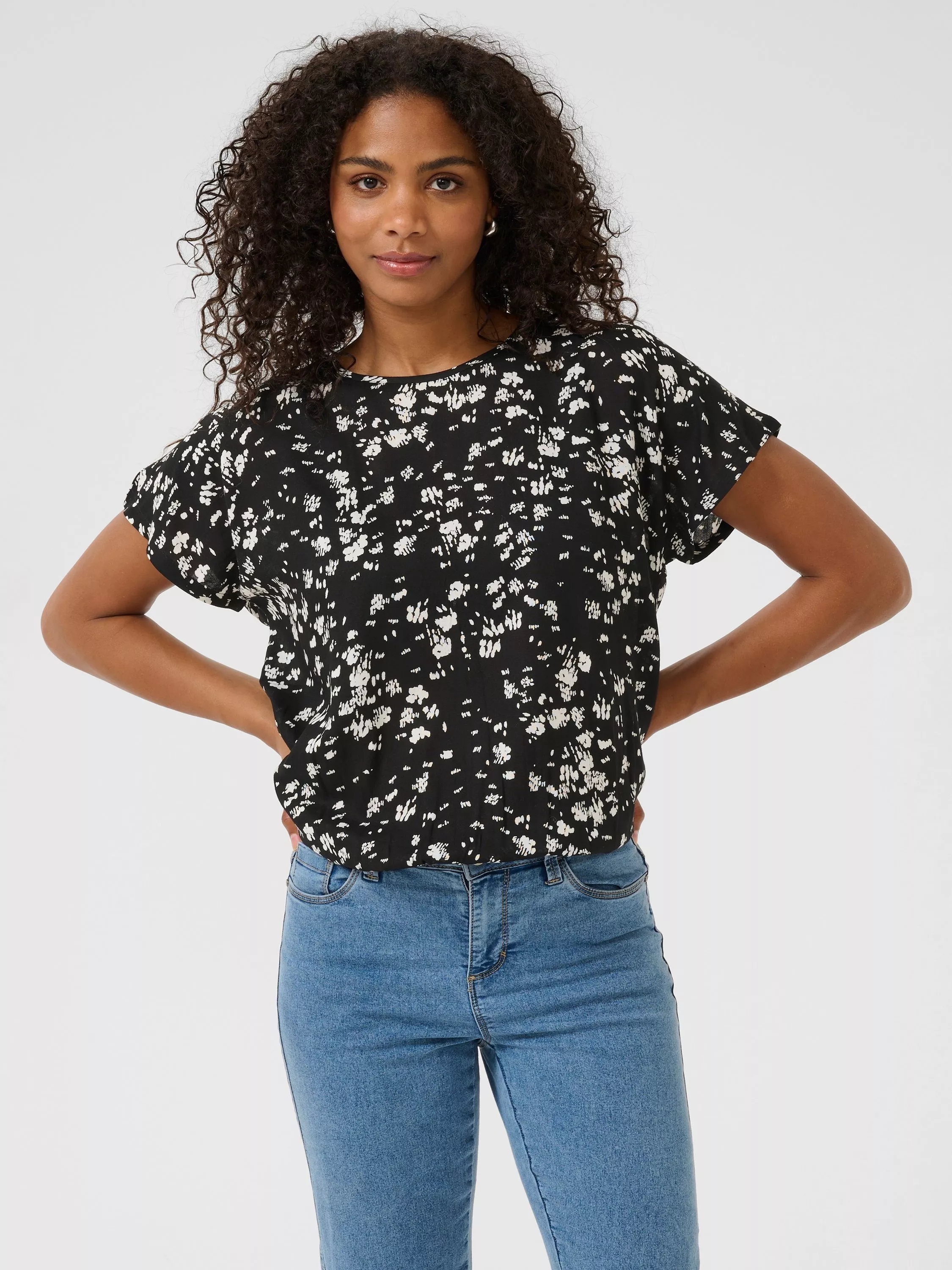 KAFFEBeathe Floral Short Sleeve Top, Black/White