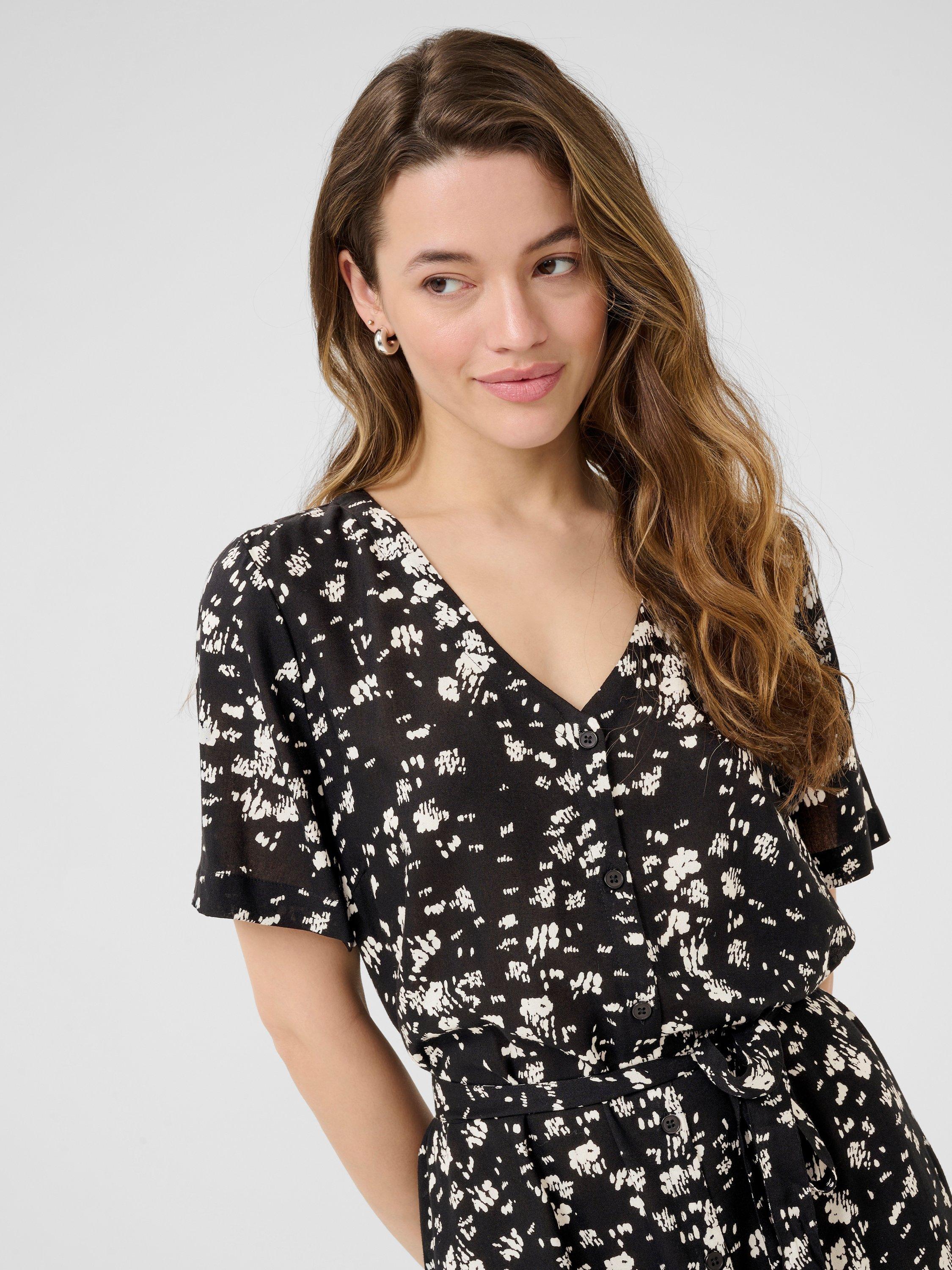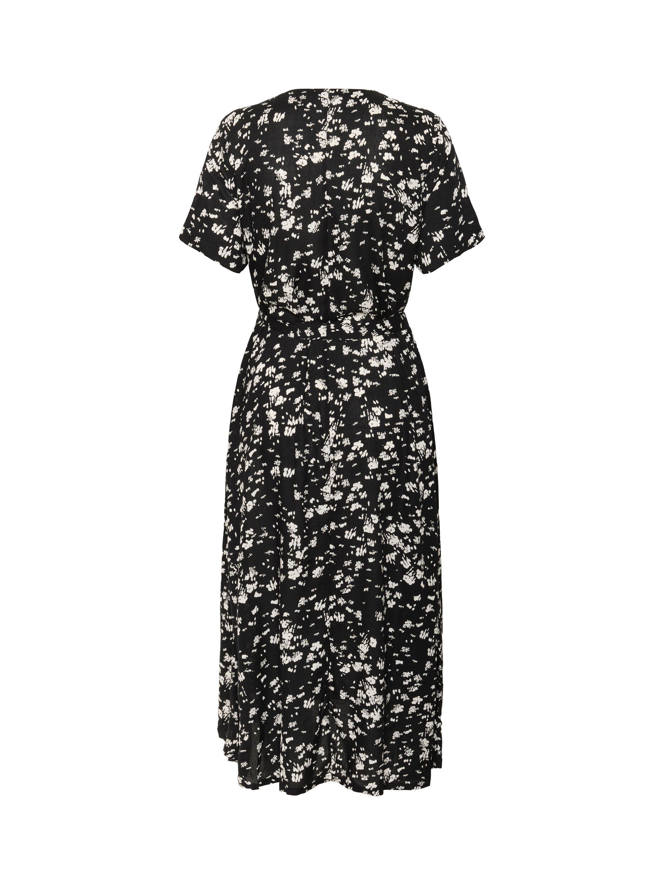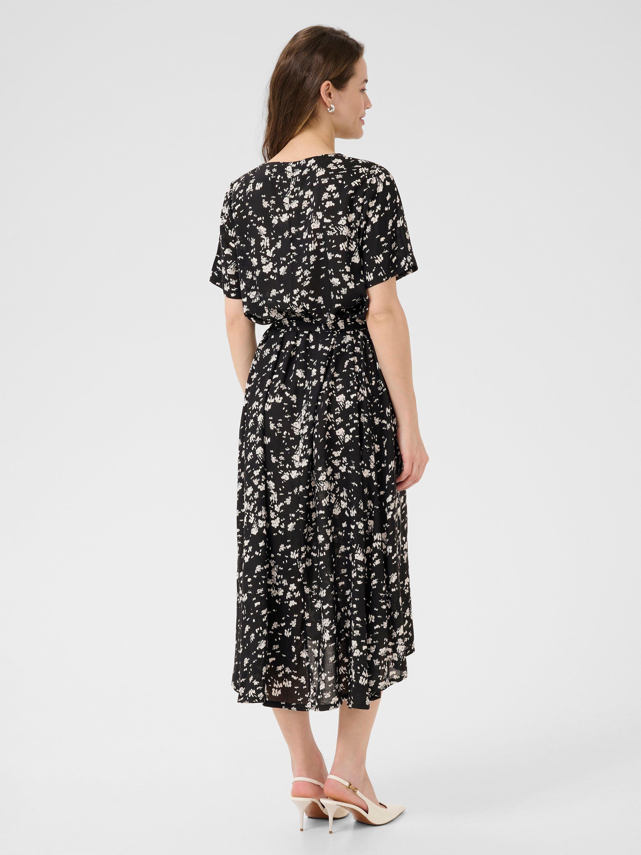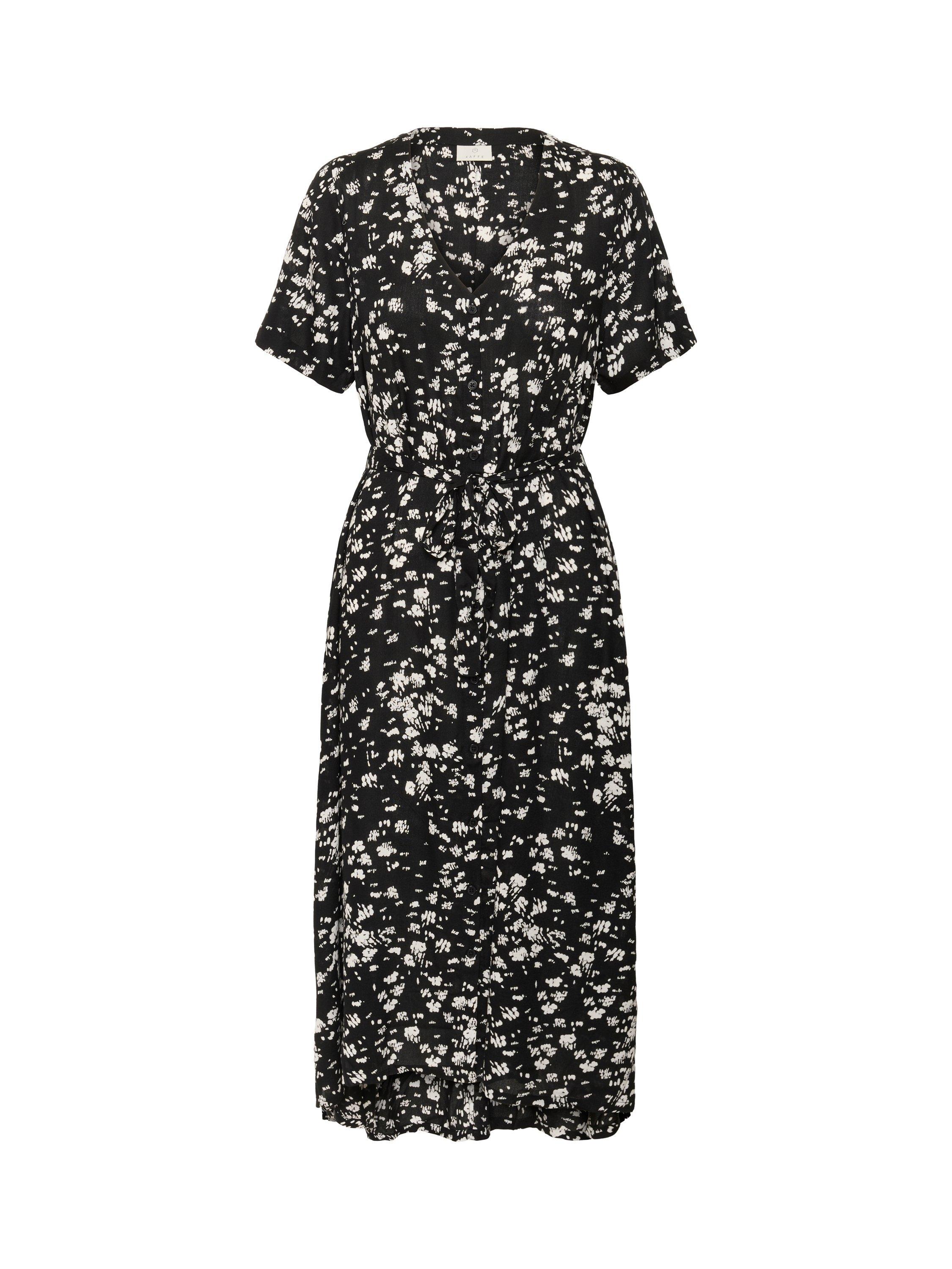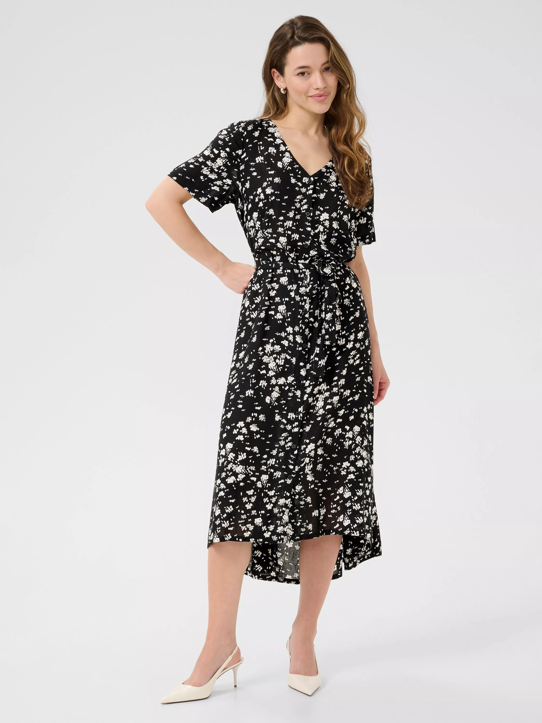 Discover KAFFE’s midi dress, where fluid viscose meets a floral print. An A-line silhouette and V-neck create an effortlessly modern look that adapts to your individuality, seamlessly blending charm with function for daytime occasions.