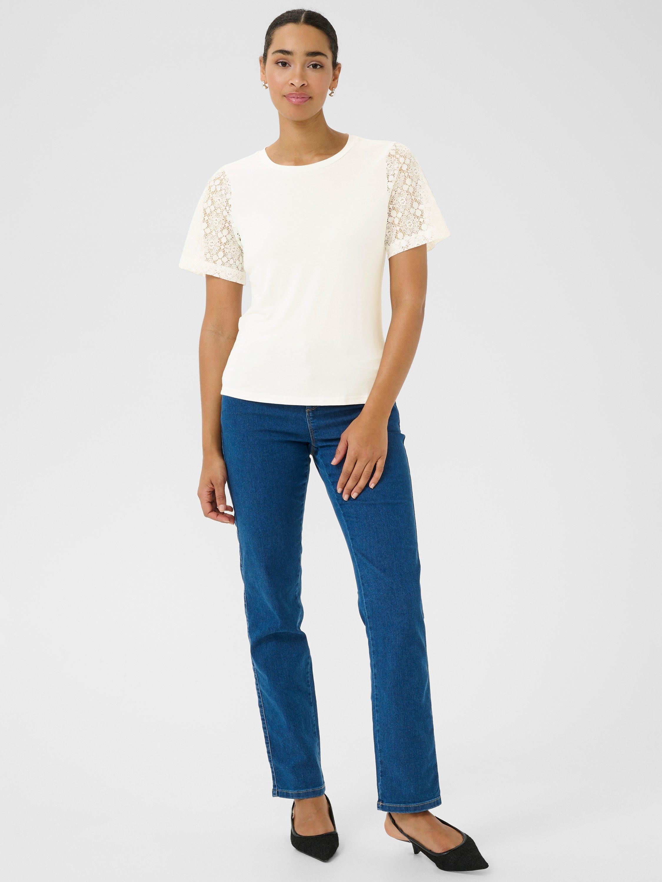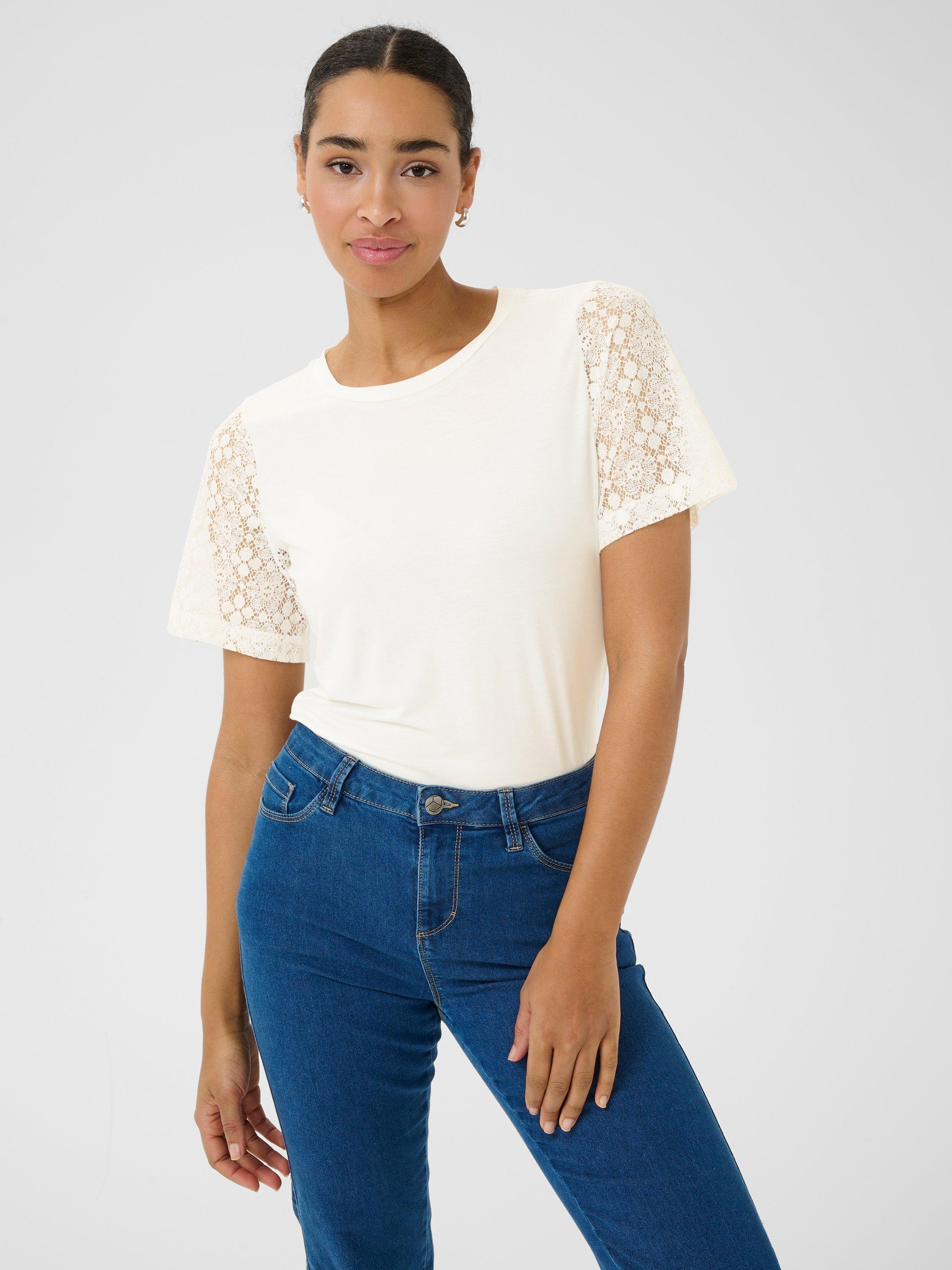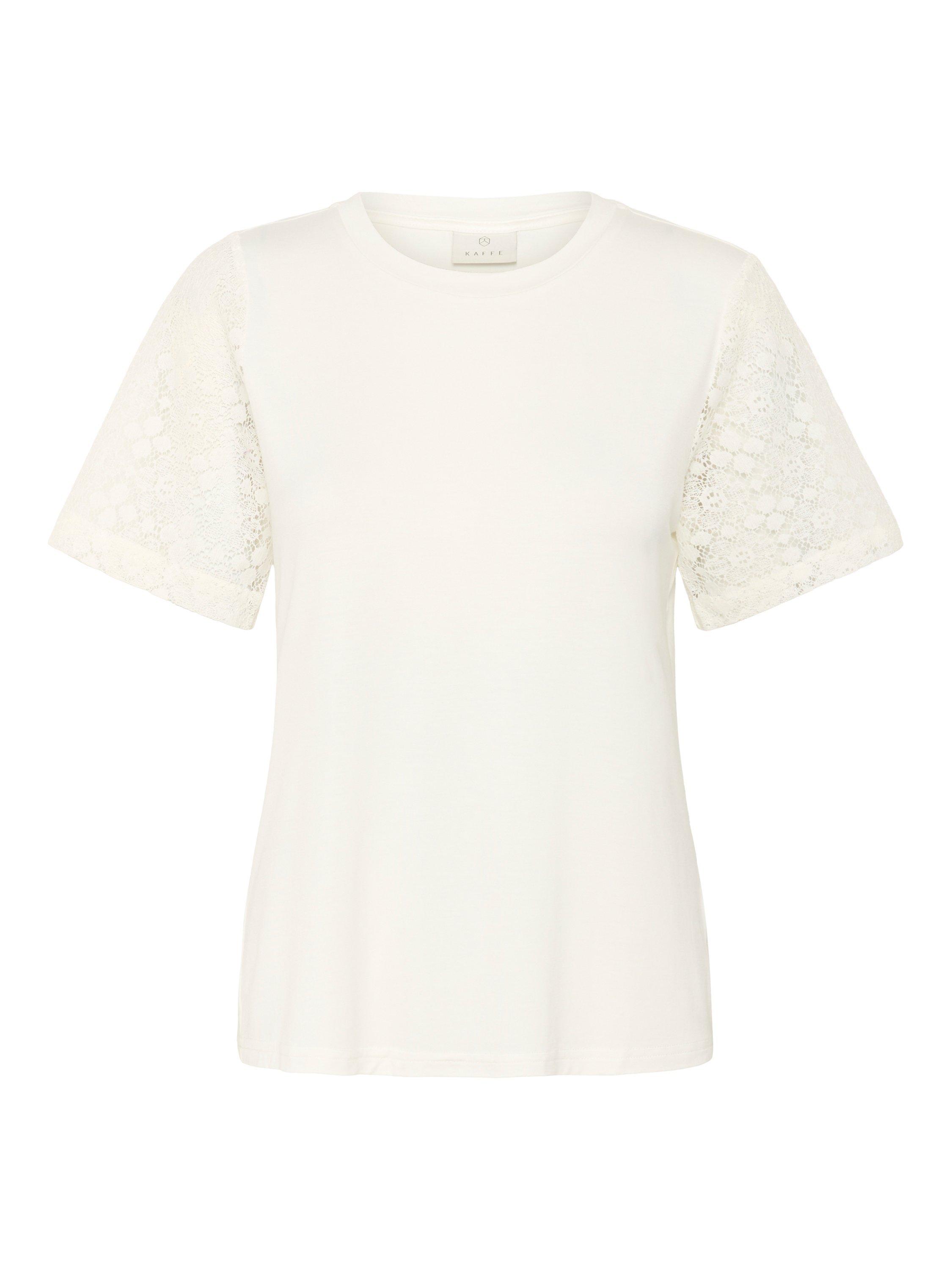 A solo piece or layering staple, this t-shirt by KAFFE is made from a soft viscose blend with a classic crew neck and short lacy sleeves.