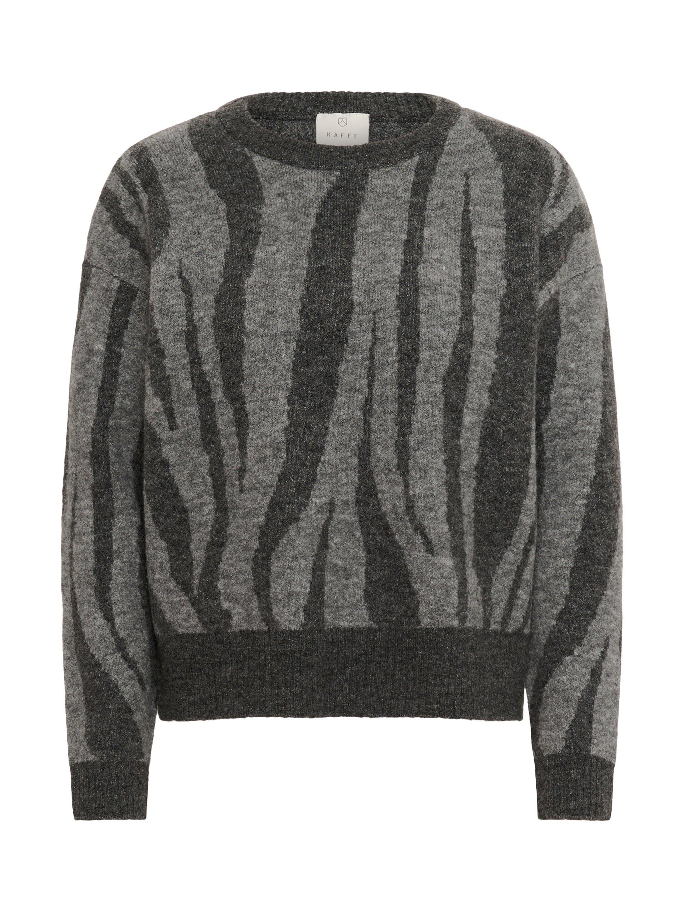 With a crew neckline for simple style and long sleeves, this mid-weight animal knit jumper by KAFFE is blended with wool for cosy wear.