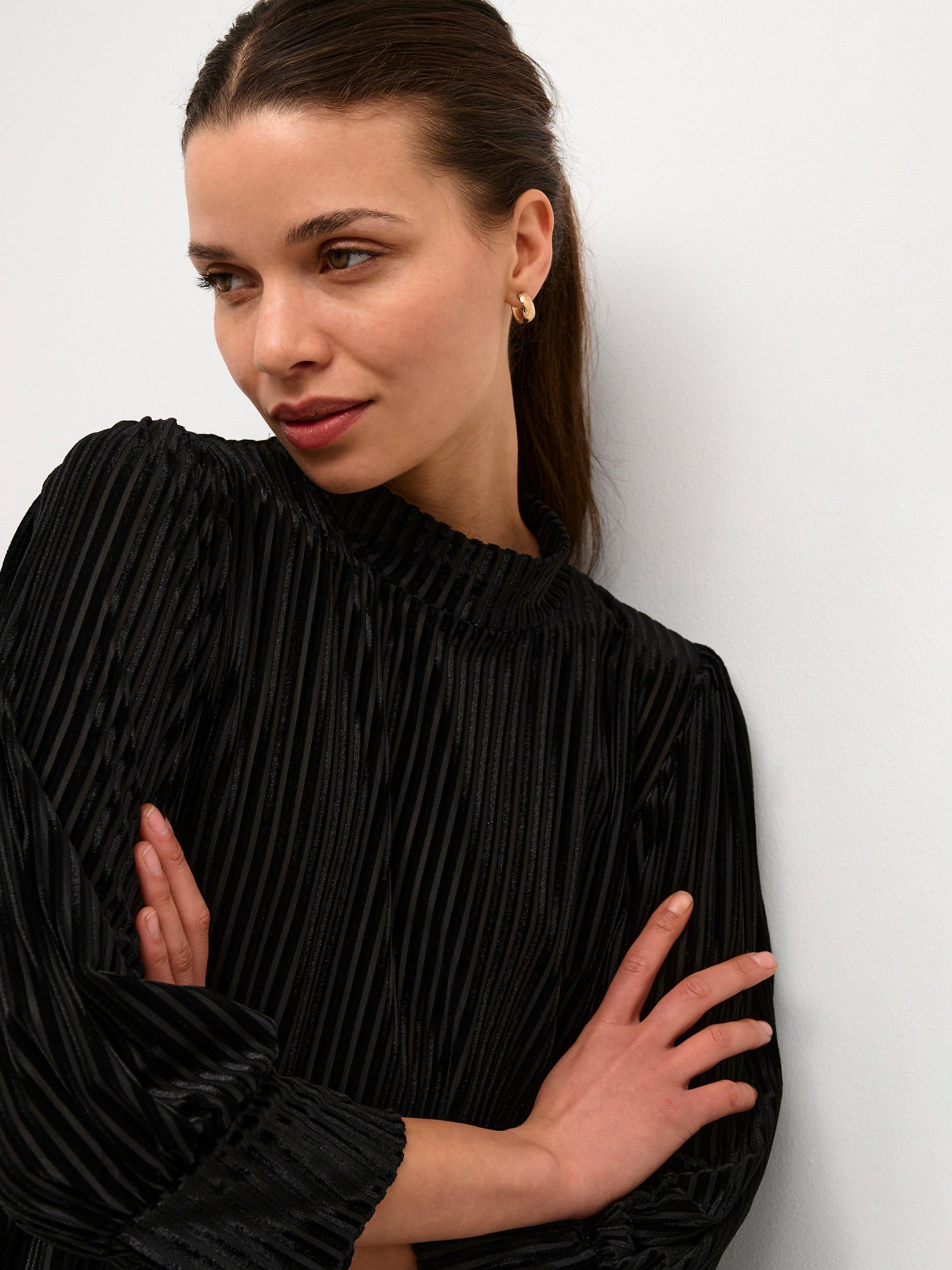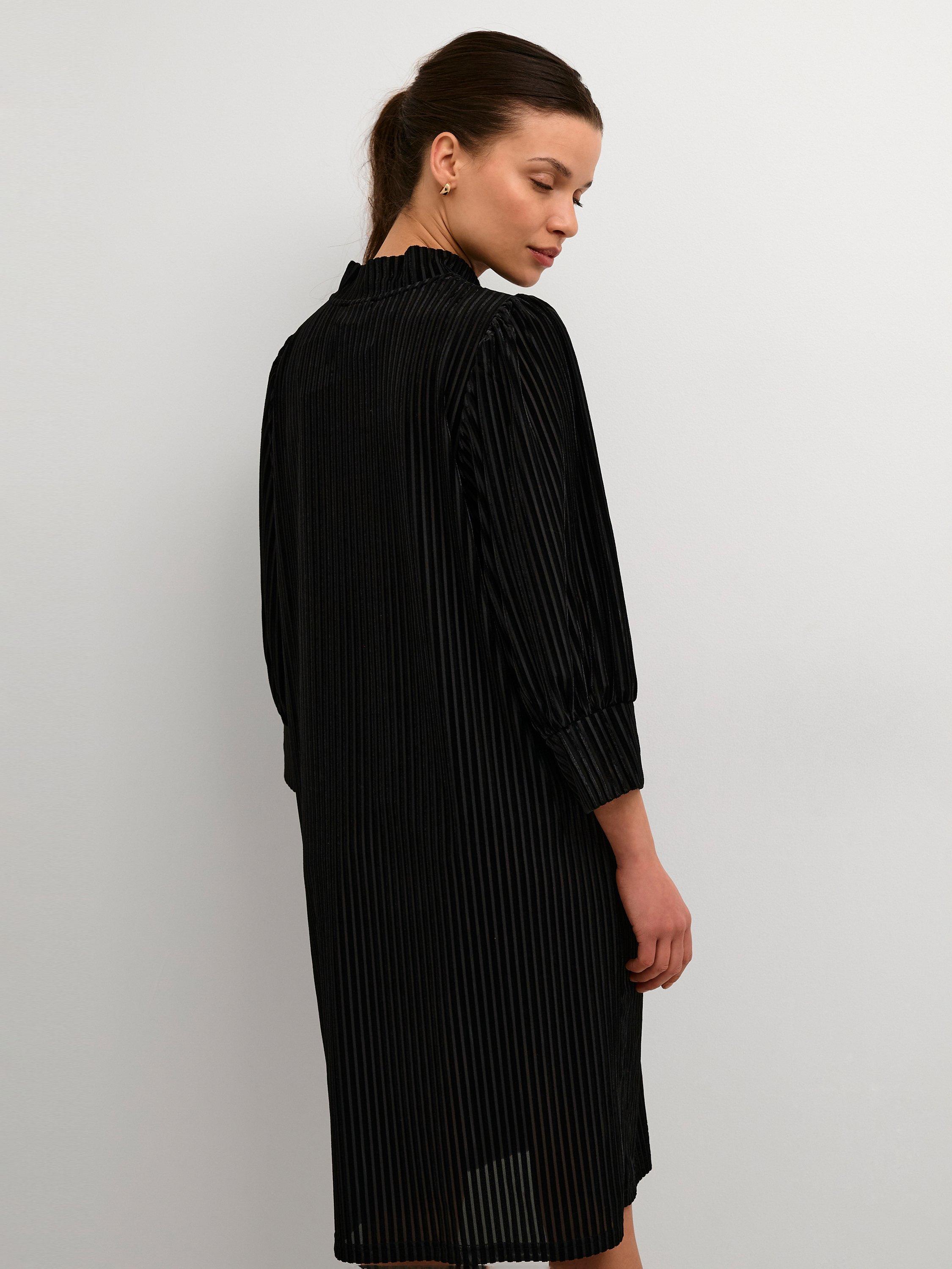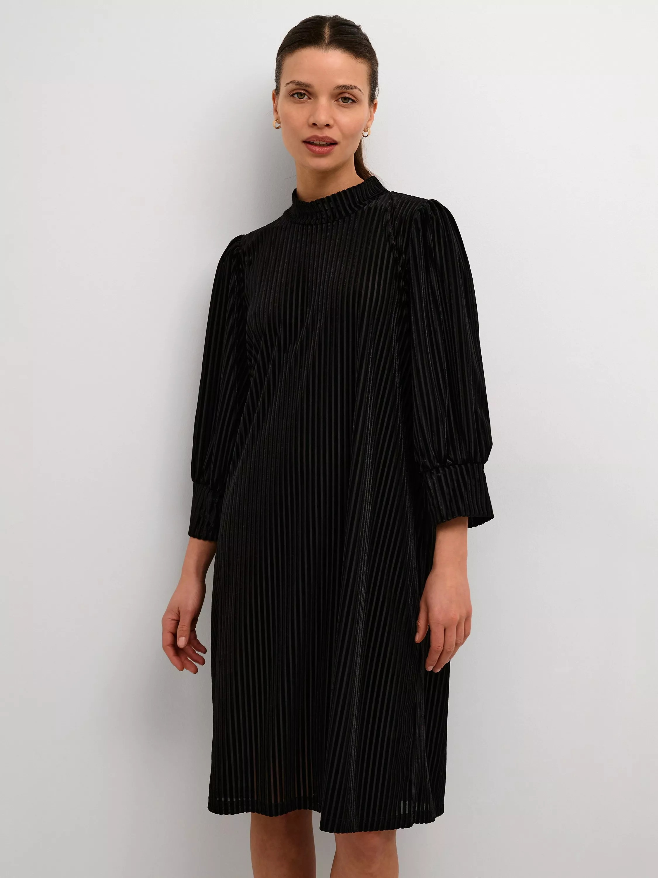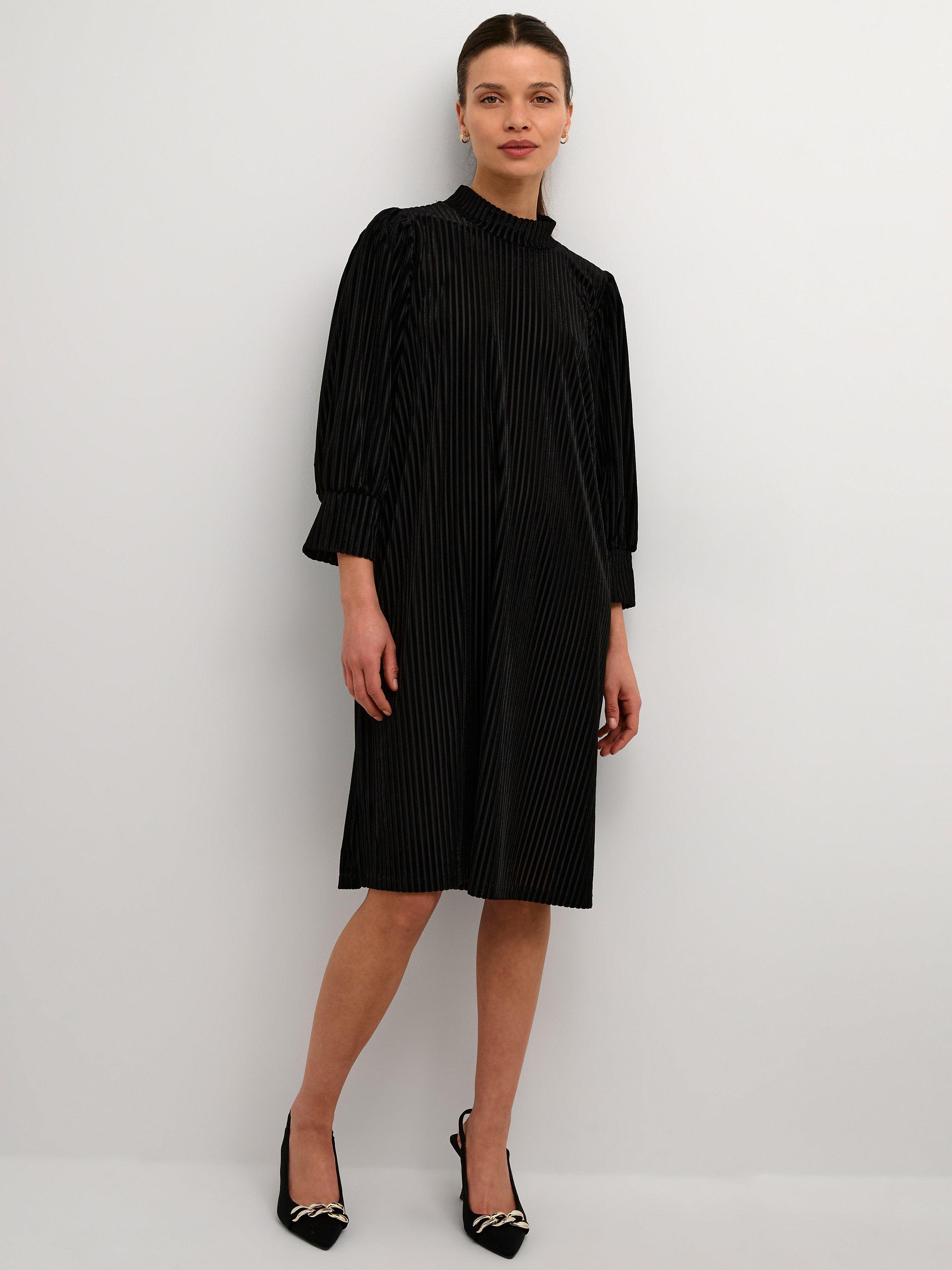 Falling into decidedly delicate pleats, this knee length dress from KAFFE comes in a fabric that's built to last. Spotlighting a high neckline and three quarter length sleeves, it transforms a simple design into a stand out.