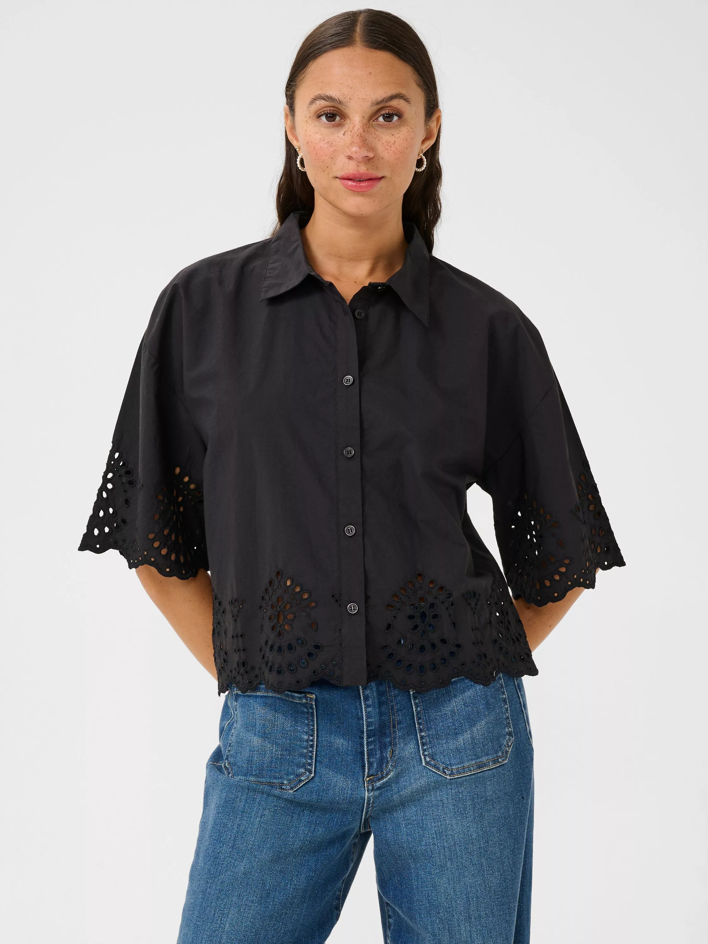 Refreshing your roster, this shirt from KAFFE allows for endless styling opportunities. Framed with a collar neckline and short sleeves, it's made from soft and breathable cotton and is an everyday wardrobe essential.