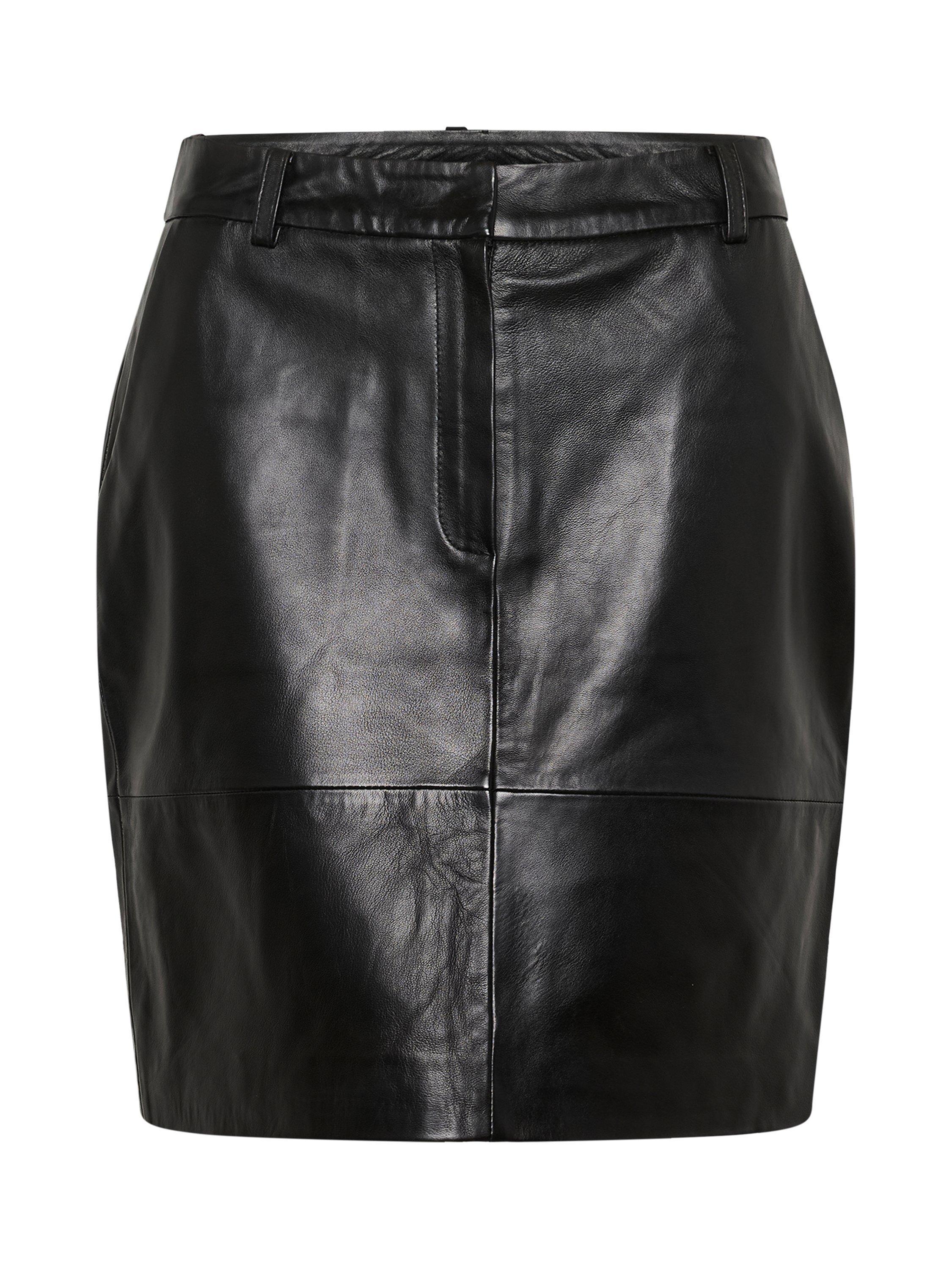 Elevate your wardrobe with the Carrie Leather Skirt, crafted from 100% Sheep Leather. It features a classic pencil silhouette, perfect for both formal and casual occasions.