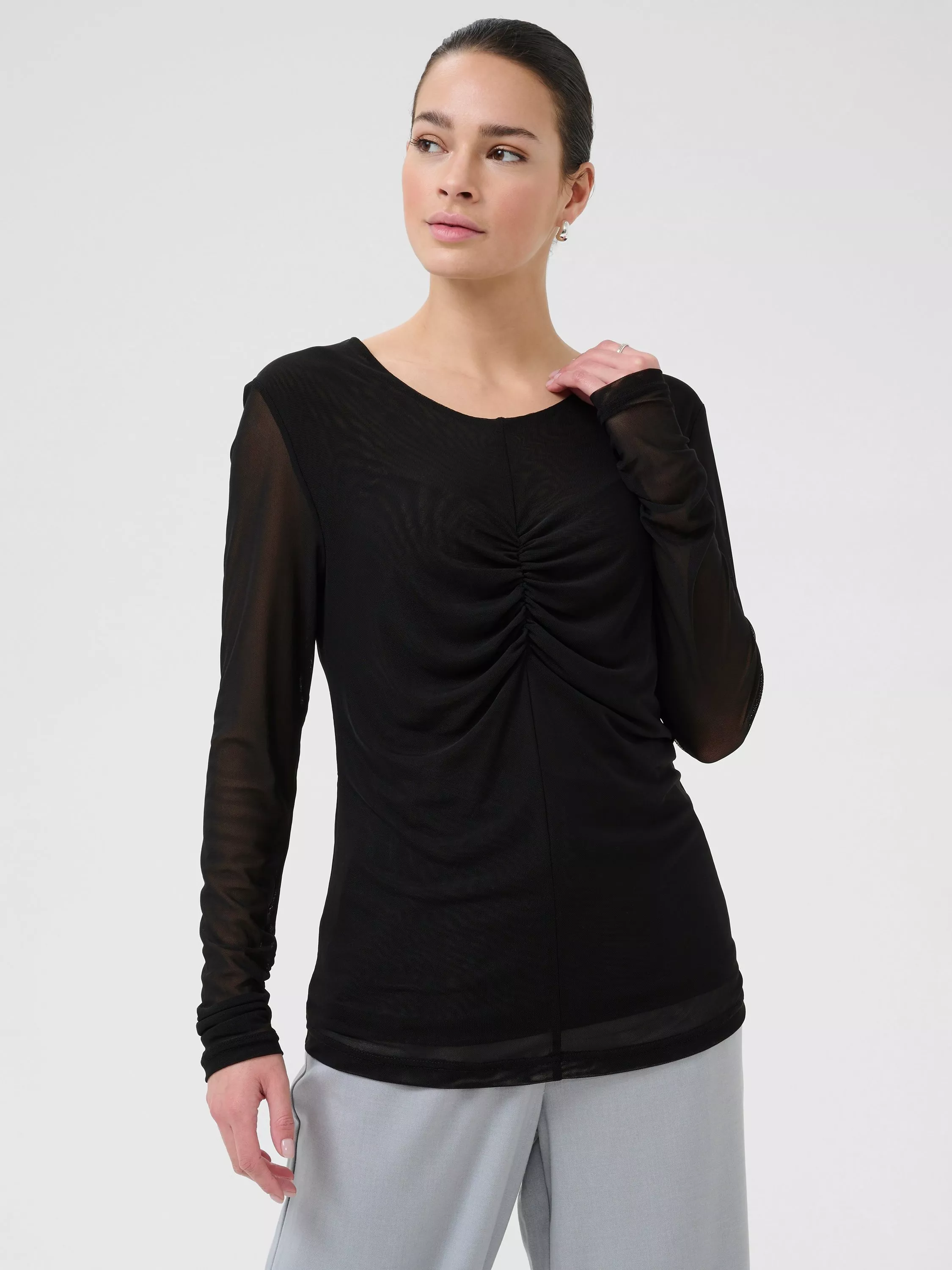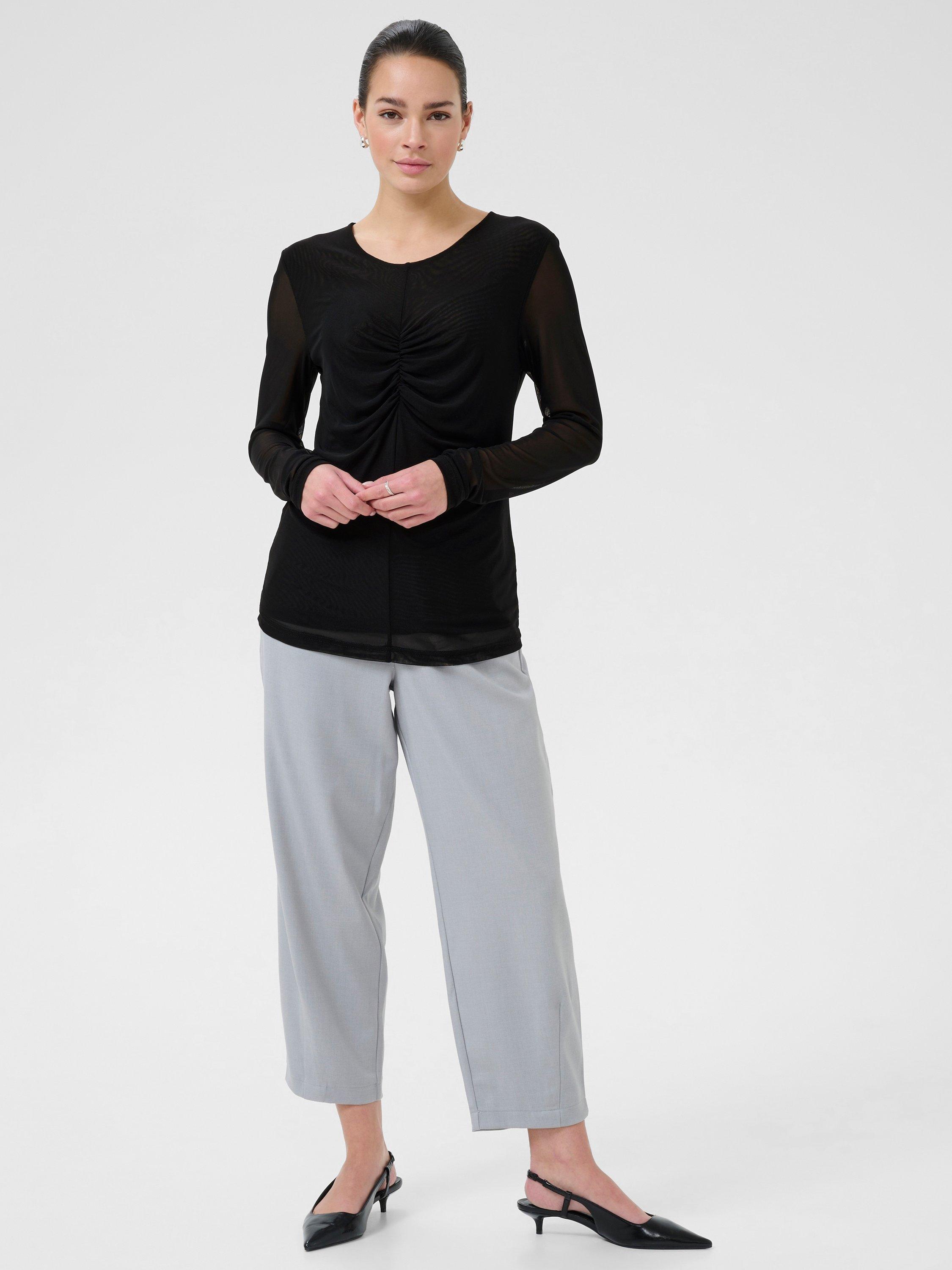KAFFE's long sleeve T-shirt, designed for comfort and easy layering all day. Its soft stretch and classic round neck make it a versatile staple.