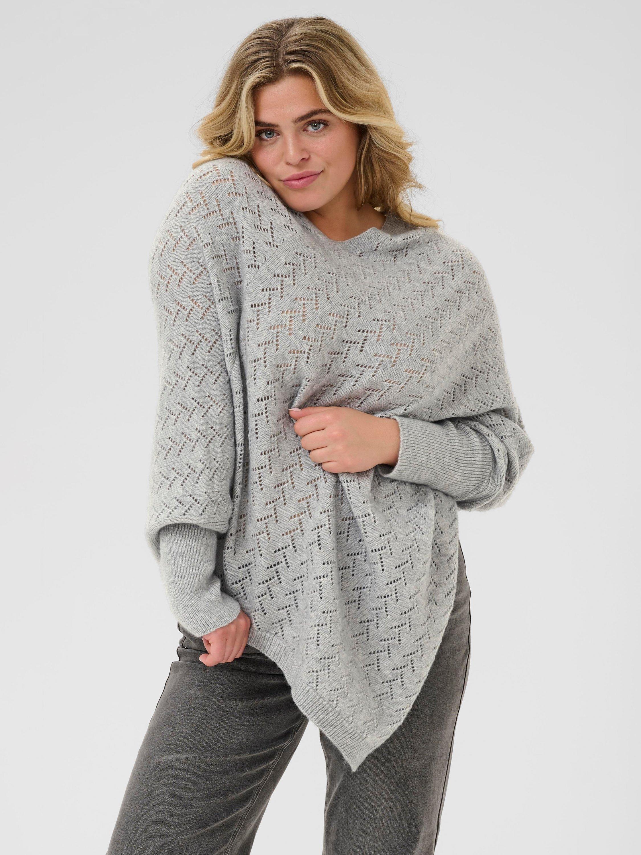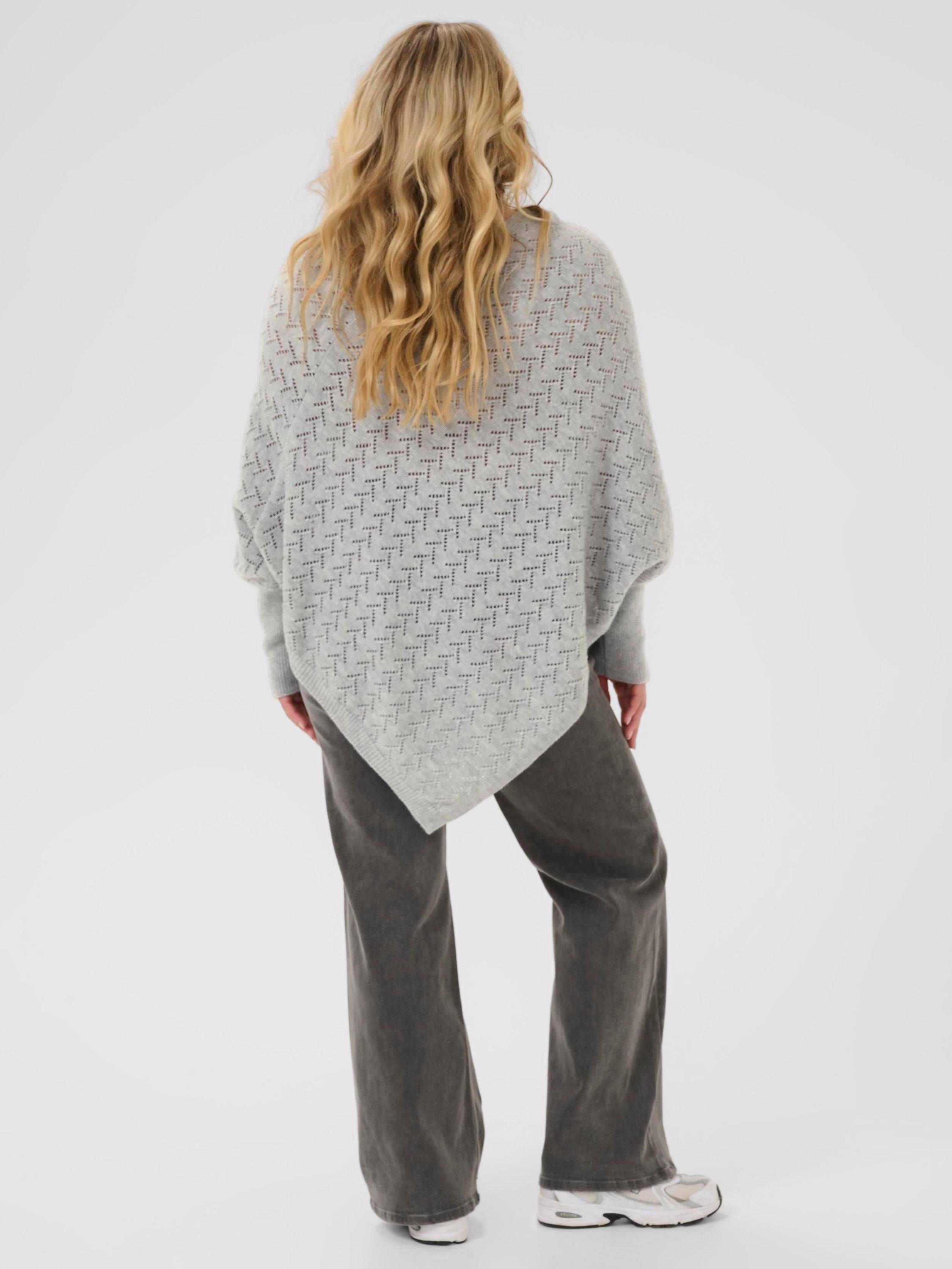 KAFFEColina V-Neck Poncho, Mid Grey