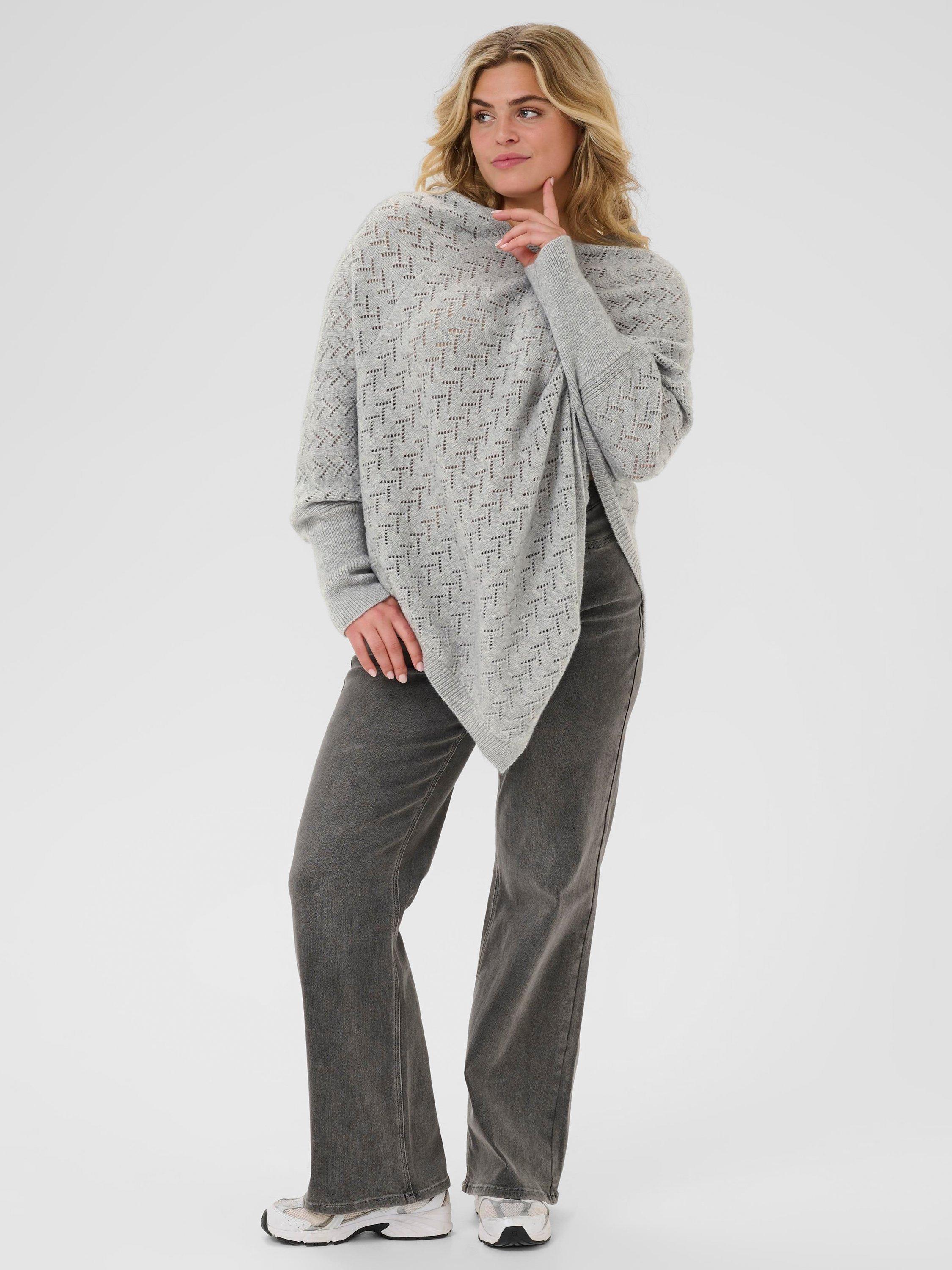 KAFFE's V-neck poncho jumper - designed for days that call for comfort and warmth. Its stylish silhouette layers easily, adding versatility and a spark of character to your everyday outfit while keeping you feeling cosy and confident.