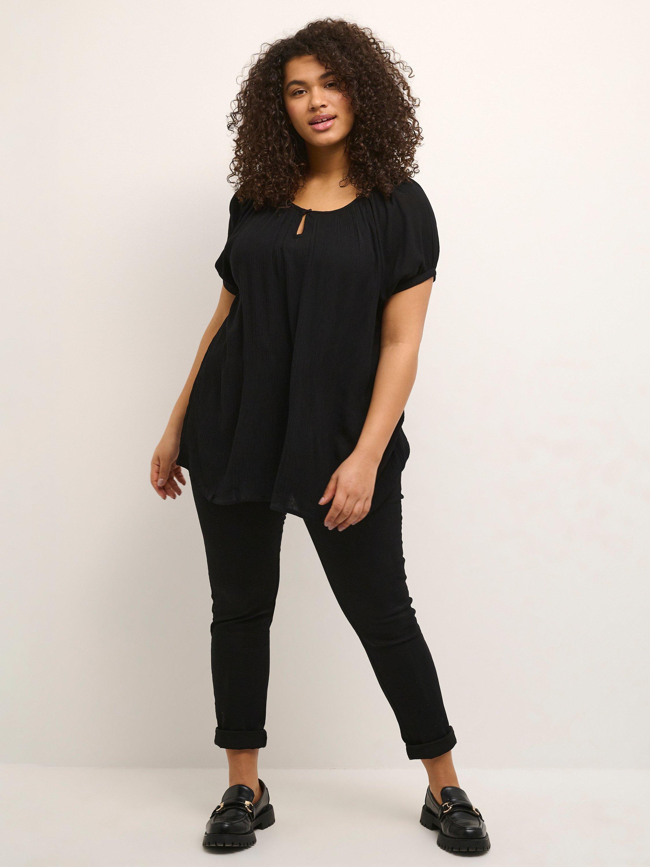 KAFFE CurveAmi Short Sleeve Top, Black Deep