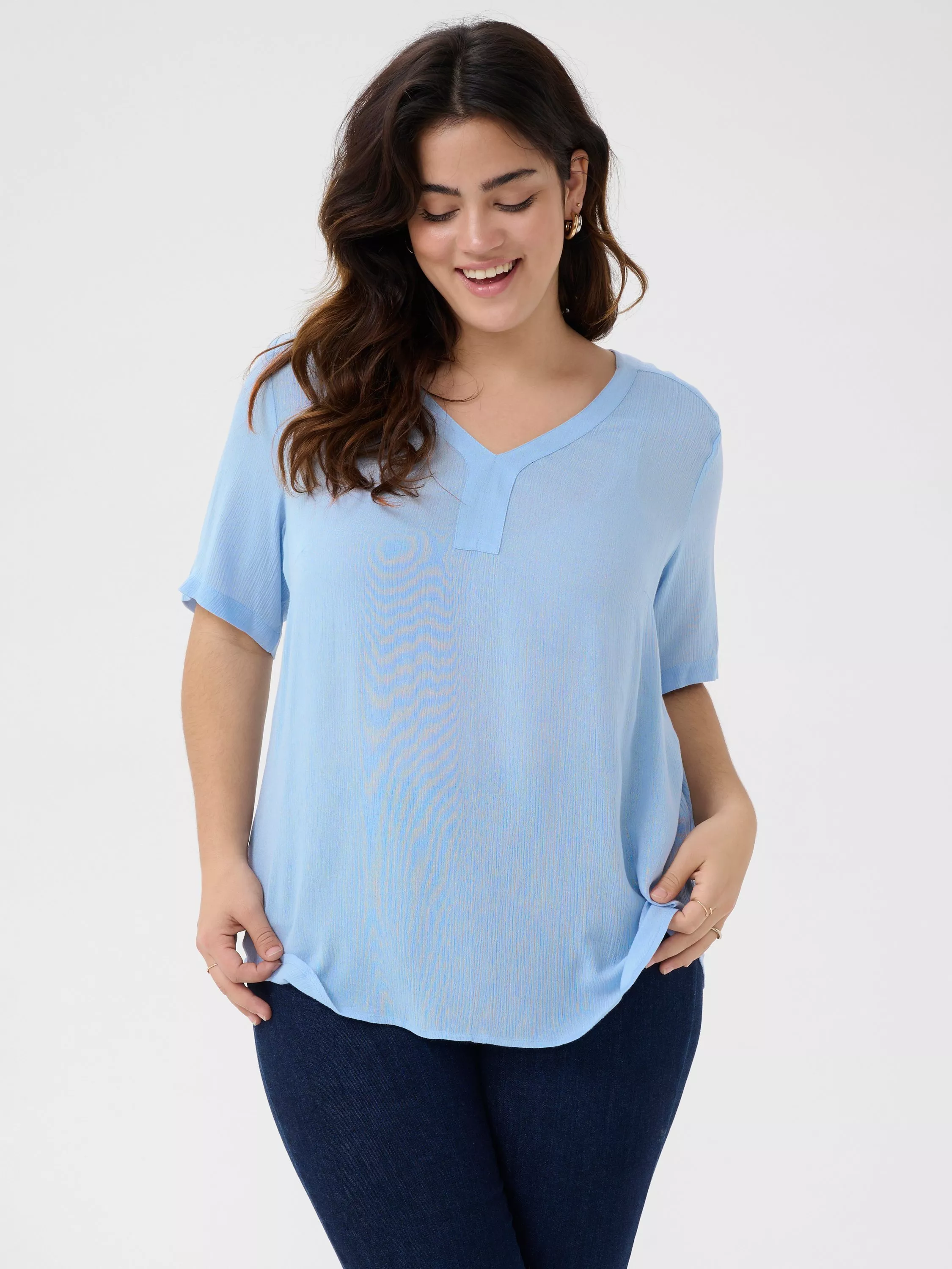 A simple staple, this t-shirt from KAFFE Curve is made from soft viscose with a v-neckline and short sleeves.