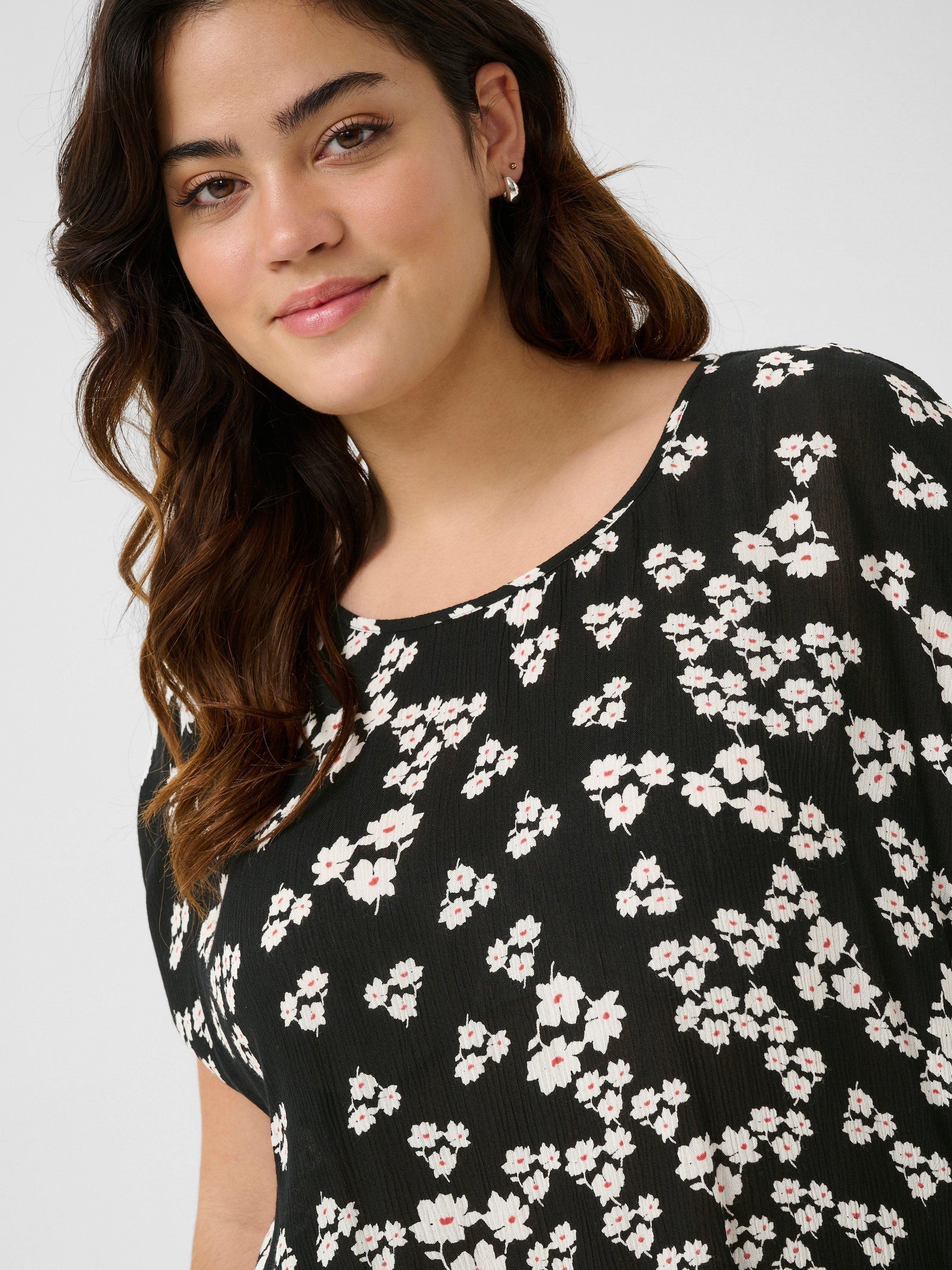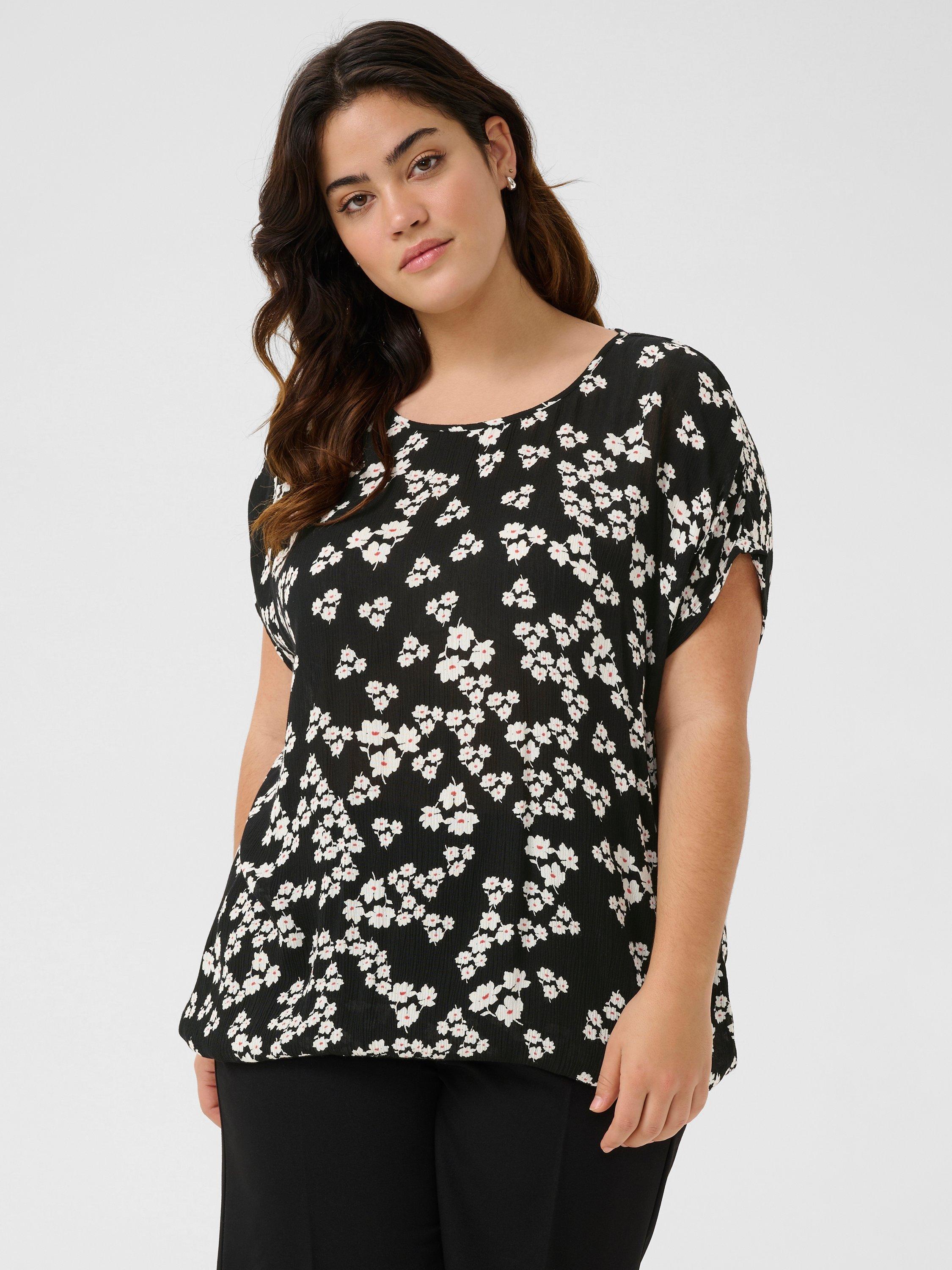 Adding a delicate floral touch to your wardrobe, this blouse from KAFFE Curve is made from soft viscose with a round neck and short sleeves. An everyday favourite.
