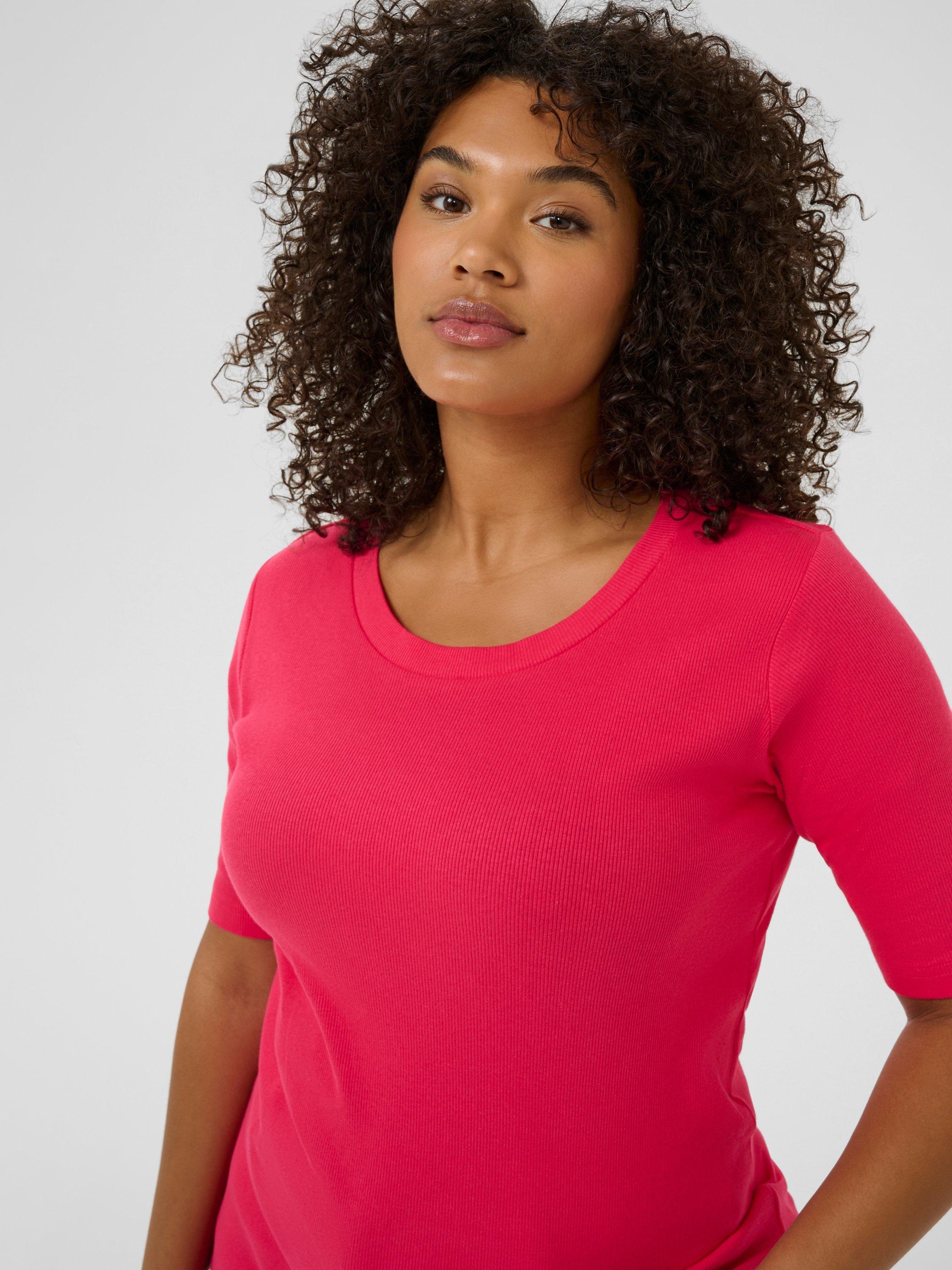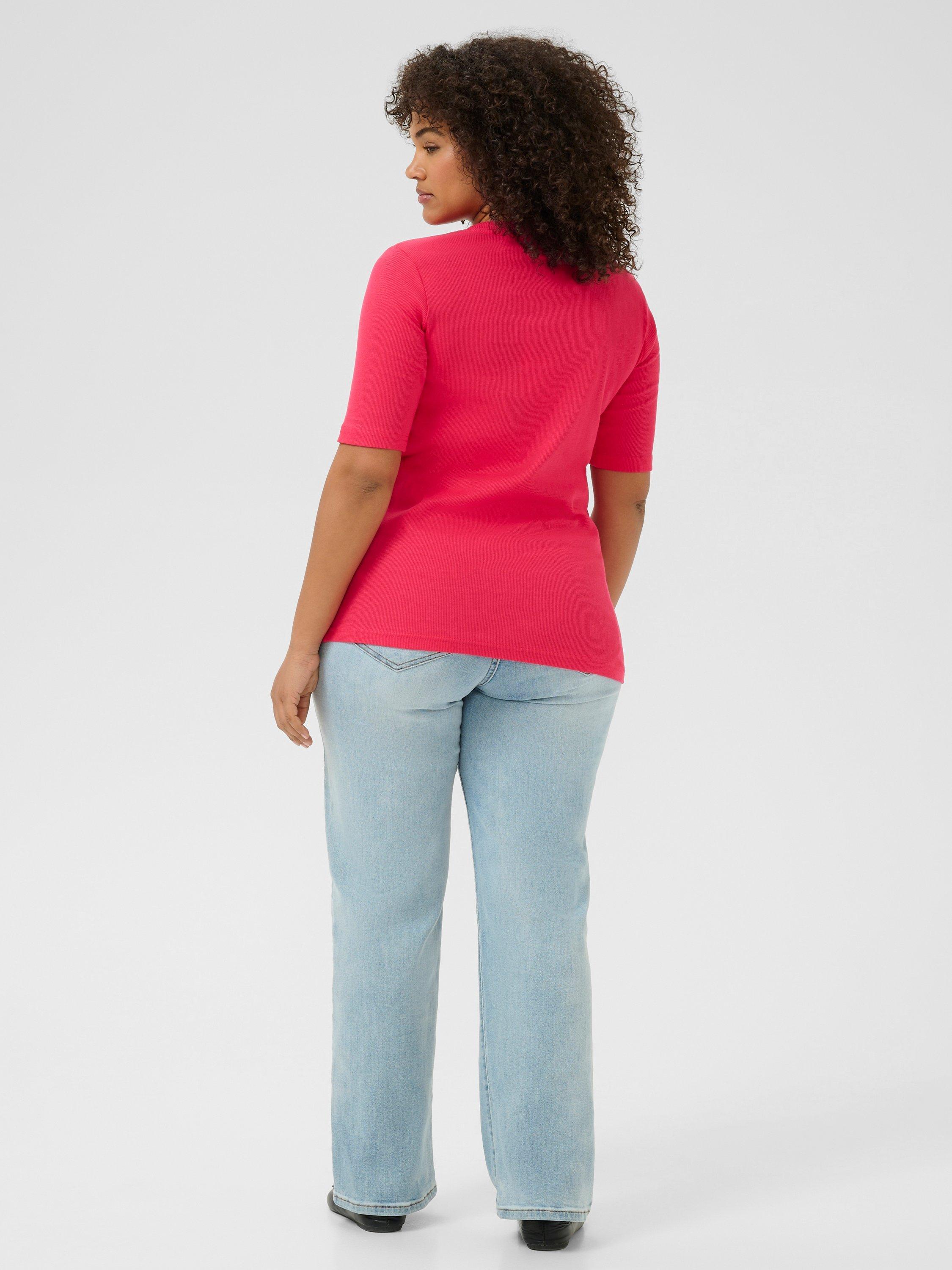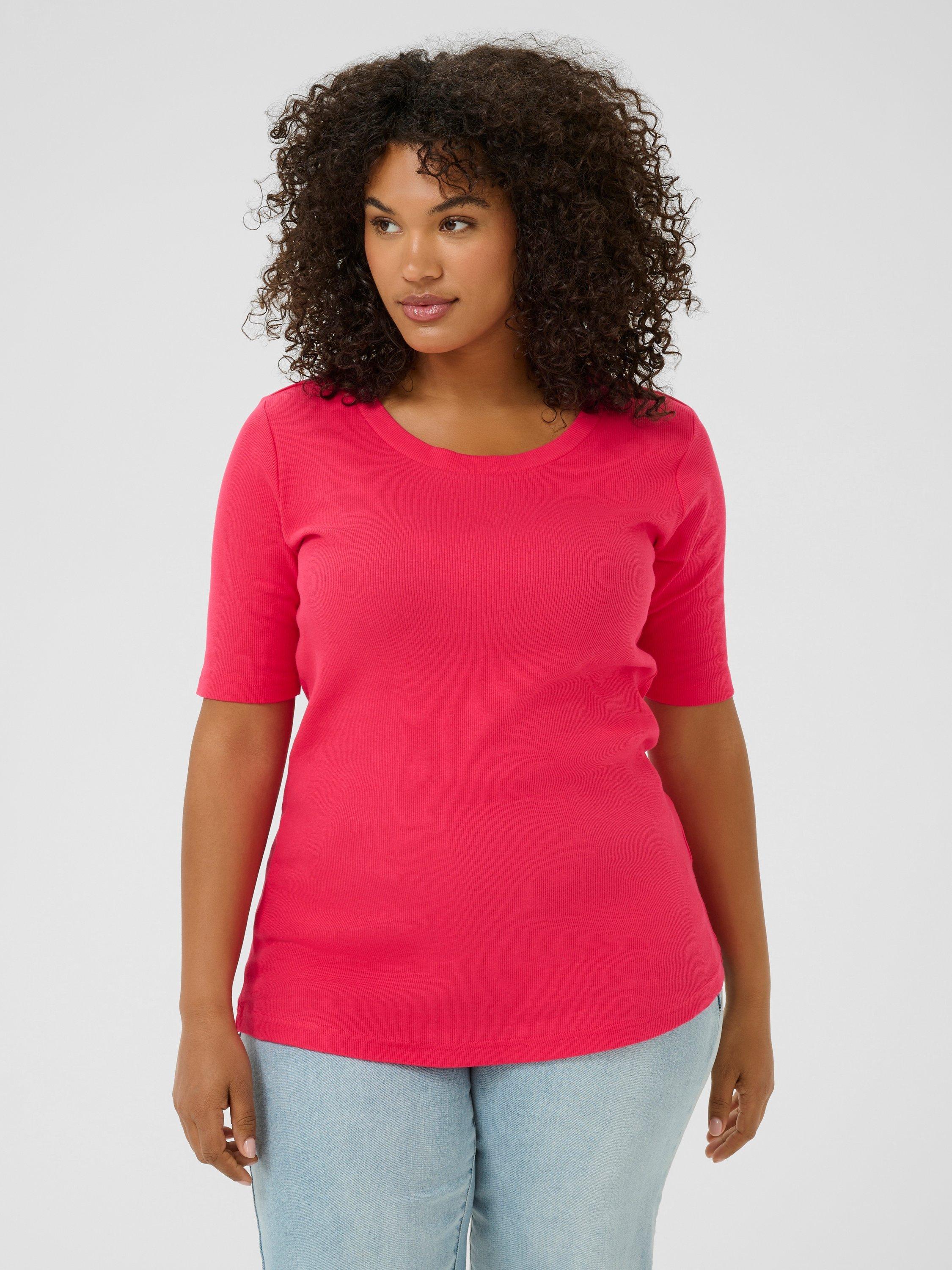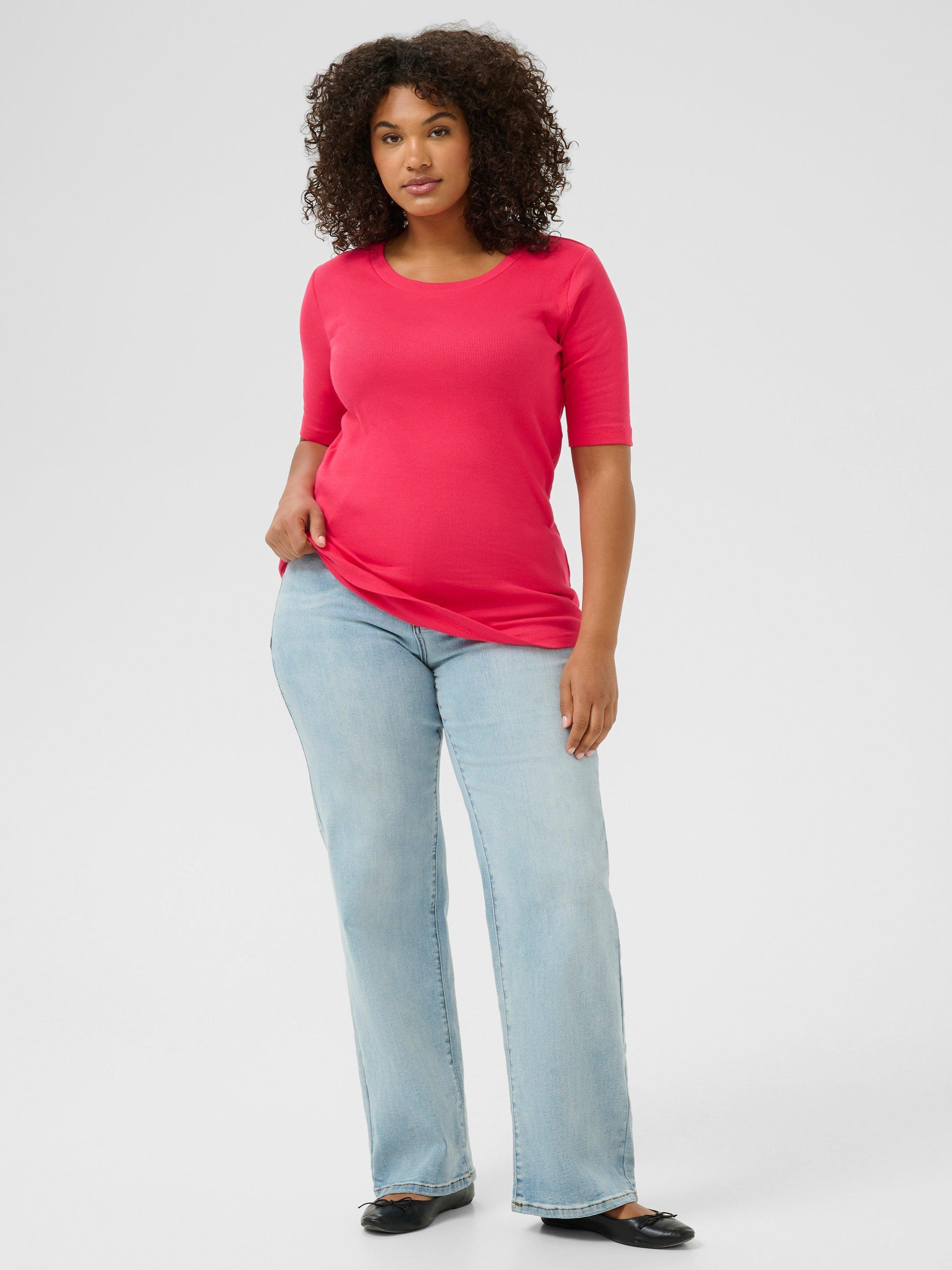 A solo piece or layering staple, this t-shirt by KAFFE Curve is made from a soft cotton blend and simply cut with a round neck and three-quarter length sleeves.