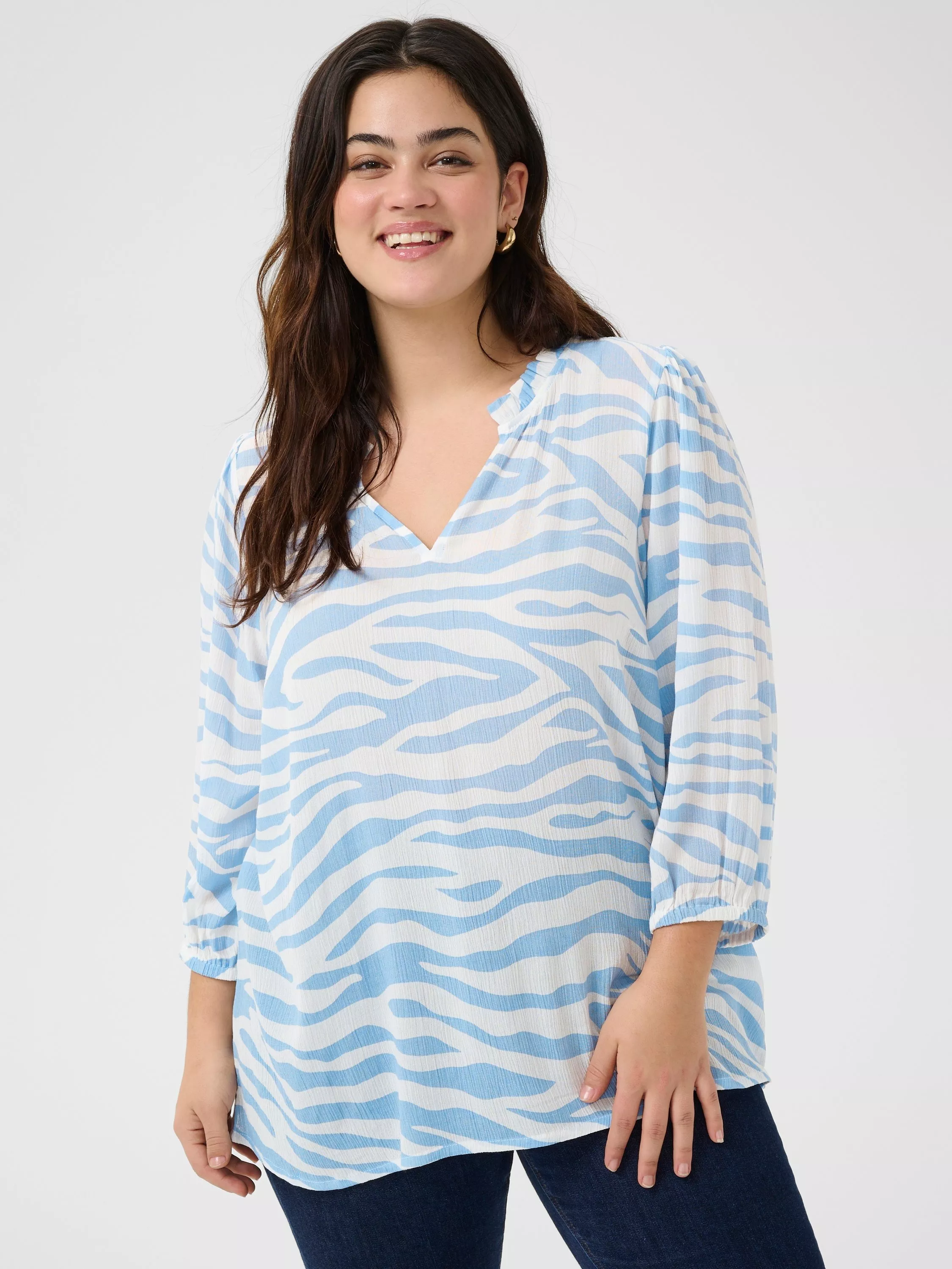 An essential addition to your wardrobe, this blouse from KAFFE Curve is emblazoned with the season's most-loved zebra print. Framed with a classic v-neckline and three-quarter length sleeves, it is made from soft viscose.