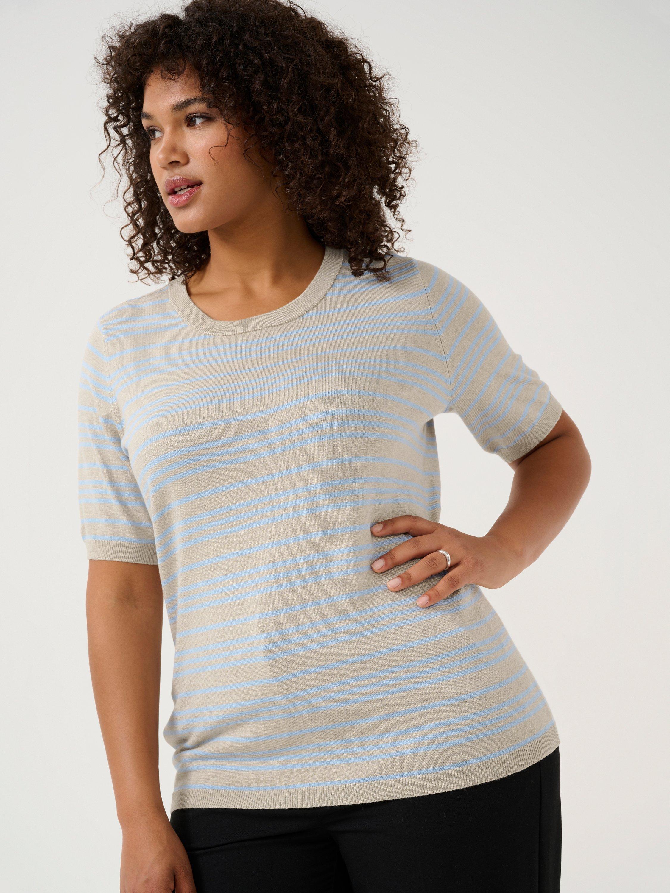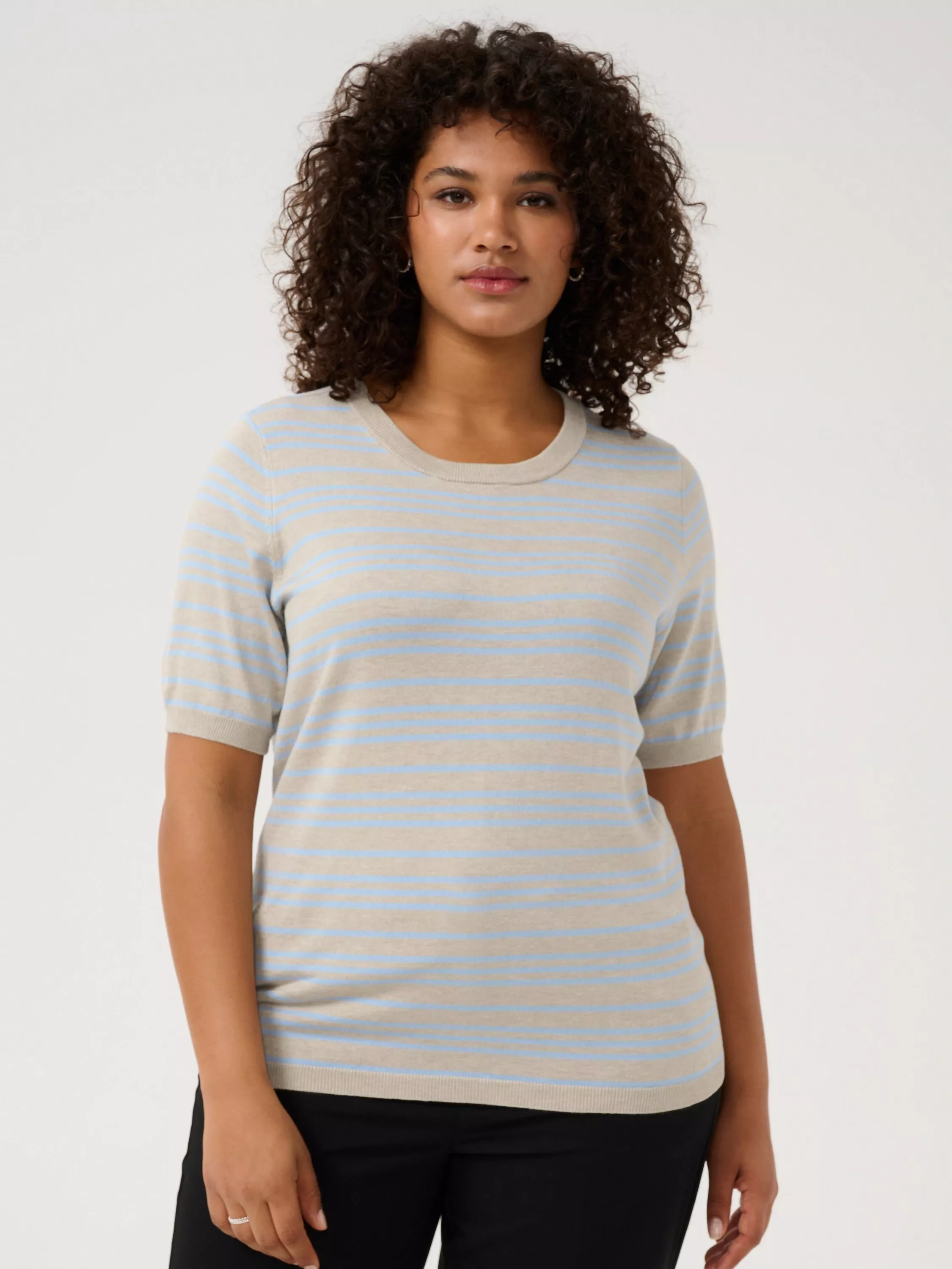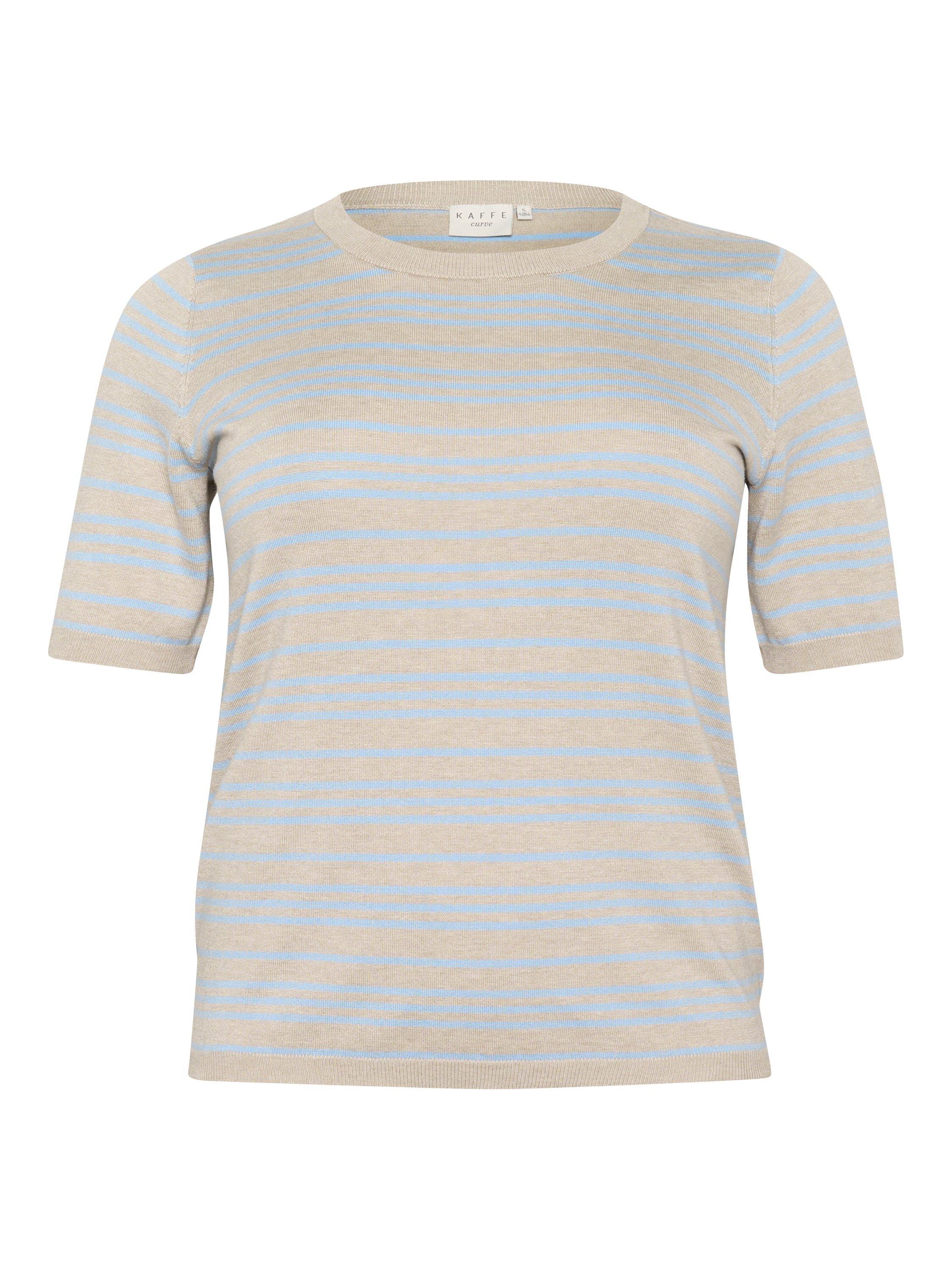 Shaped with a crew neckline and short sleeves, this lightweight striped jumper by KAFFE Curve is a go-to as the temperature cools.