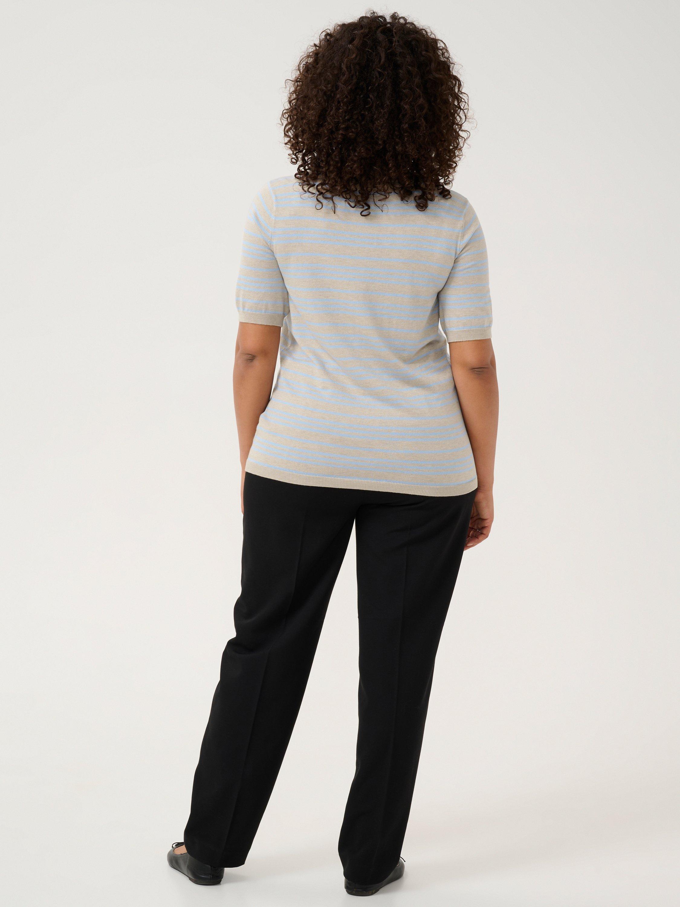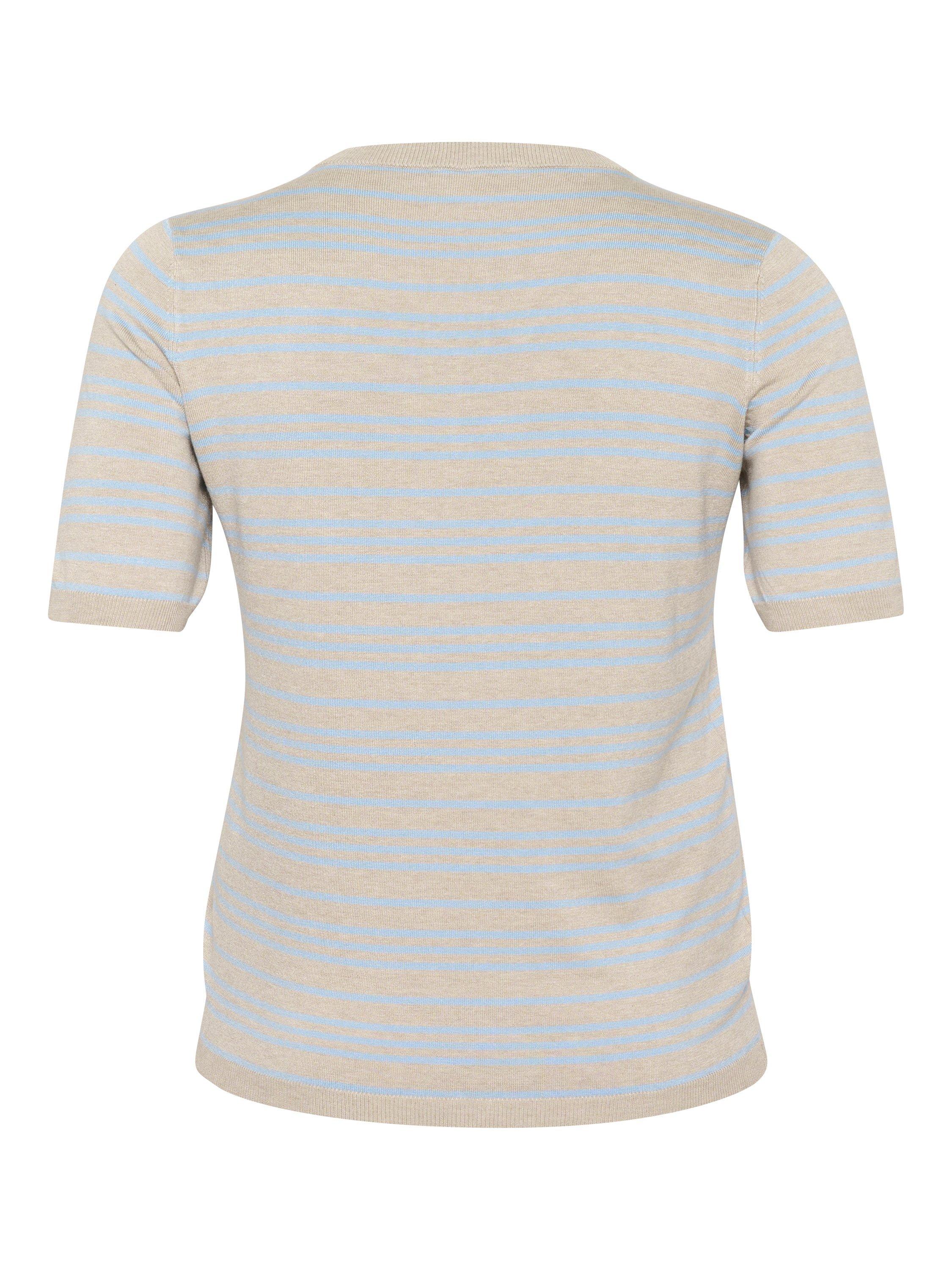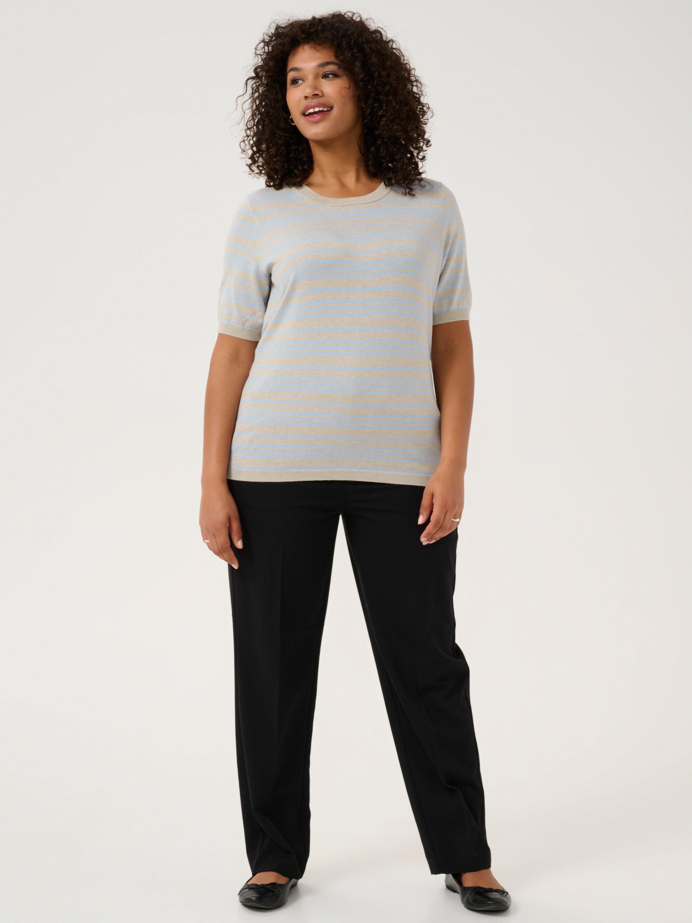 Shaped with a crew neckline and short sleeves, this lightweight striped jumper by KAFFE Curve is a go-to as the temperature cools.