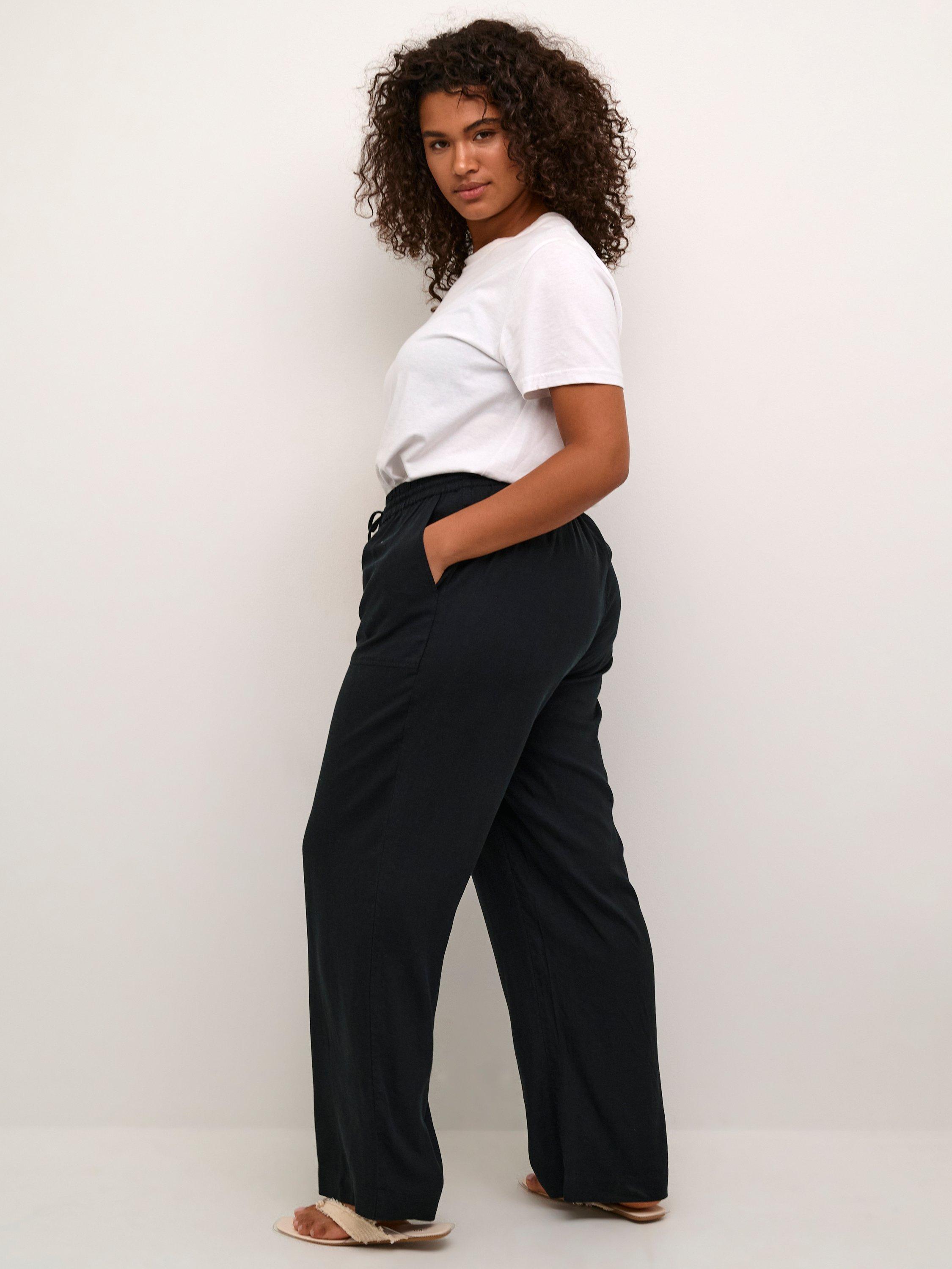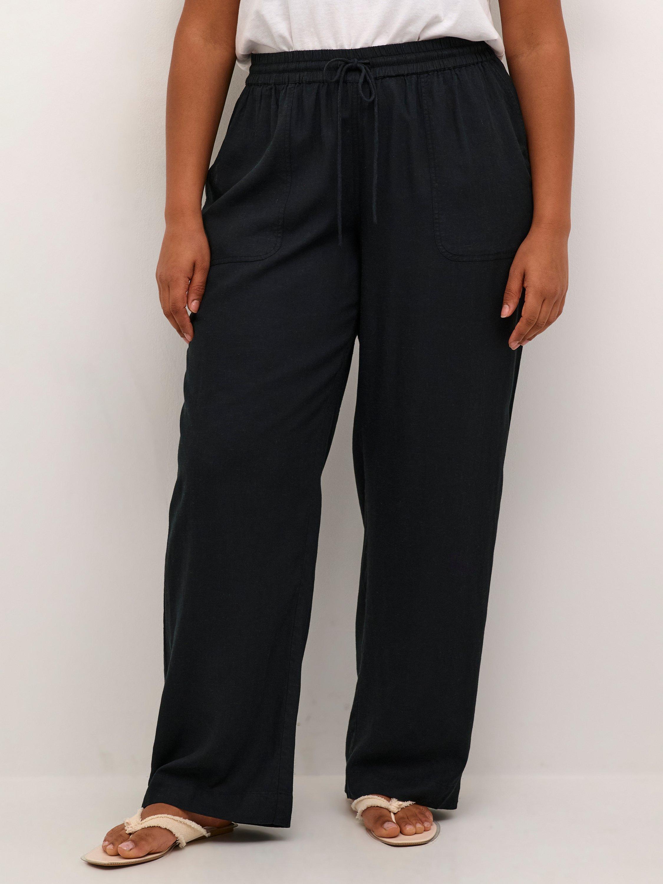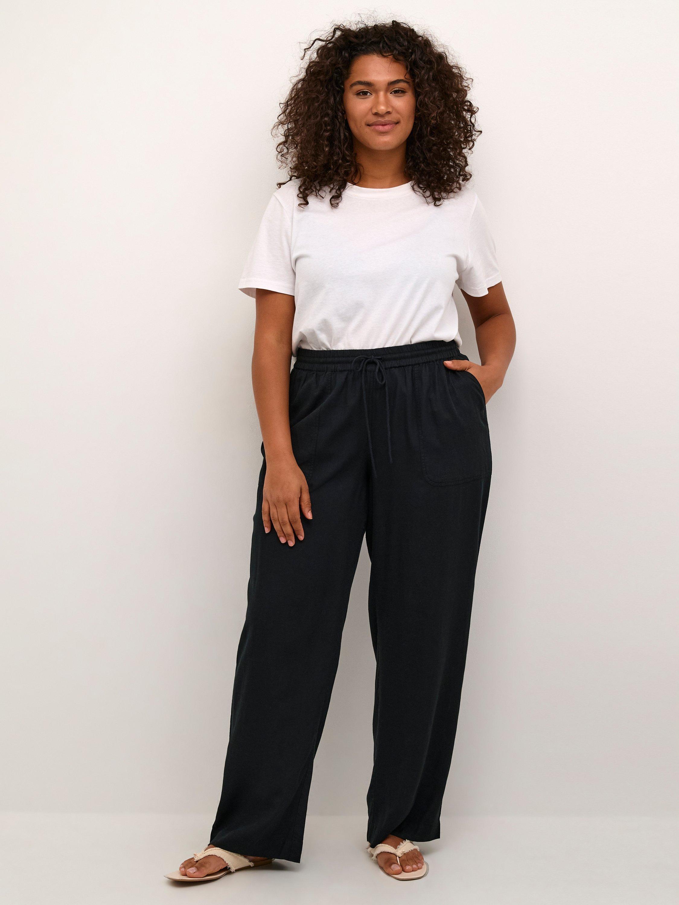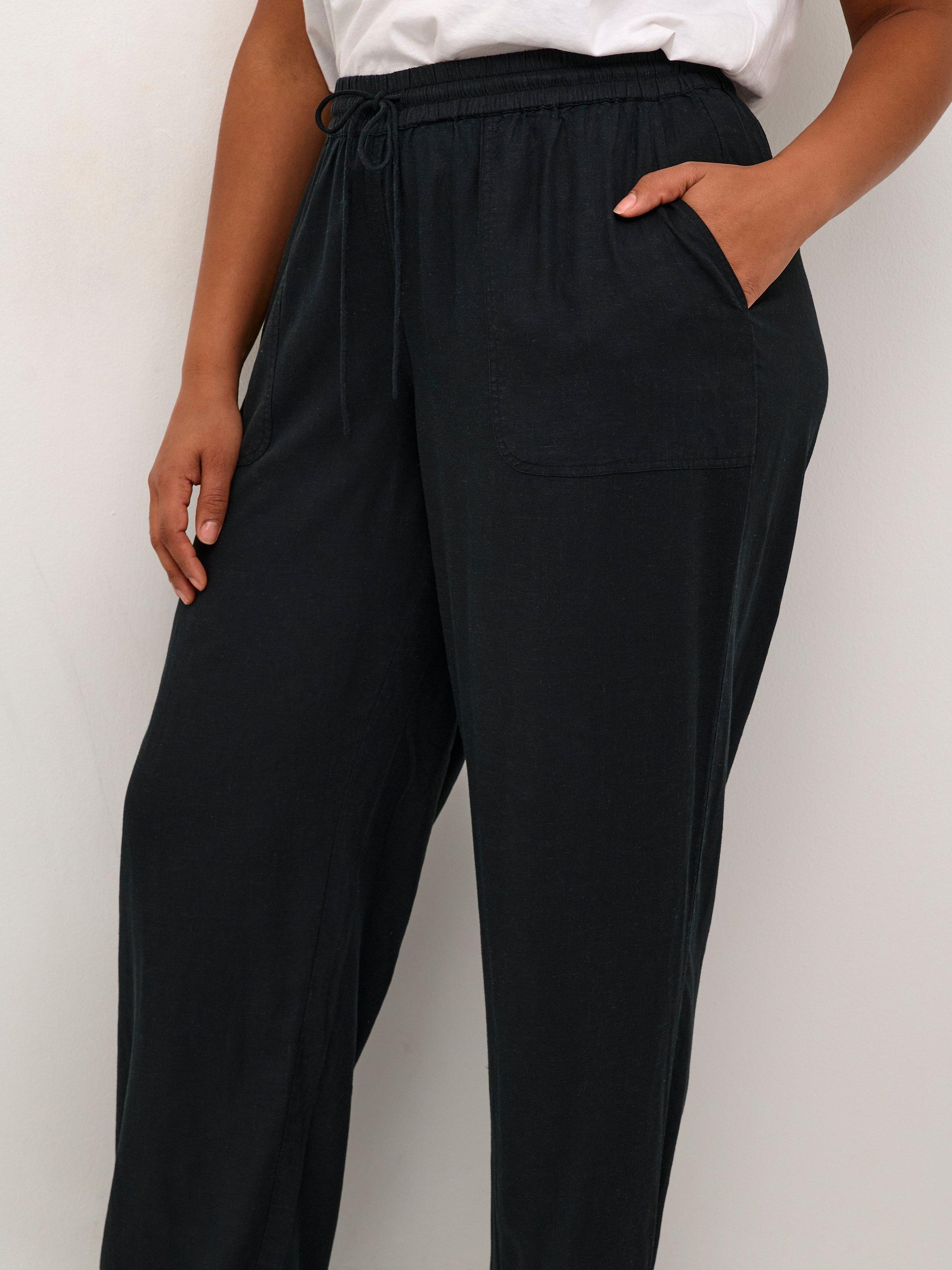 KAFFE CurveMille Drawstring Casual Trousers, Black Deep