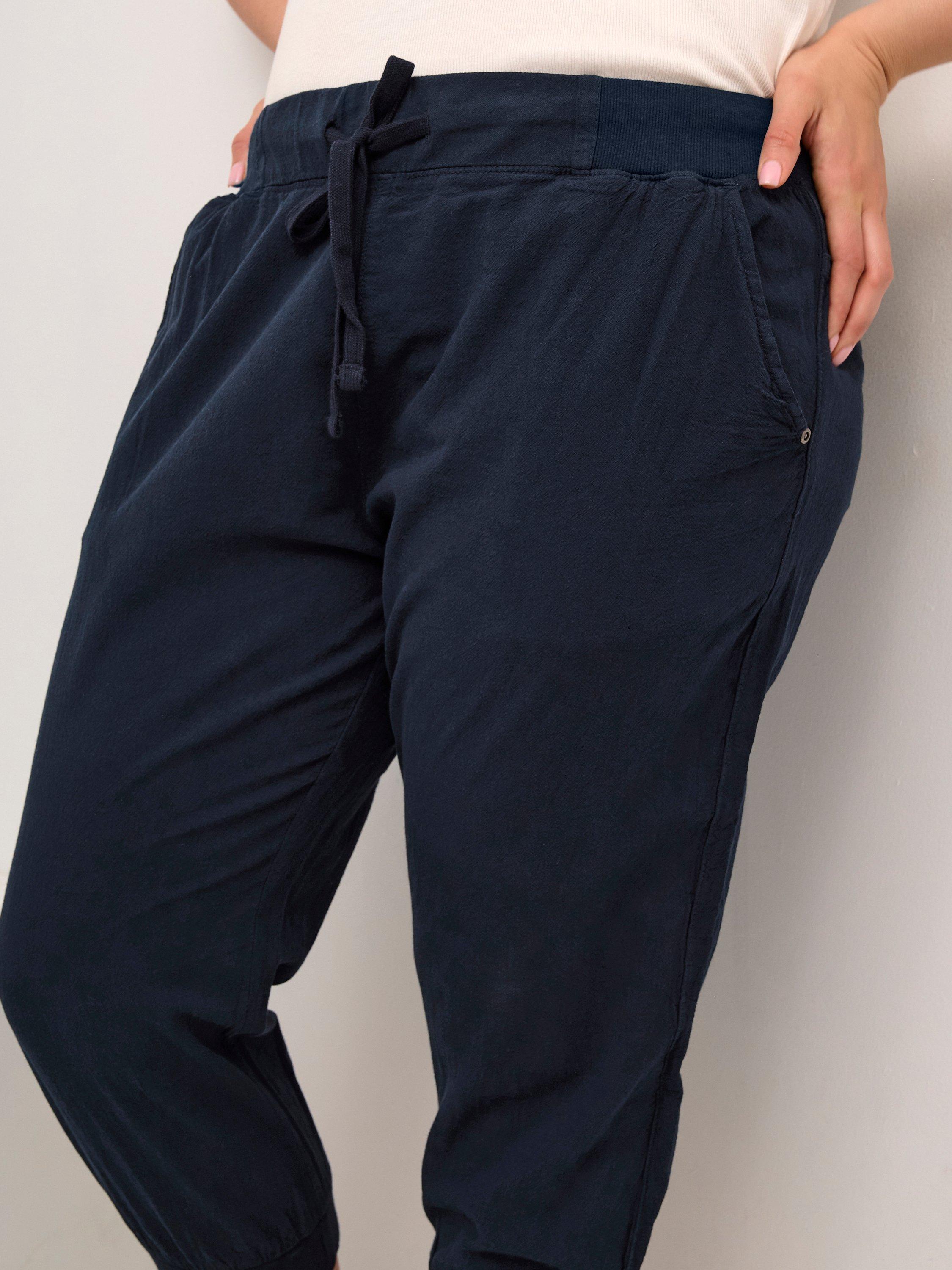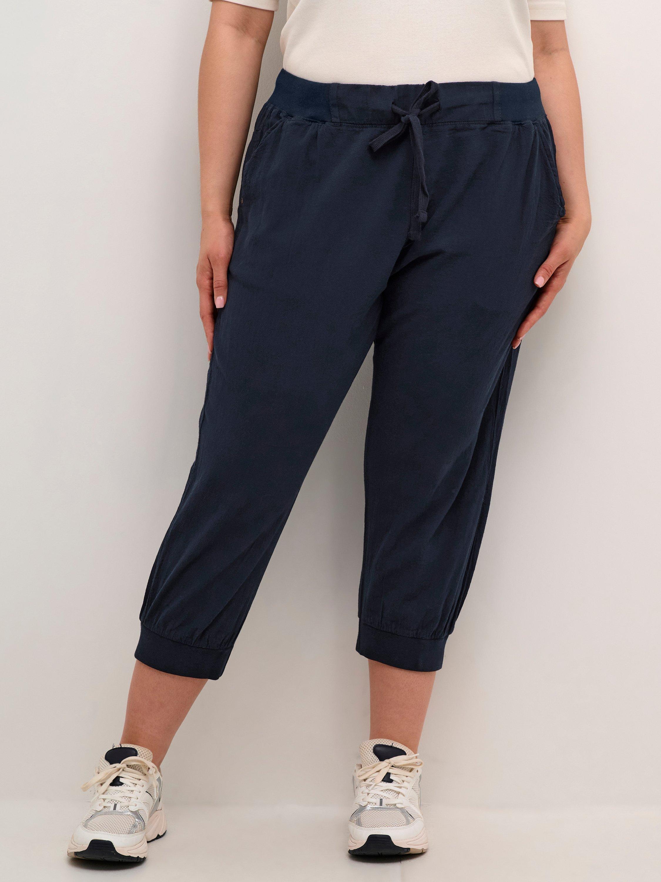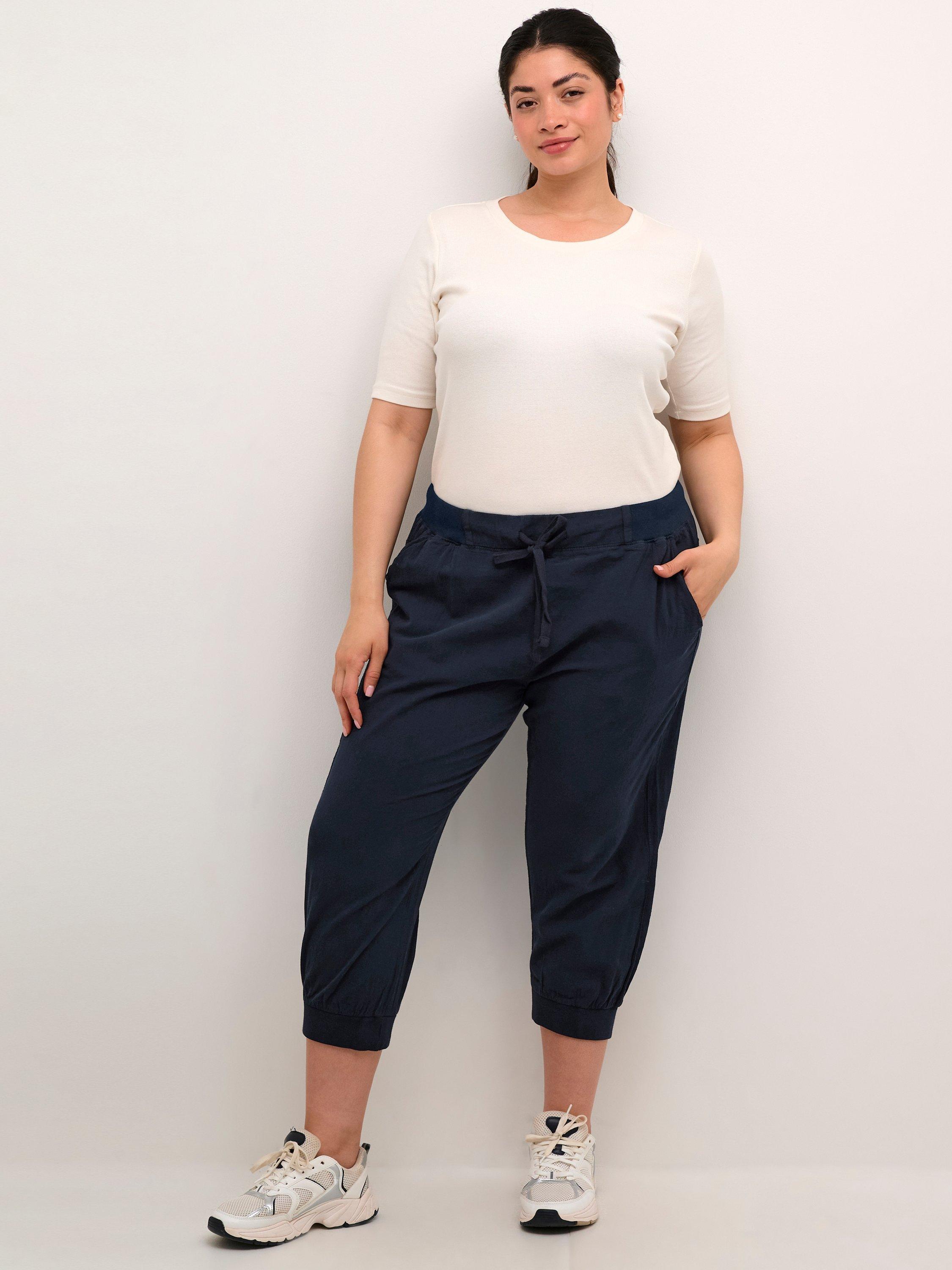 Topped with a drawstring waist, this pair of capri trousers from KAFFE Curve sit naturally on the hips and taper down for a sleek profile. Putting quality first in pure cotton, they have cropped hems.