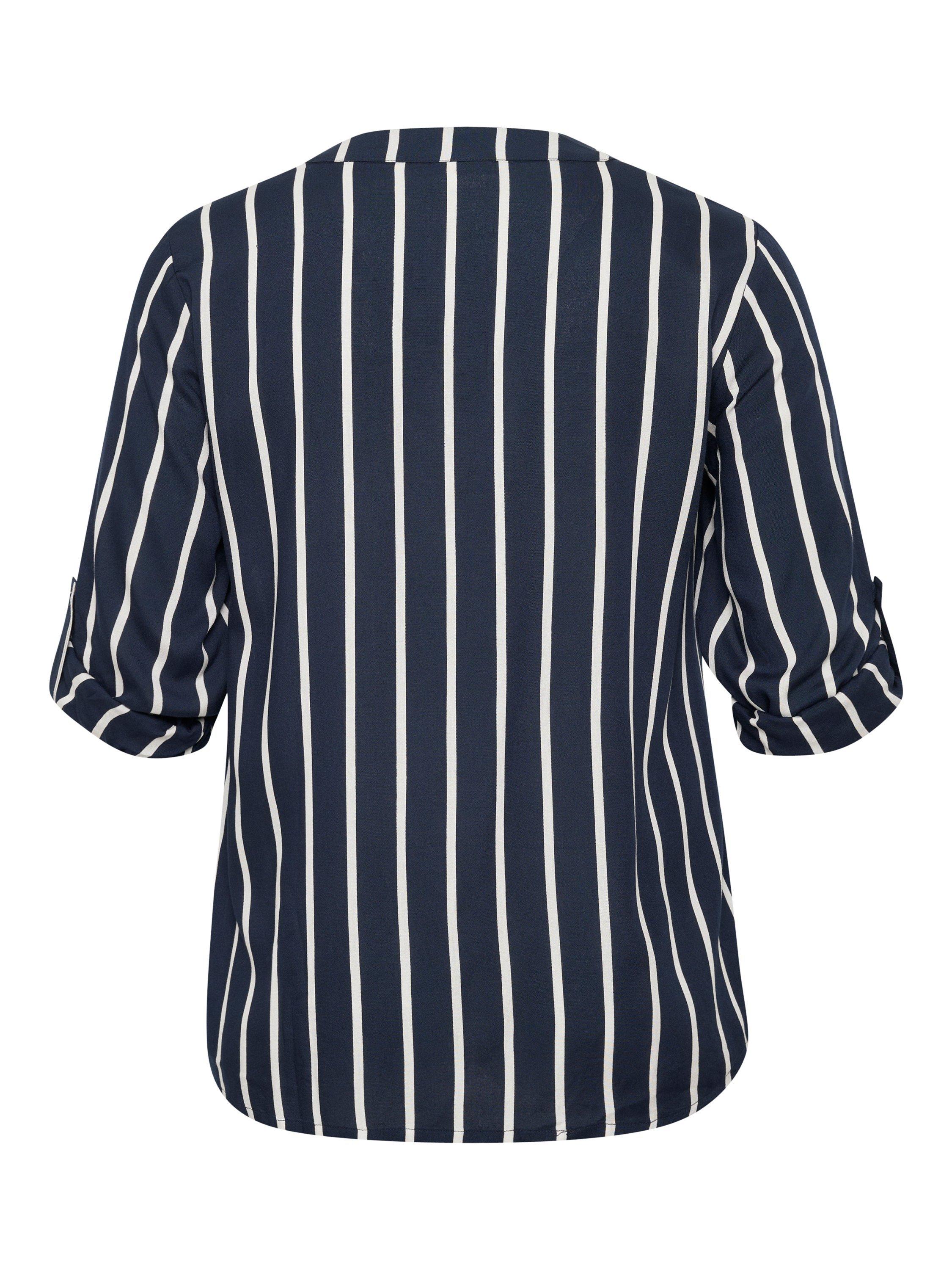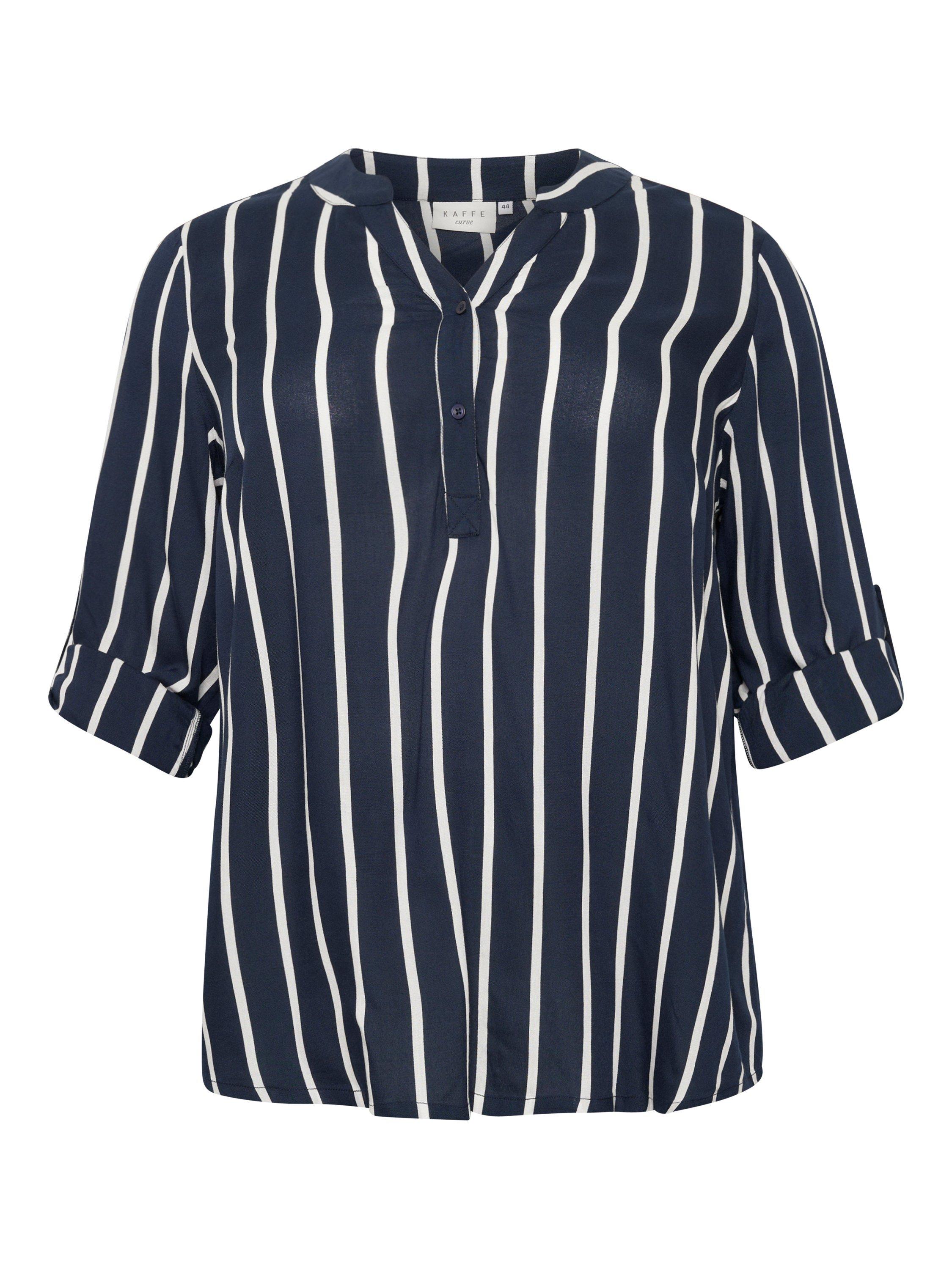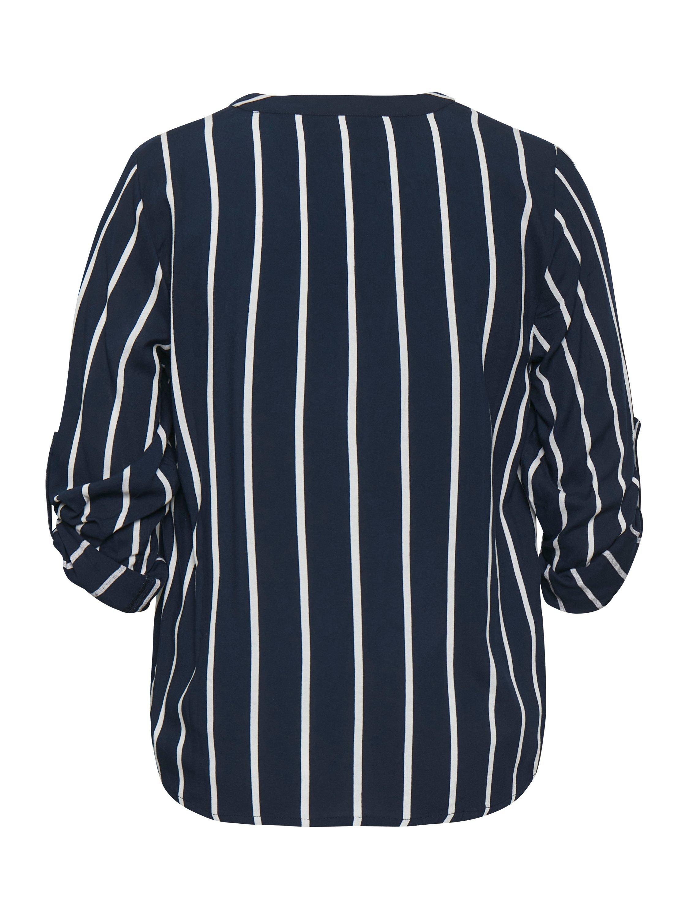 An effortless choice, this blouse from KAFFE Curve is cut with a v-neck, three-quarter length sleeves and boasts classic stripes.