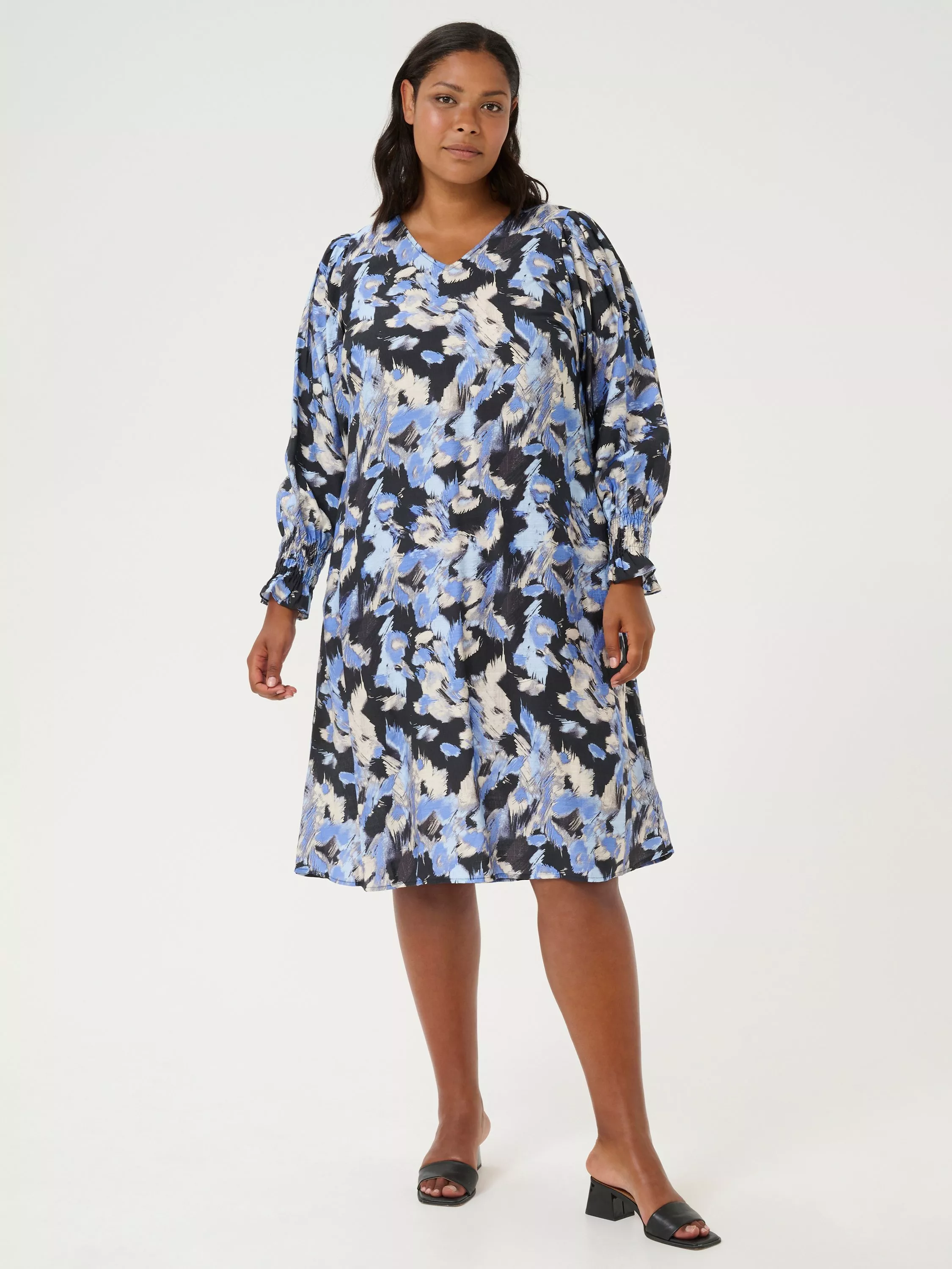 Entirely flattering with its A-line shape, this knee length dress from KAFFE Curve is blended with viscose for a weightless feel. With a universally flattering v-neckline and long sleeves, it receives a vibrant update with the help of a graphic strokes print.