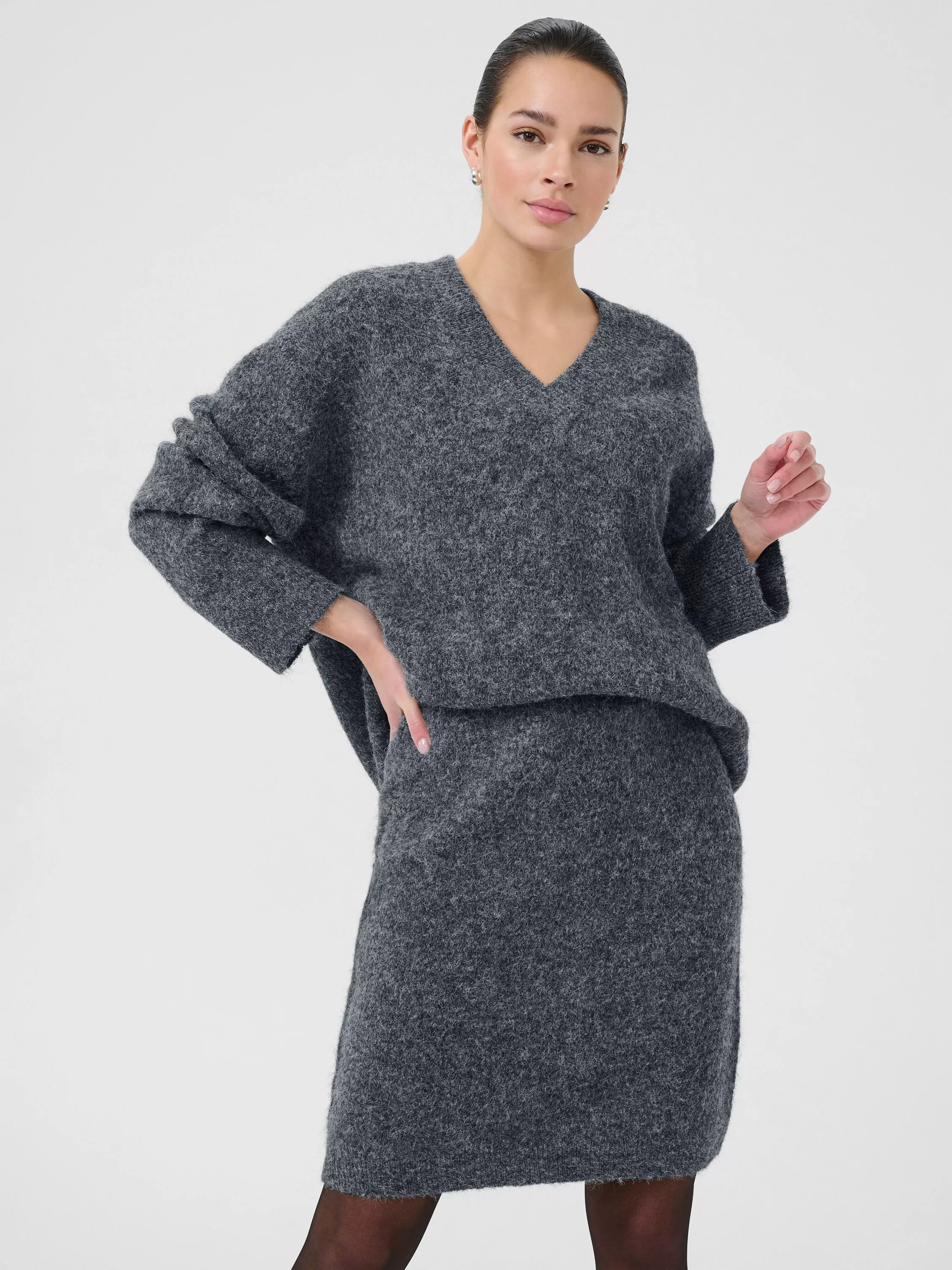 Nice and simple with a V-neckline and long sleeves, this mid-weight jumper from KAFFE Curve is prepped to keep the cold at bay.