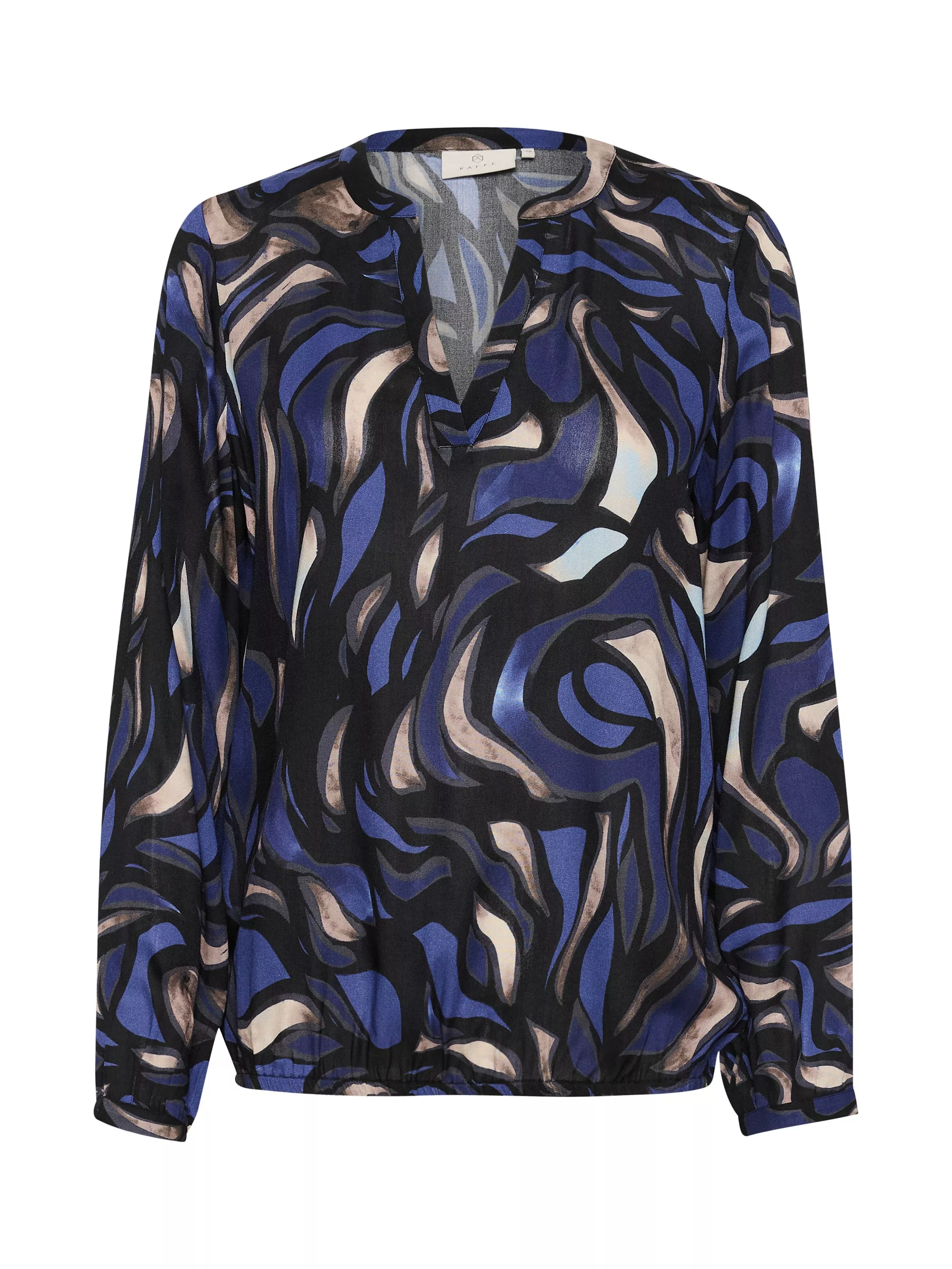 The ditte blouse is an easy-going and casual everyday blouse in a cool print. It has a flattering V-notch neckline and a relaxed fit. The blouse has an elasticated hemline, which creates a soft volume. The sleeves come down below the wrists, and they are gathered in a buttoned cuff.